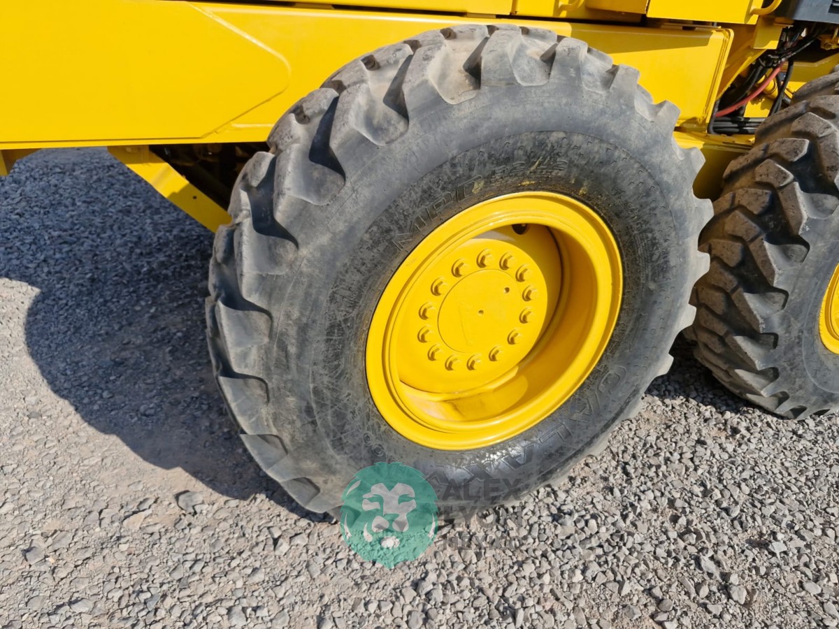 (VIDEO) CUCHILLA 14′, CABINA, MOTOR JOHN DEERE 6 CIL. DIESEL C/TURBO (226 HP), LLTS. 14.00-24. (13090 HRS)
