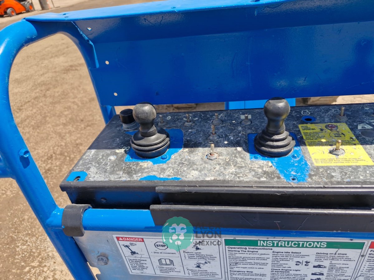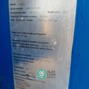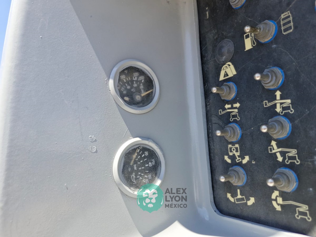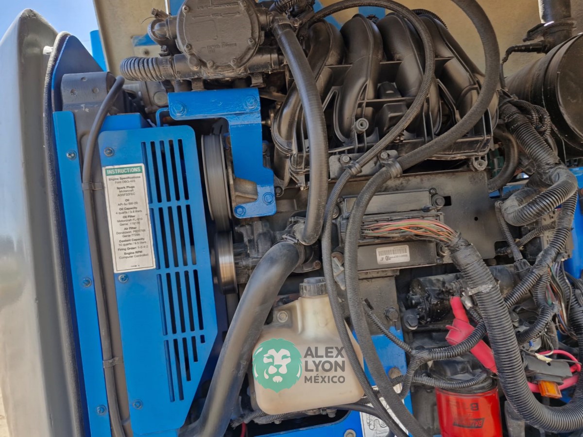 (V) ALTURA MAXIMA 45’/13.7 MTS. ALCANCE HORIZONTAL 25’/7.65 MTS. CAP. 500 LBS. MOTOR FORD 4 CIL. GASOLINA (59.9 HP), LLTS. 355/55D625. (3544 HRS)