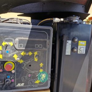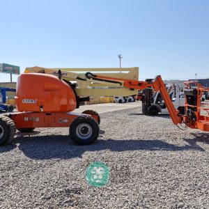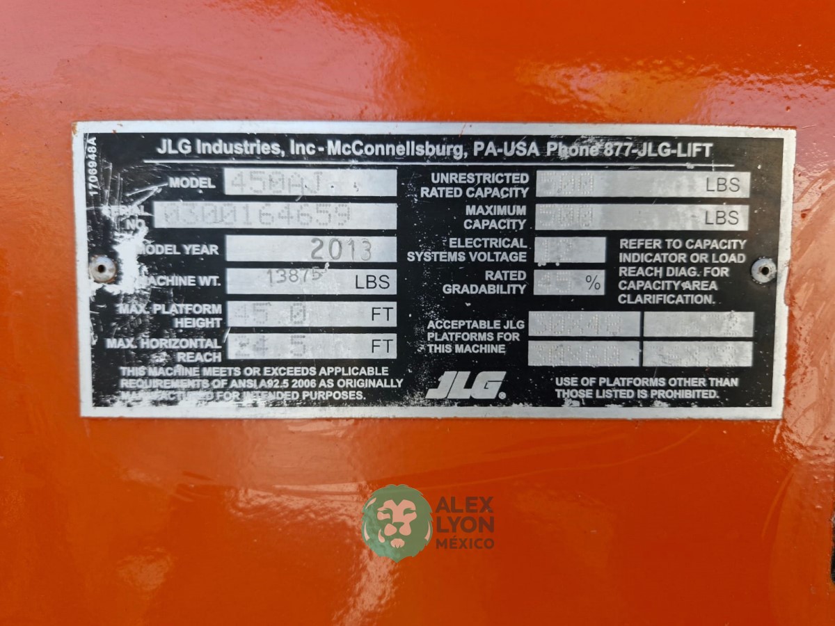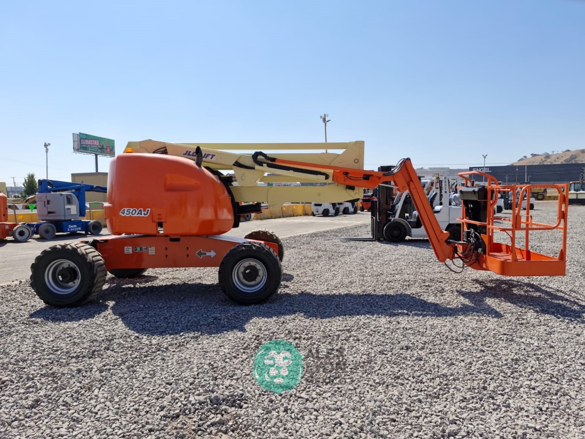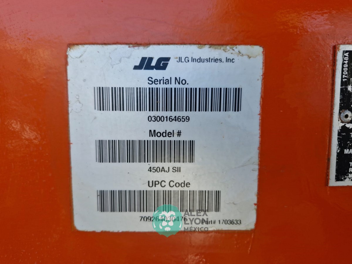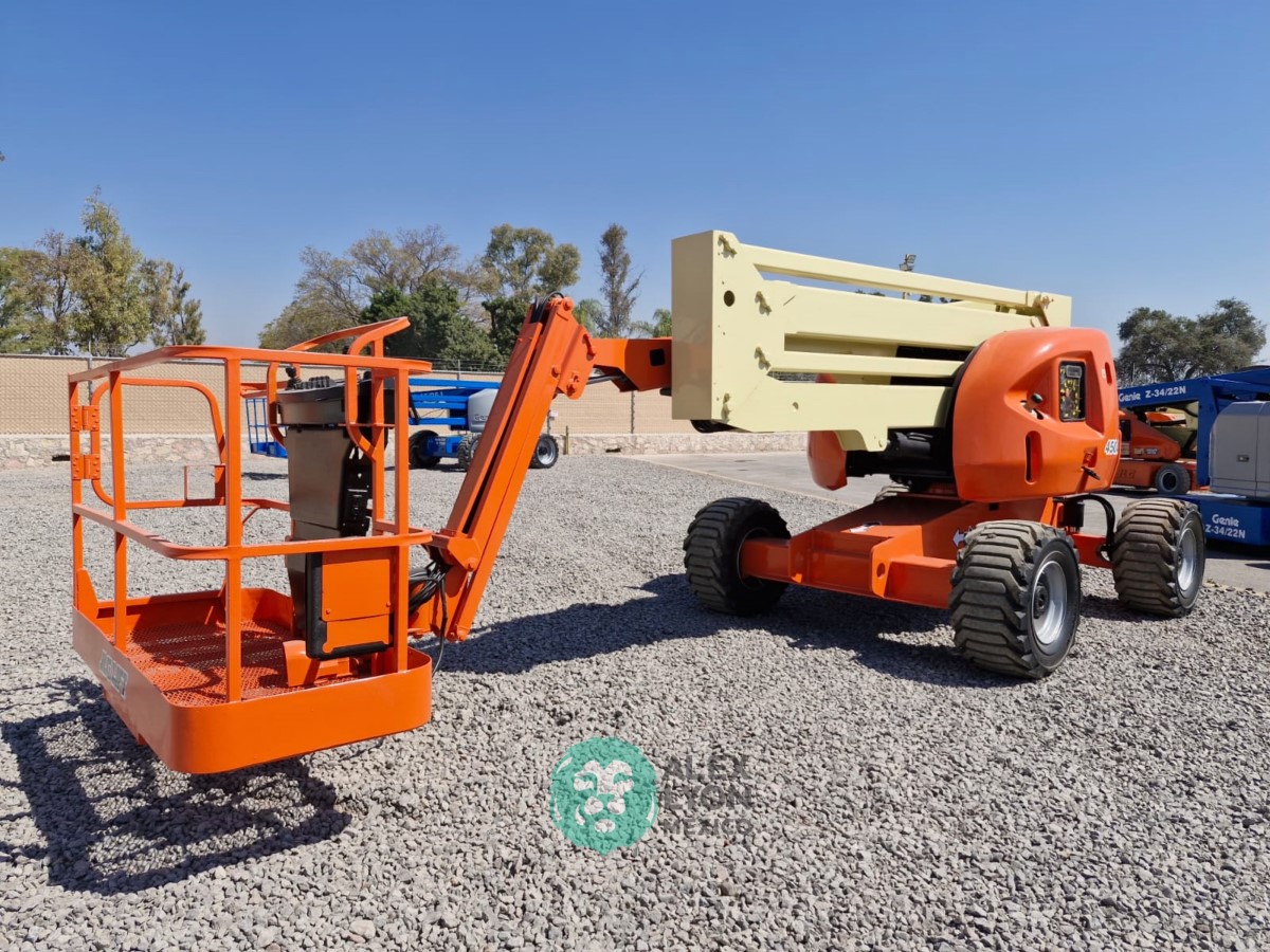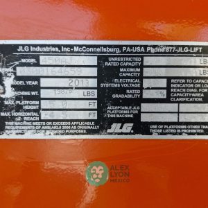 (V) 4X4 (DOBLE TRACCION), ALTURA MAXIMA 45’/13.7 MTS. ALCANCE HORIZONTAL 24.5’/7.4 MTS. CAP. 500 LBS. MOTOR’ 3 CIL. DIESEL (49 HP), LLTS. 33X15.50. (2252 HRS)