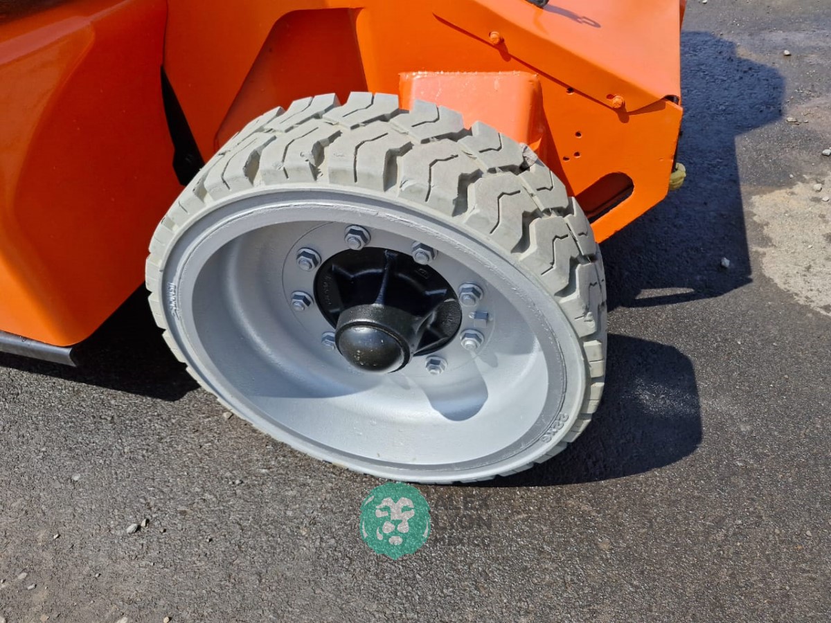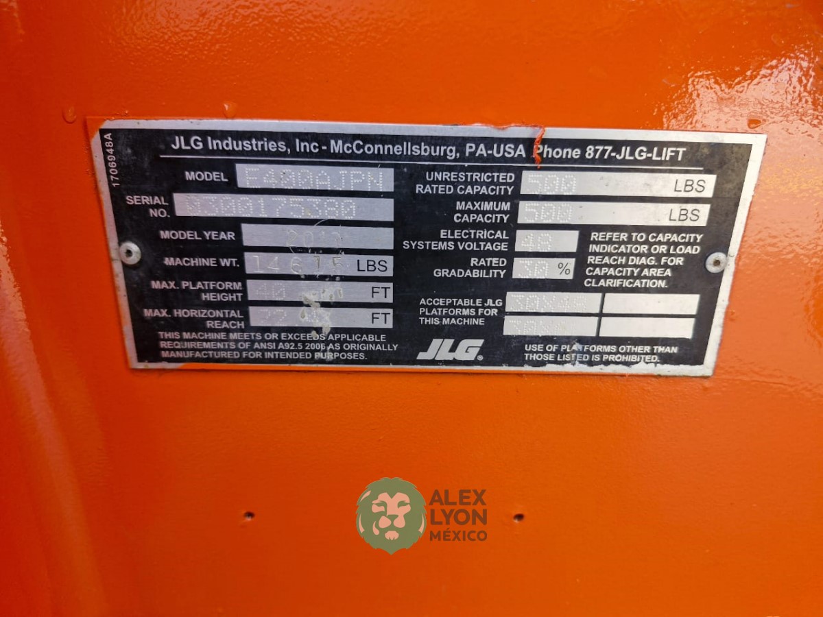 (VIDEO) NARROW=ANGOSTO, ALTURA MAXIMA 40’/12.19 MTS. ALCANCE HORIZONTAL 22.4’/6.82 MTS. CAP. 500 LBS. MOTOR ELECTRICO, LLTS. 25X7-12 Y 22X6. (1207 HRS)