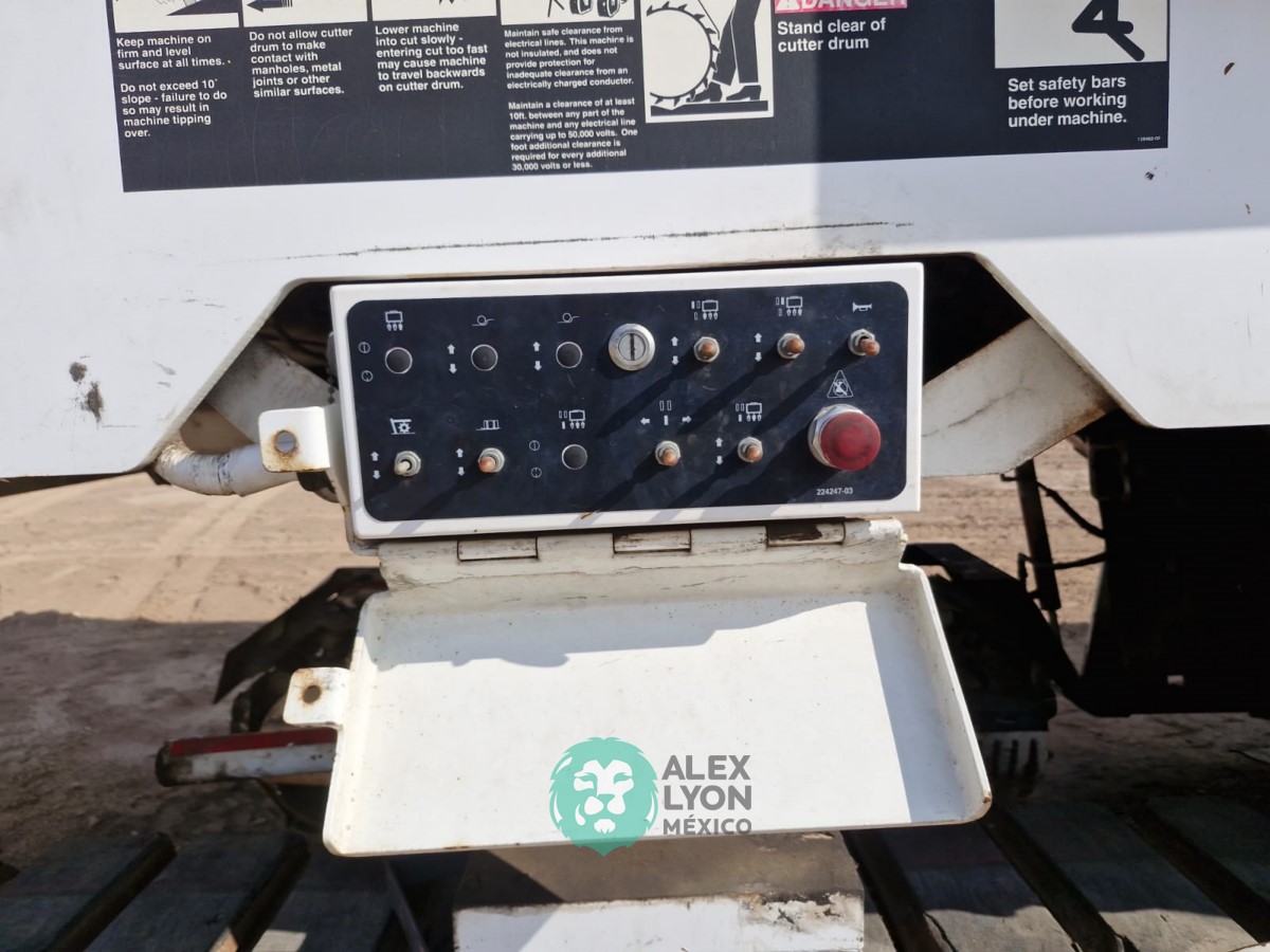 (VIDEO) TAMBOR DE CORTE DE 6′ C/PUNTAS DE TUNGSTENO, PROFUNDIDAD DE CORTE 14″, BANDA DE DECARGA DE 36», MOTOR CATERPILLAR 6 CIL. DIESEL C/TURBO (755 HP), SUSPENSION DE 4 PUNTOS, SOBRE ORUGAS. (1389 HRS)