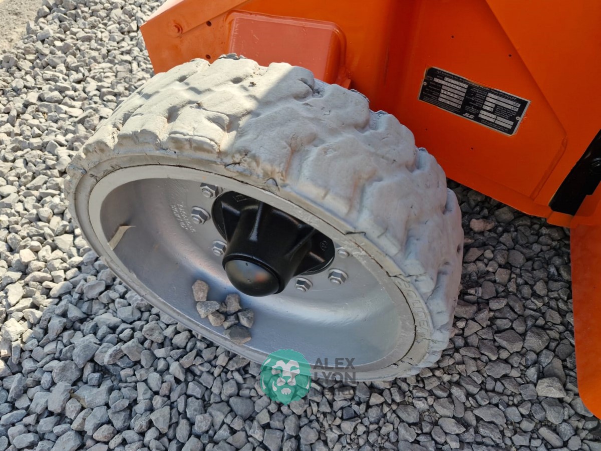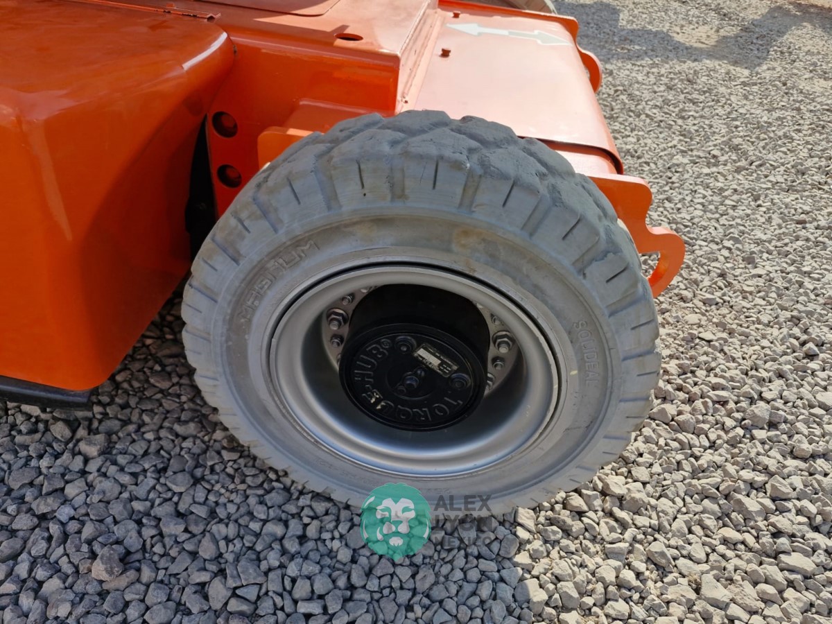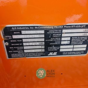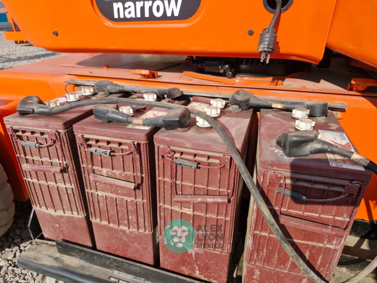 (VIDEO) NARROW=ANGOSTO, ALTURA MAXIMA 40’/12.19 MTS. ALCANCE HORIZONTAL 22.4’/6.82 MTS. CAP. 500 LBS. MOTOR ELECTRICO, LLTS. SOLIDAS 25.7-12 Y 22X6. (1246 HRS)
