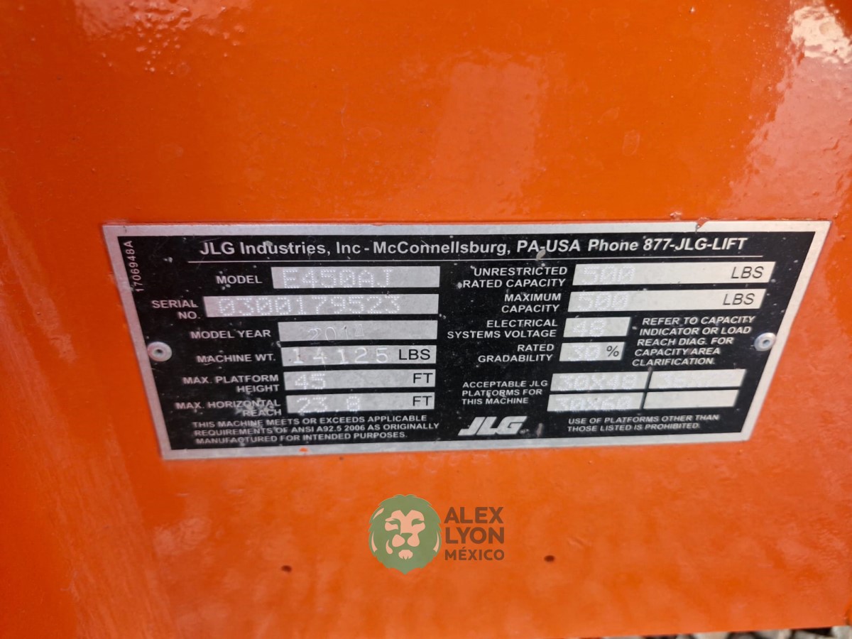(VIDEO) ALTURA MAXIMA 45’/13.7 MTS. ALCANCE HORIZONTAL 23.8’/7.2 MTS. CAP. 500 LBS. MOTOR ELECTRICO, LLTS. 240/55D17.5. (1347 HRS)