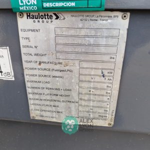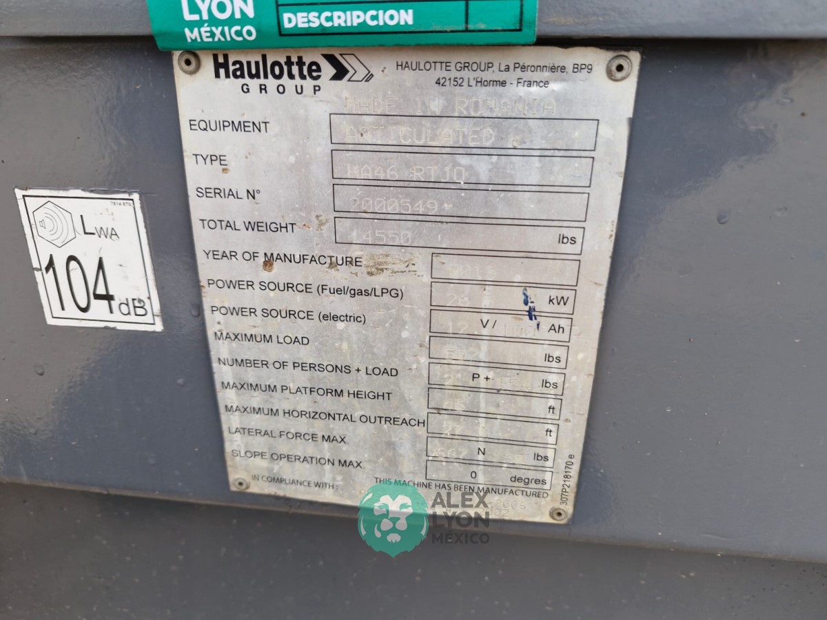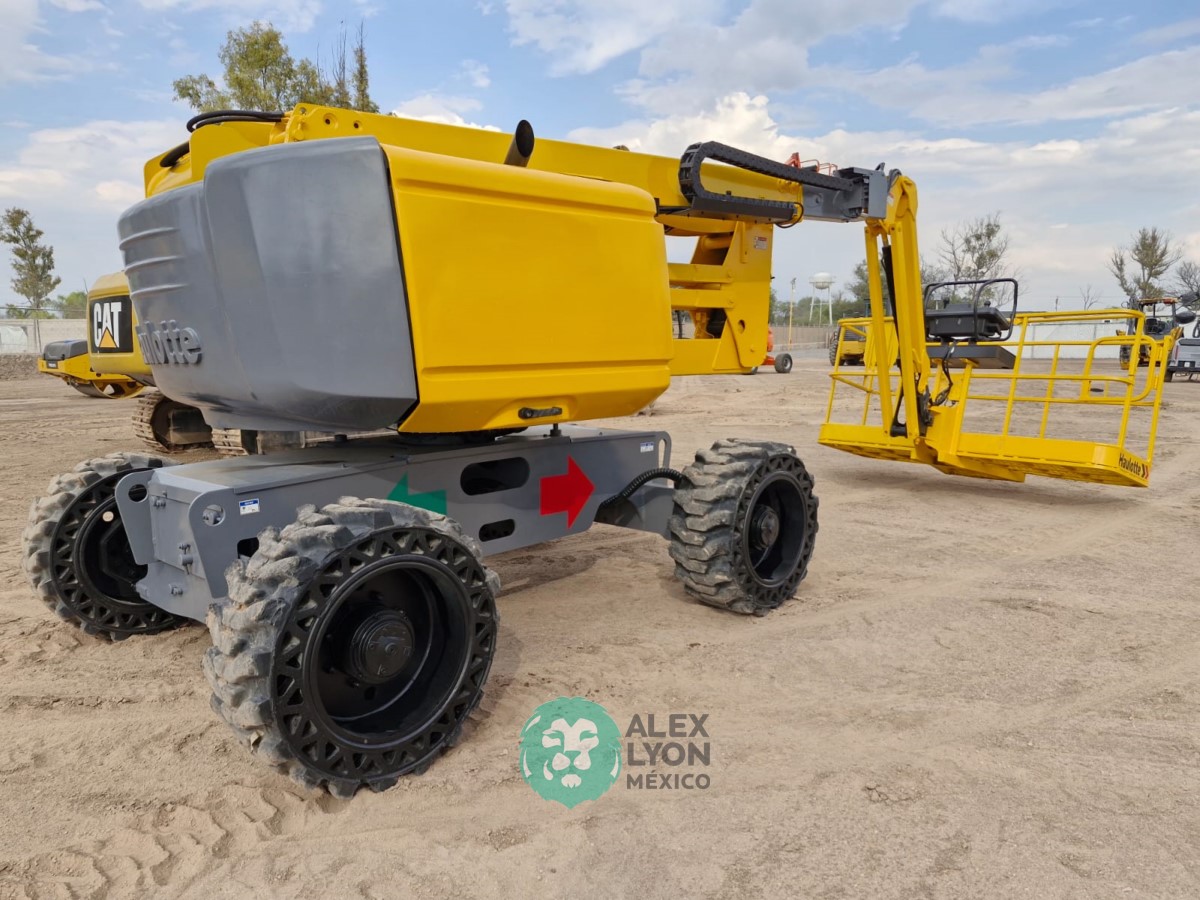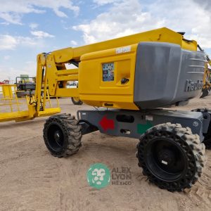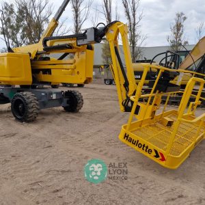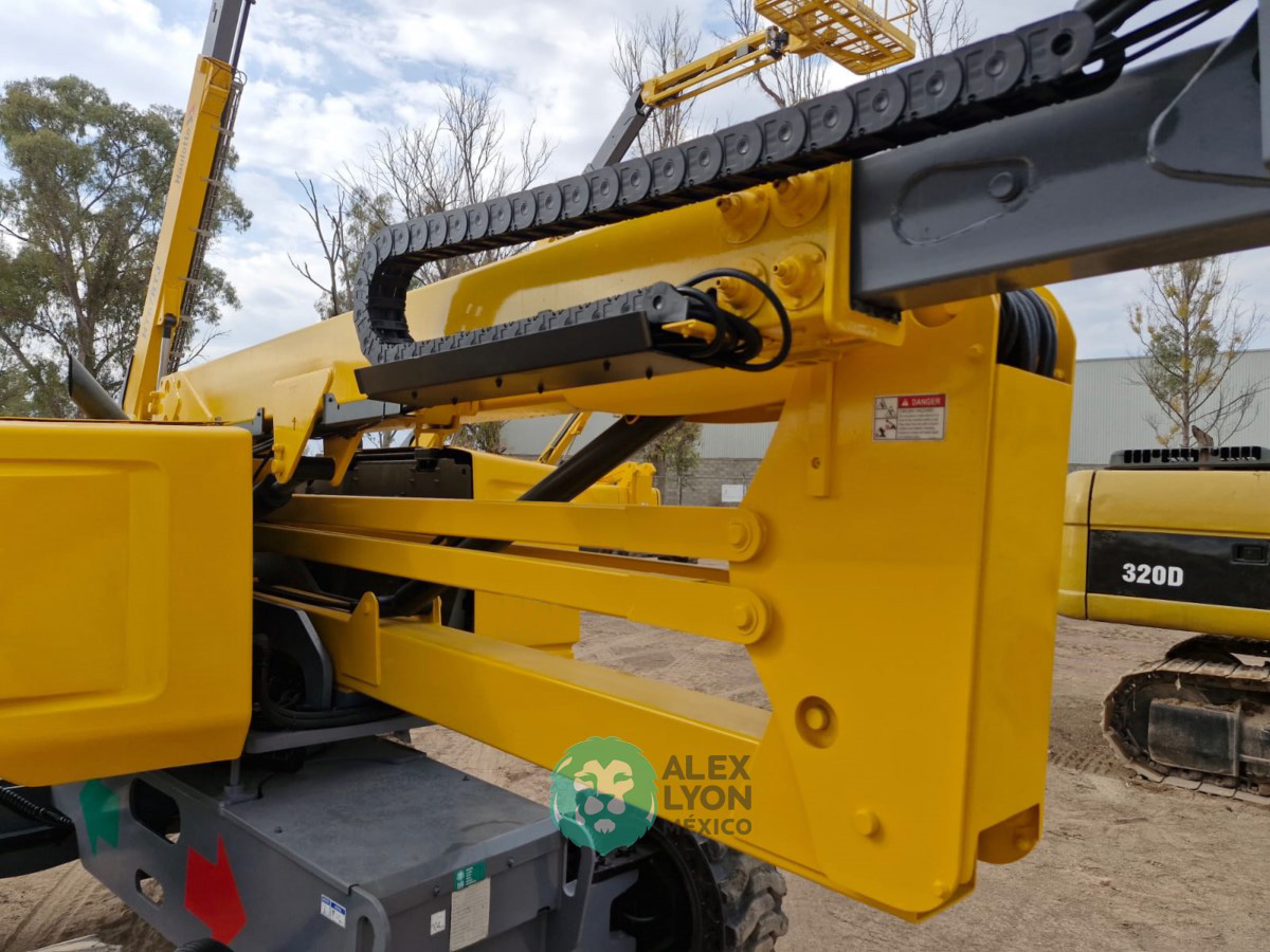4X4 (DOBLE TRACCION), ALTURA MAXIMA 46’/14 MTS. ALCANCE HORIZONTAL 27’/8.2 MTS. CAP. 507 LBS. MOTOR KUBOTA 4 CIL. DIESEL (35.5 HP), LLTS. SEMINEUMATICAS 850X340. (4766 HRS)