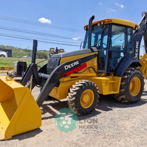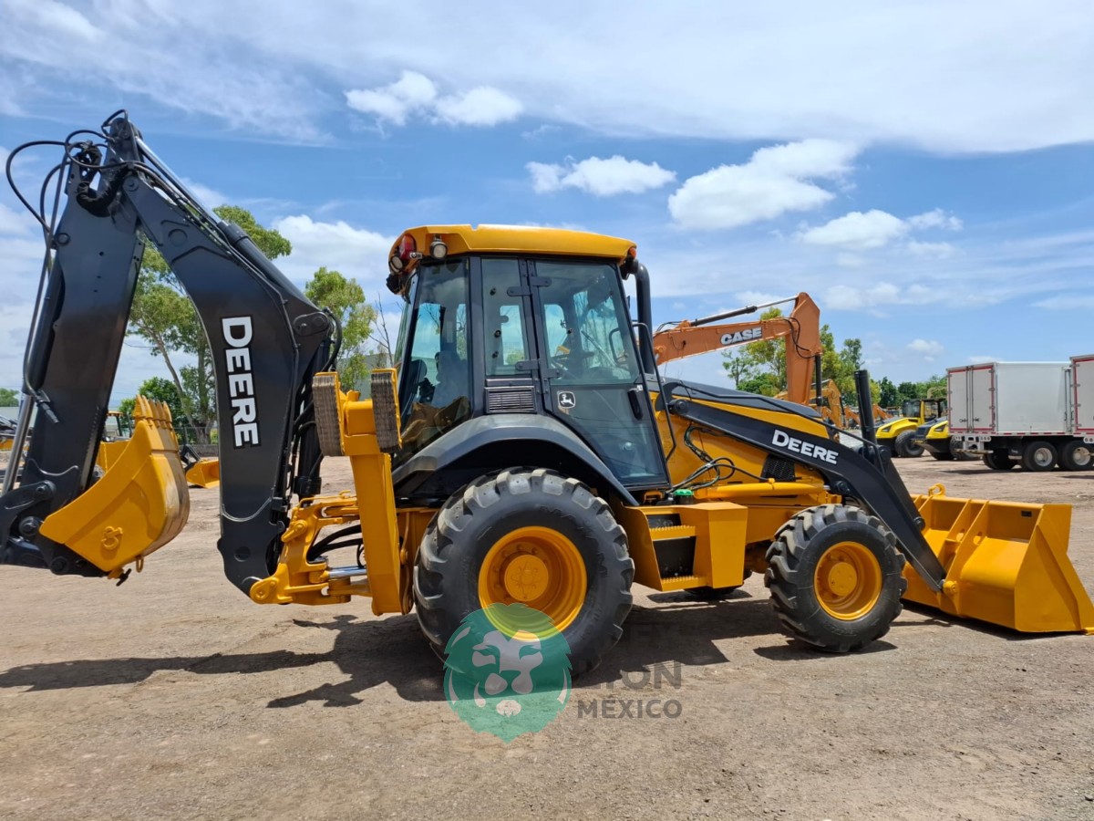 4X4 (DOBLE TRACCION), CUCHARON 4 EN 1 (TIPO ALMEJA), CABINA C/CLIMA, CONTROLES TIPO PILOTO, ENCENDIDO ELECTRONICO, CUCHARON TRASERO 18″, MOTOR JOHN DEERE 4 CIL. DIESEL C/TURBO (107 HP), LLTS. 21L-24 Y 12.5/80-18.