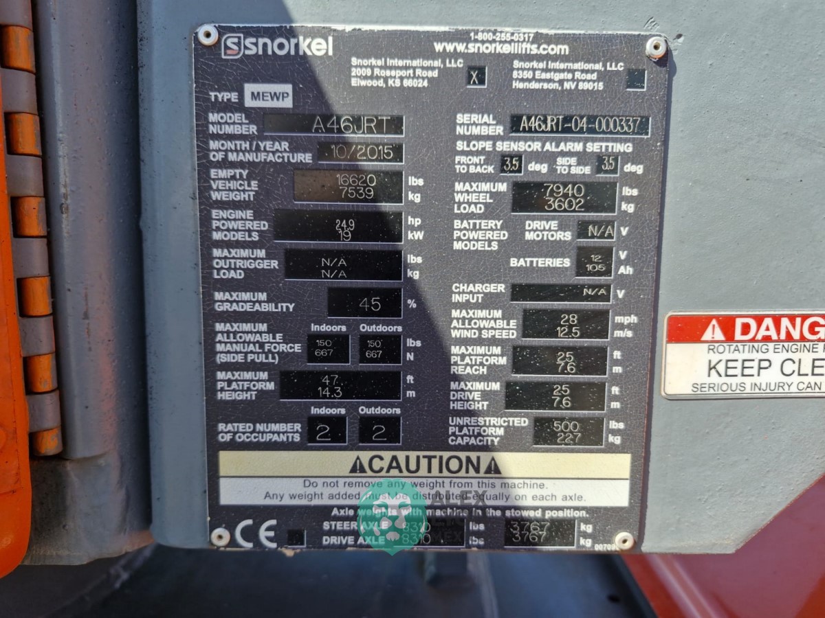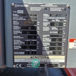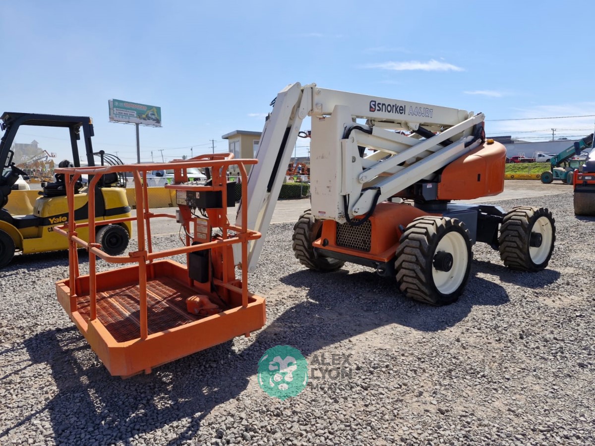 (VIDEO) 4X4 (DOBLE TRACCION), ALTURA MAXIMA 47’/14.3 MTS. ALCANCE HORIZONTAL 25’/7.6 MTS. CAP. 500 LBS. MOTOR KUBOTA 4 CIL. DIESEL (25 HP), LLTS. SOLIDAS 355/55D625.