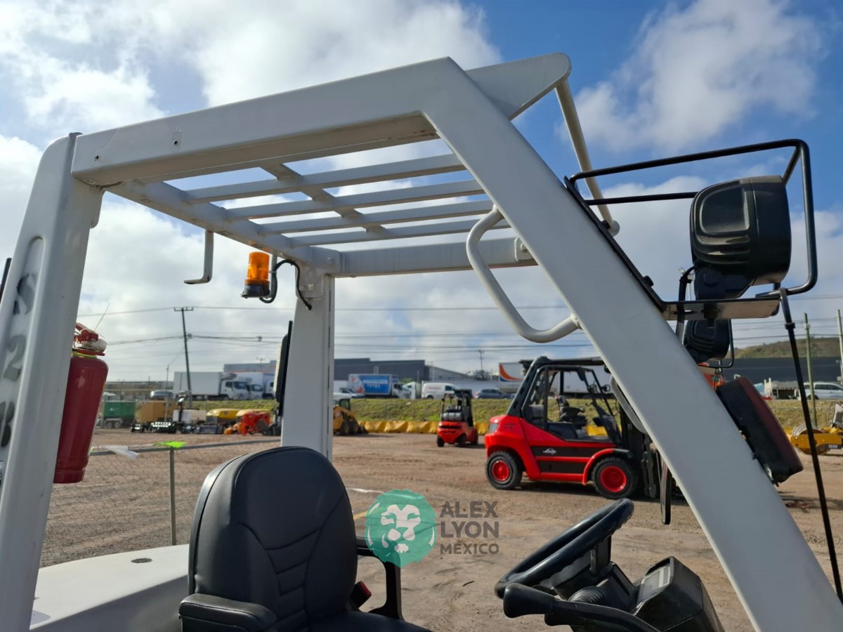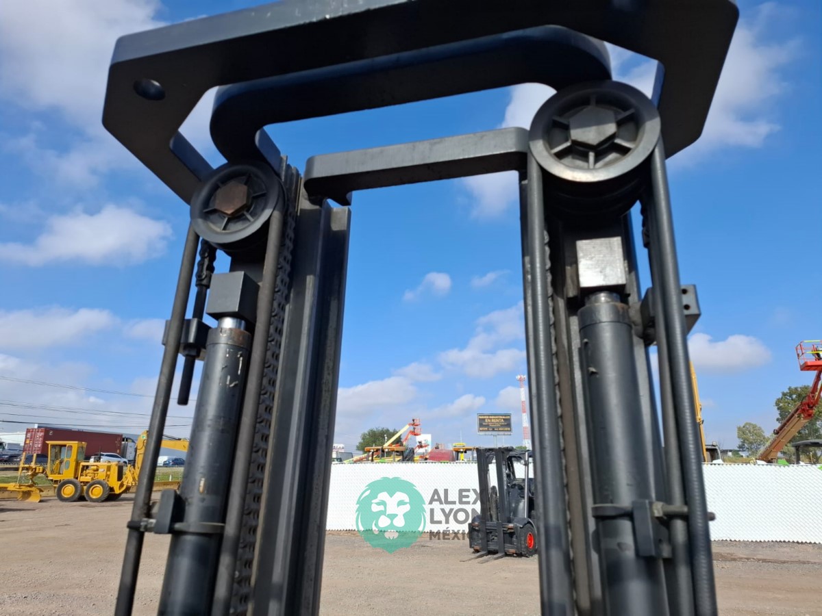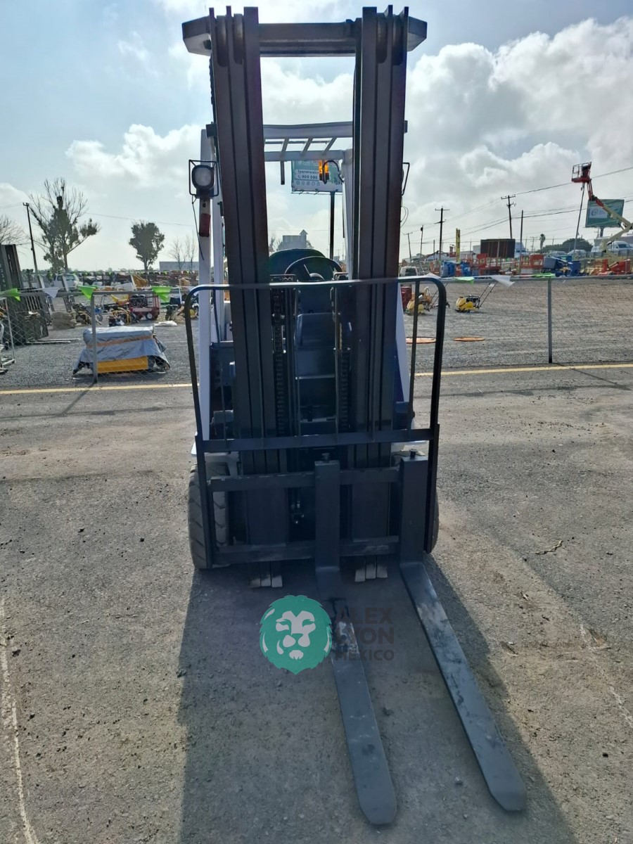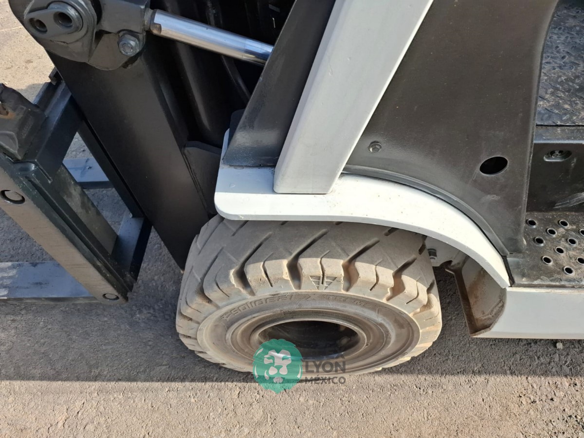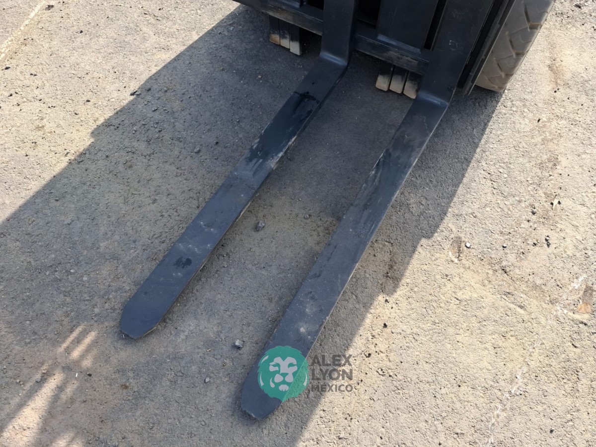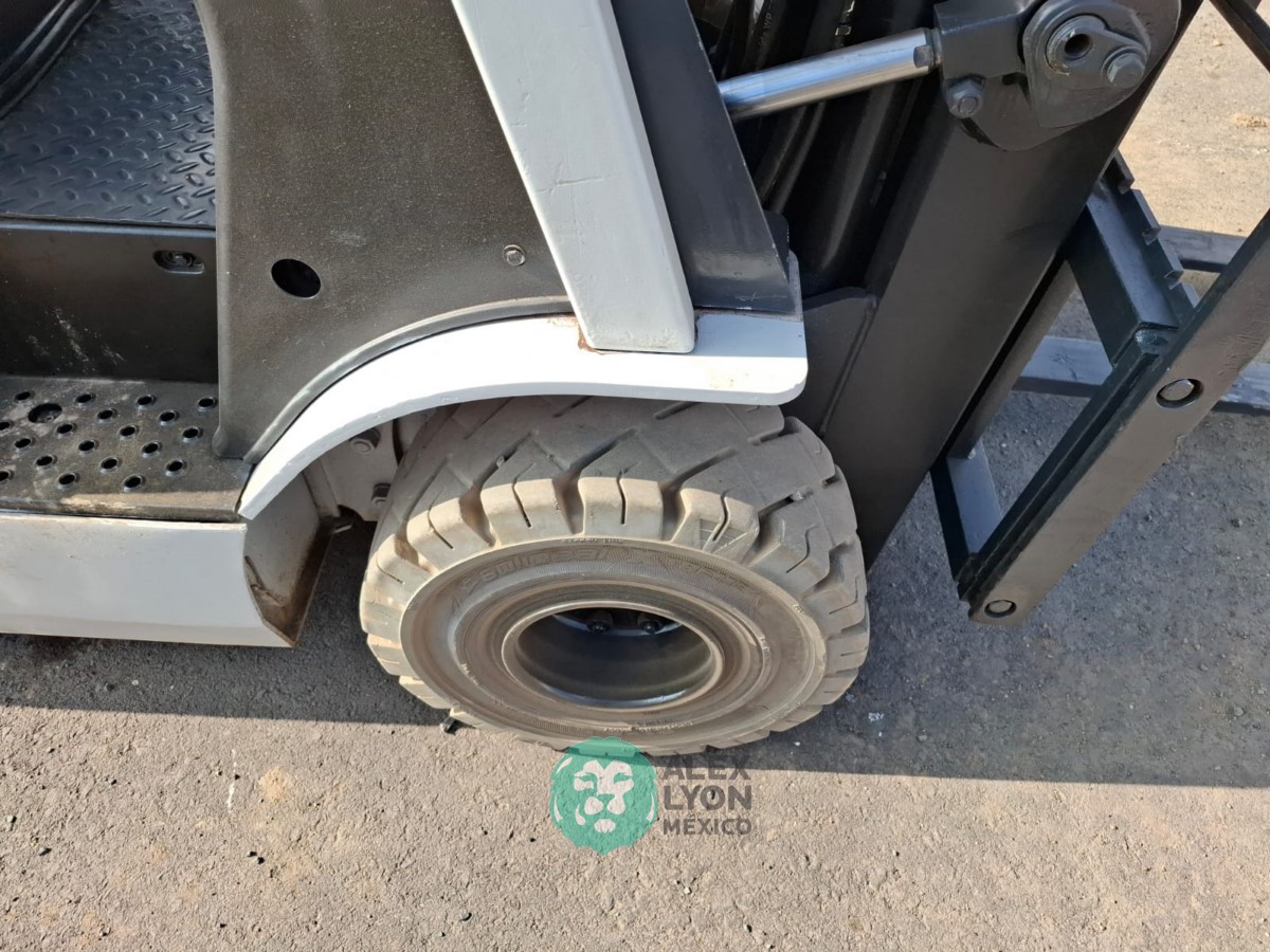 (VIDEO) CAP. 5000 LBS. TORRE 3 SECCIONES, MOTOR NISSAN 4 CIL. GASOLINA, LLTS. SOLIDAS 21X8X9 Y 18X7X8. (23675 HRS)