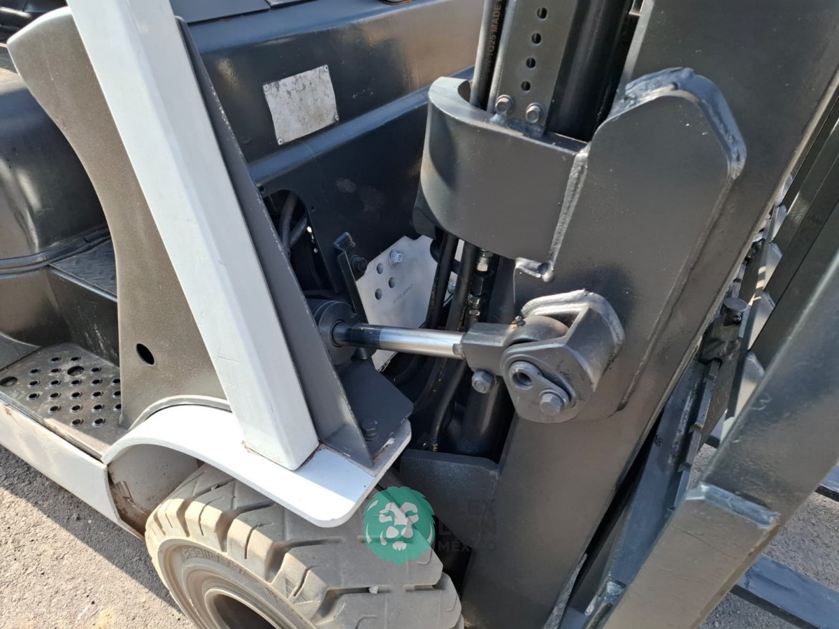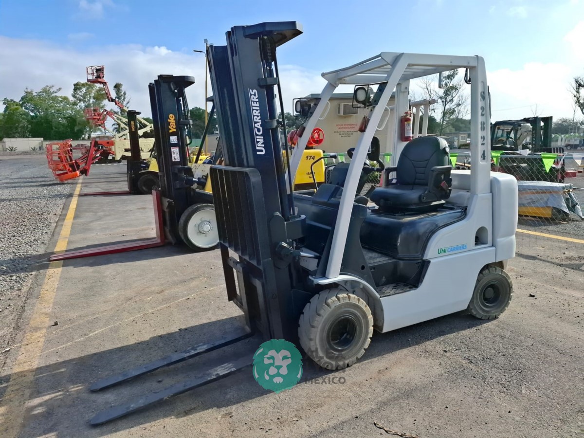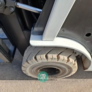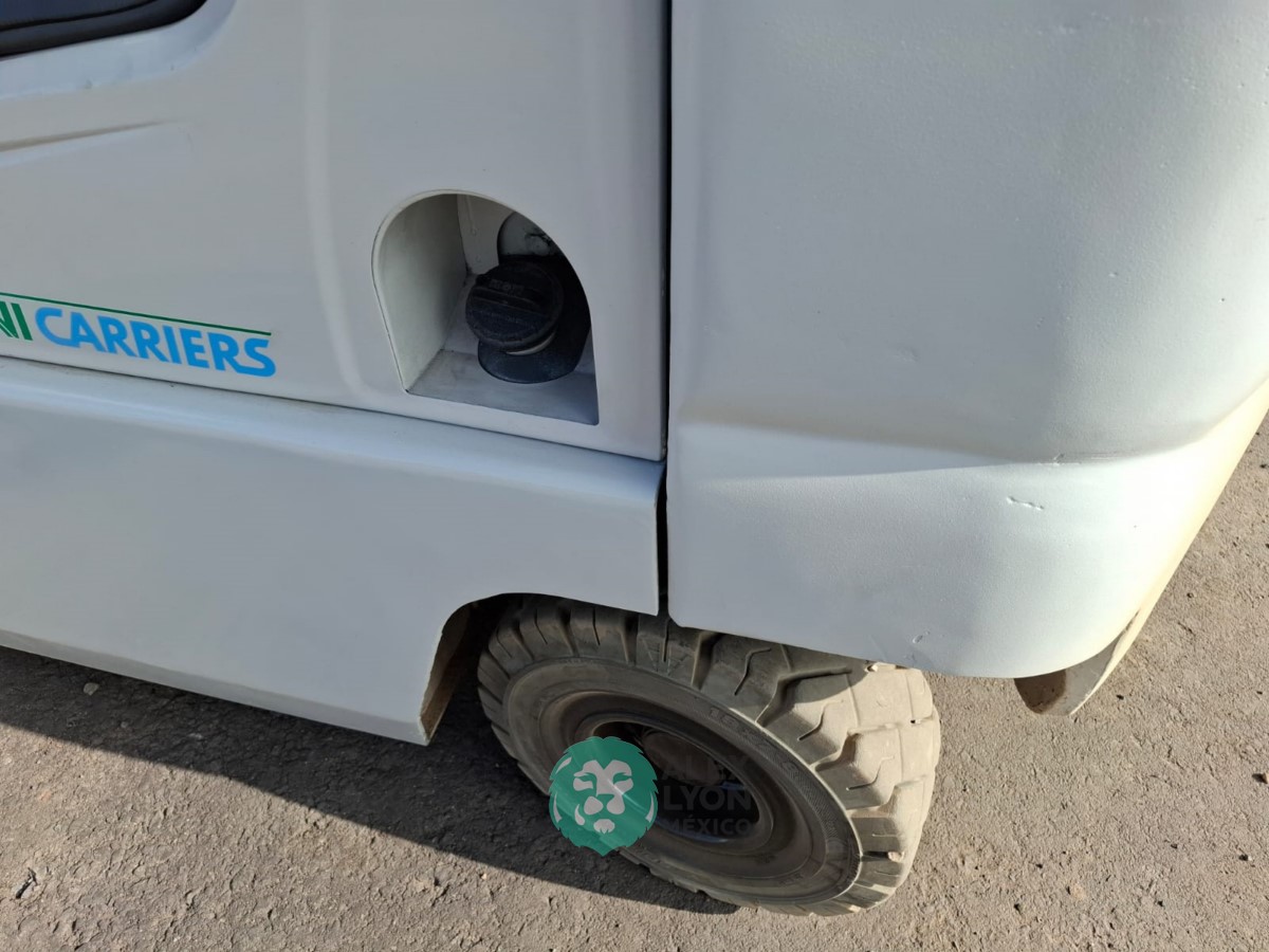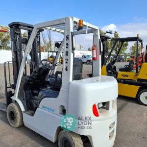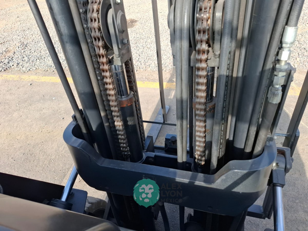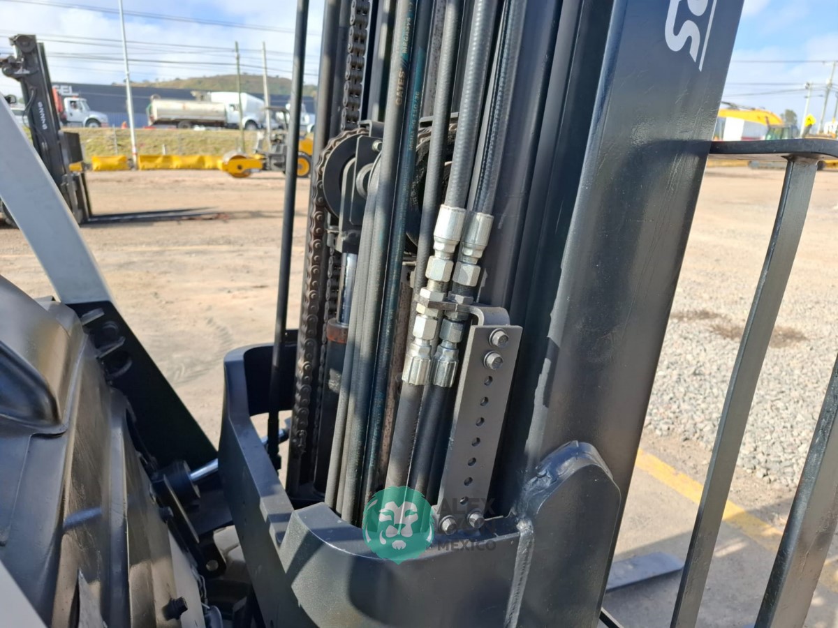 (VIDEO) CAP. 5000 LBS. TORRE 3 SECCIONES, MOTOR NISSAN 4 CIL. GASOLINA, LLTS. SOLIDAS 21X8X9 Y 18X7X8. (23675 HRS)