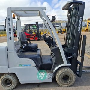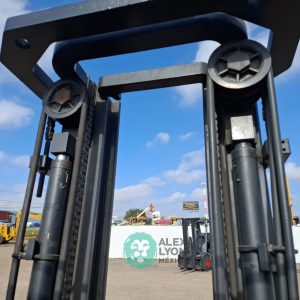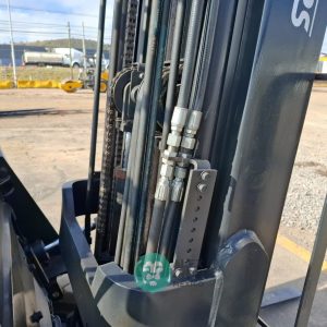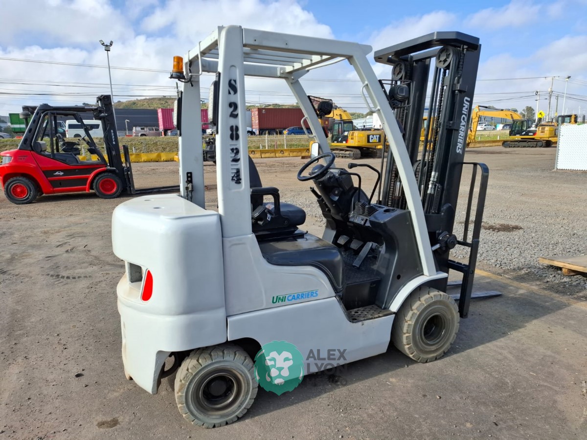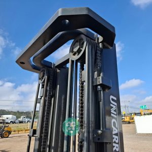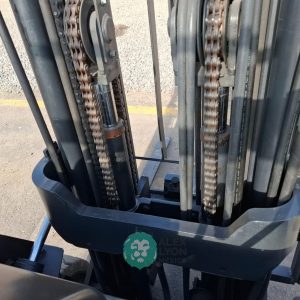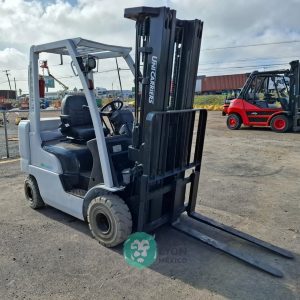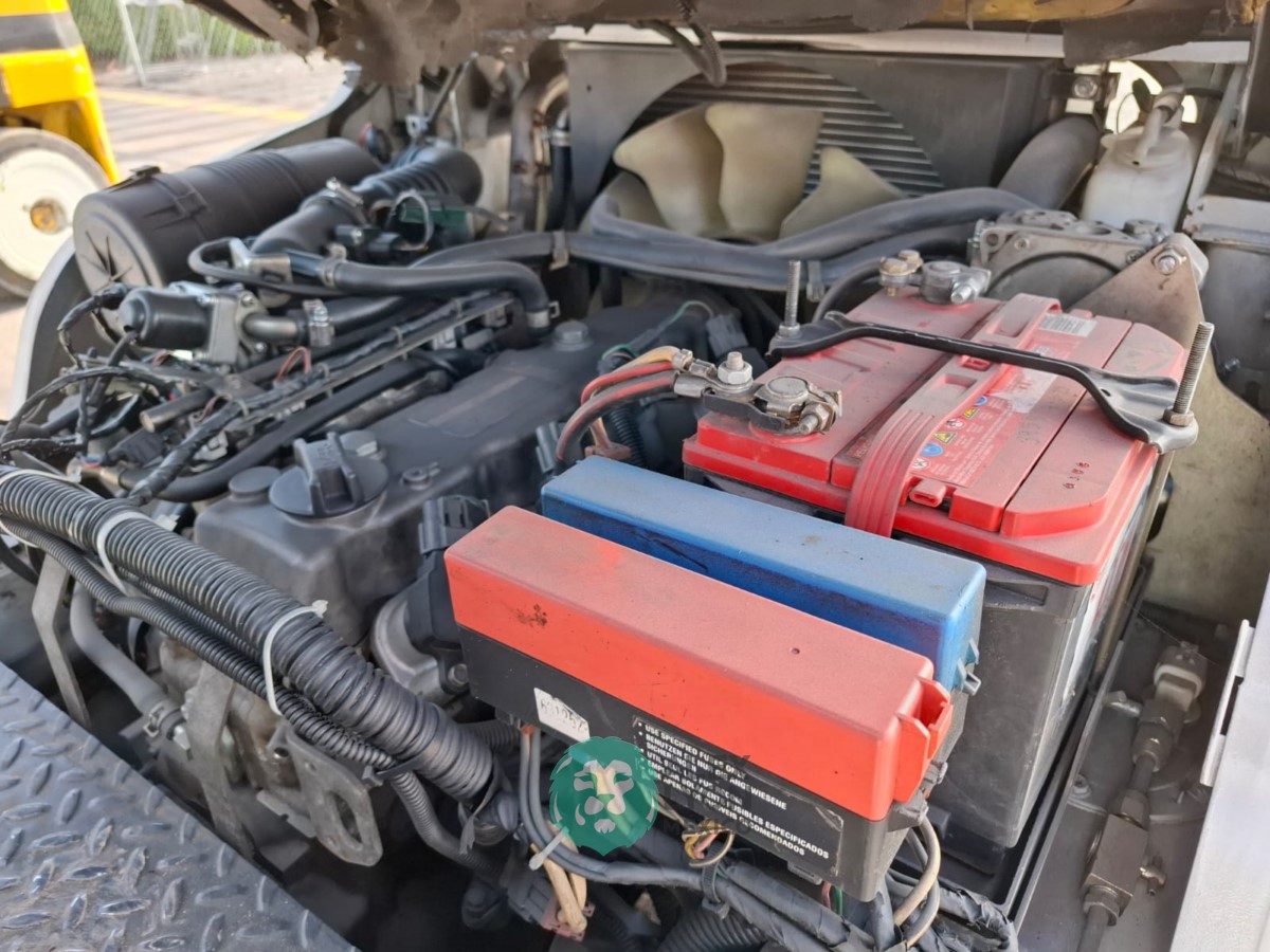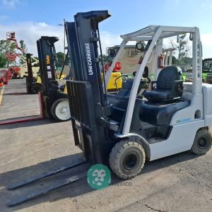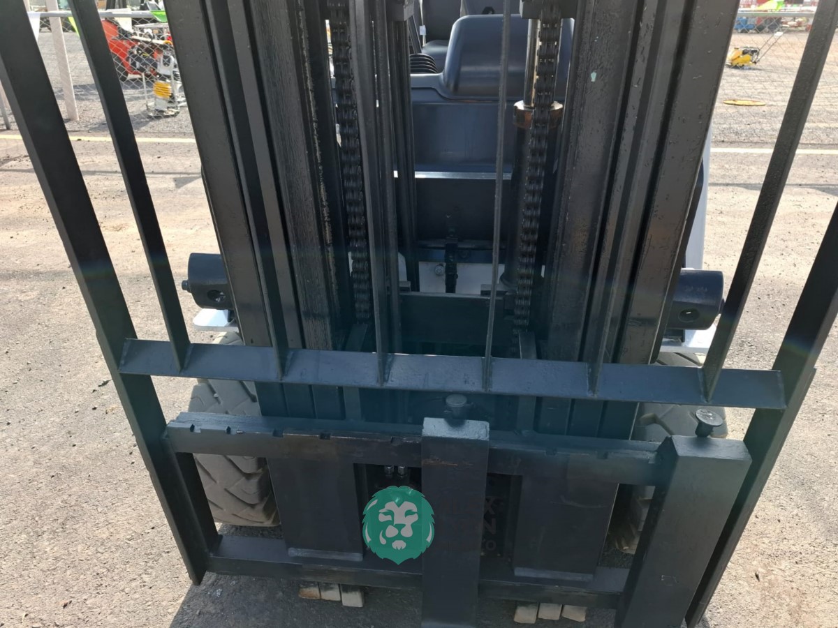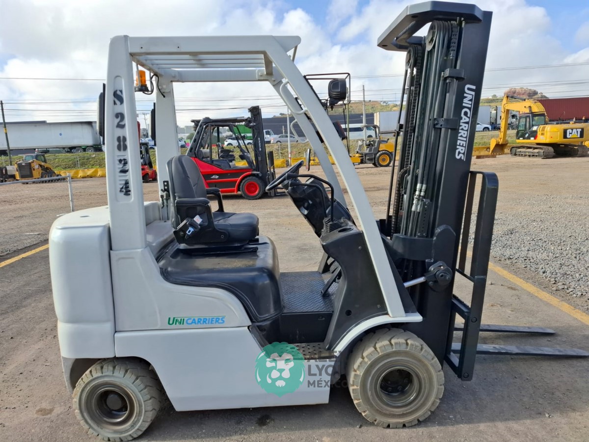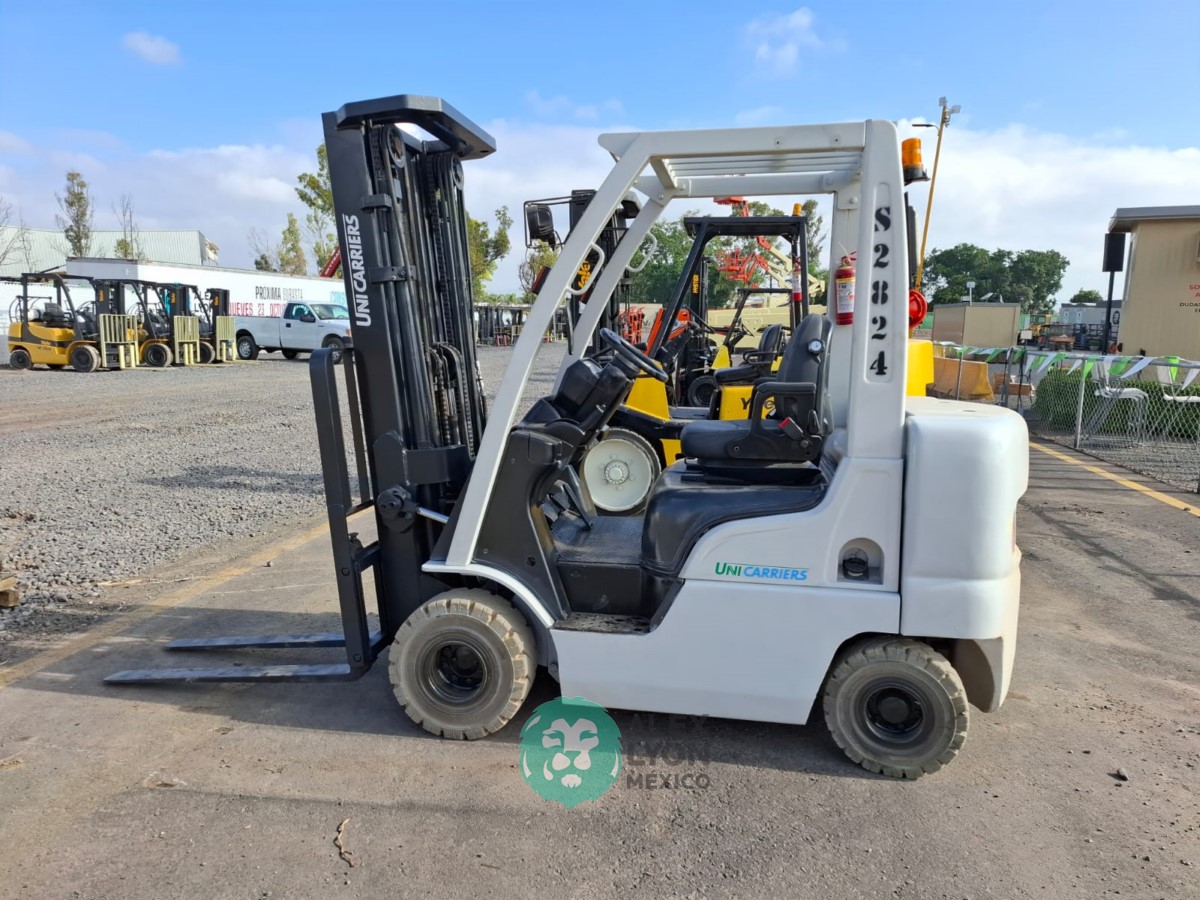 (VIDEO) CAP. 5000 LBS. TORRE 3 SECCIONES, MOTOR NISSAN 4 CIL. GASOLINA, LLTS. SOLIDAS 21X8X9 Y 18X7X8. (23675 HRS)