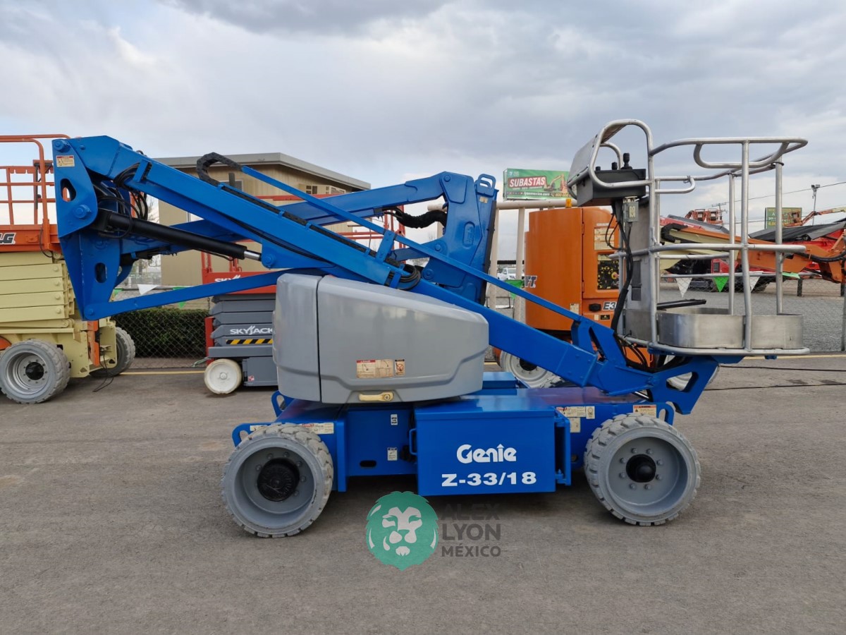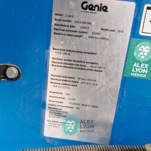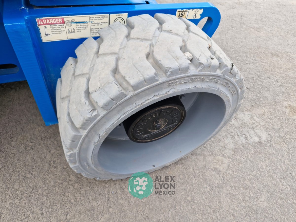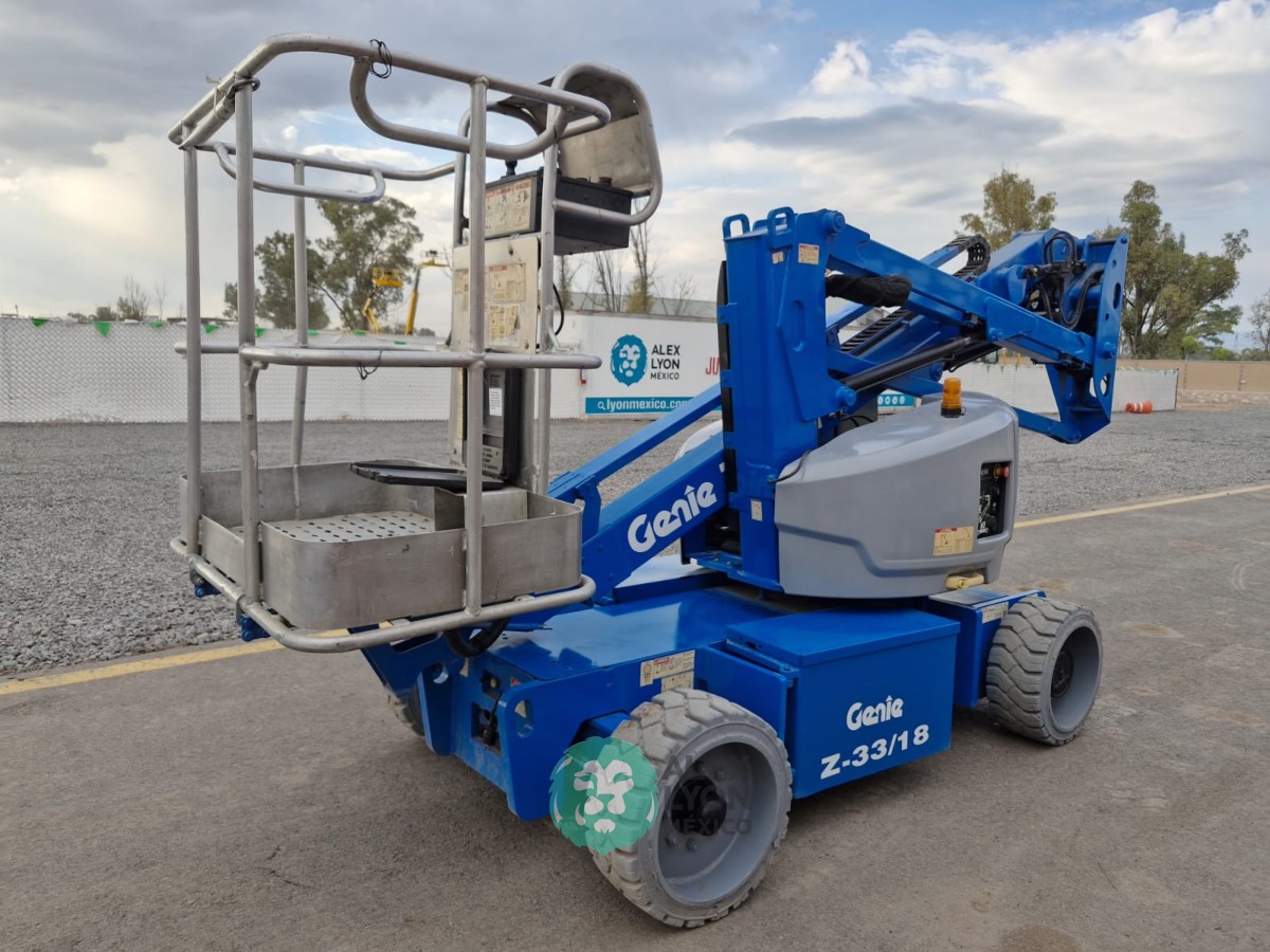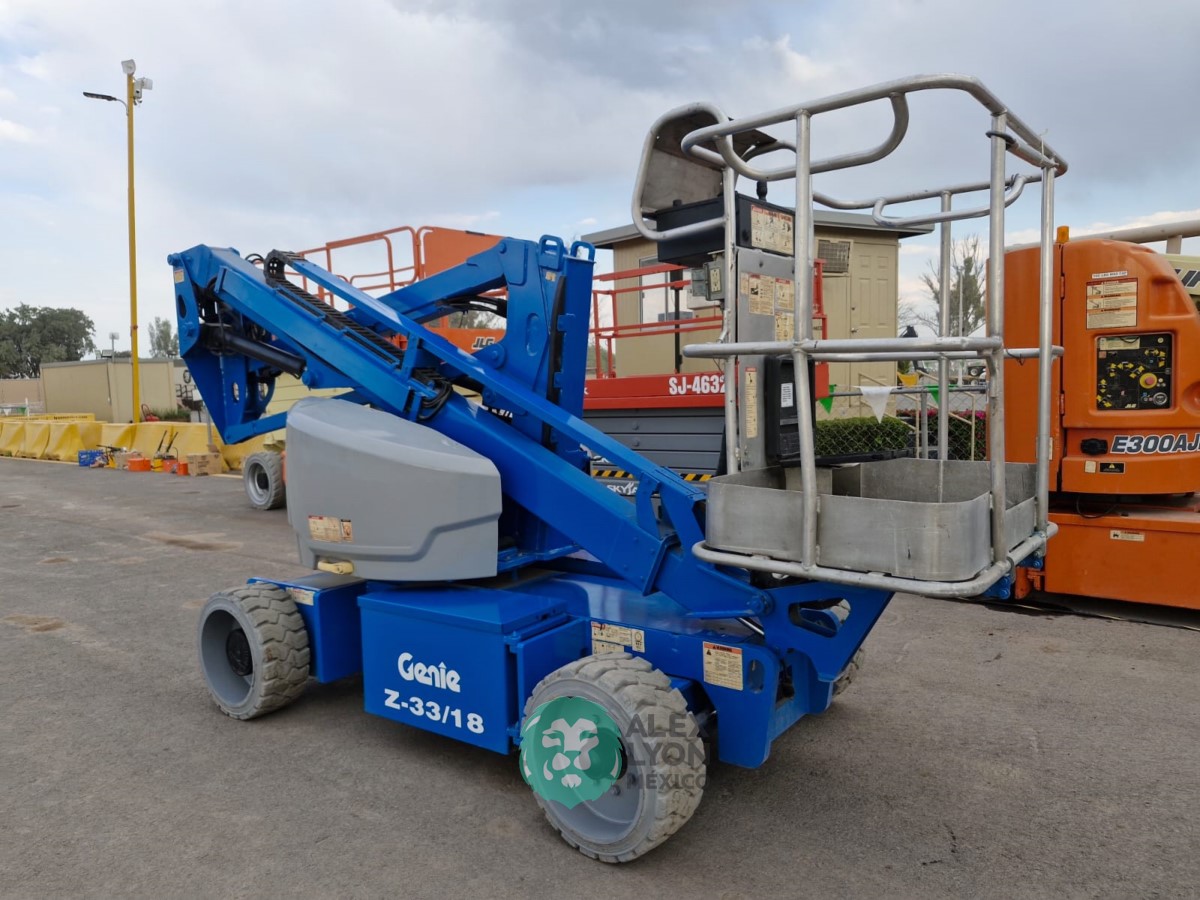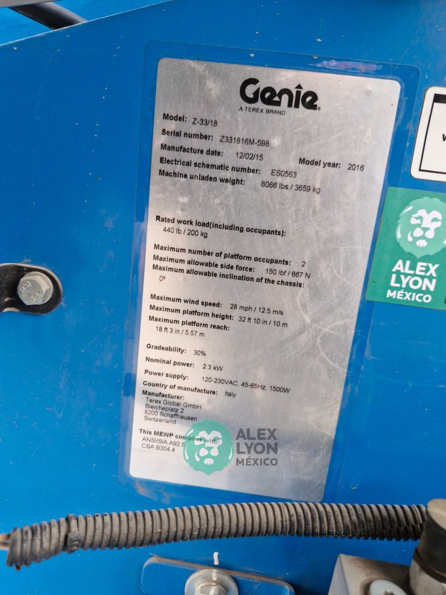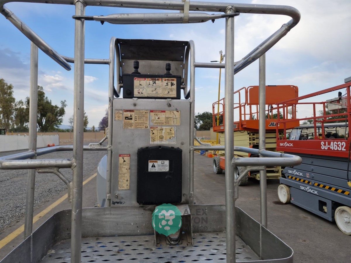 (V) ALTURA MAXIMA 33’/10 MTS. ALCANCE HORIZONTAL 18’/5.4 MTS. CAP. 500 LBS. MOTOR ELECTRICO, LLTS. .22X9. (625 HRS)