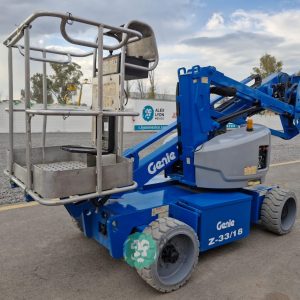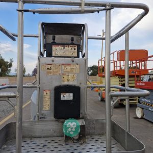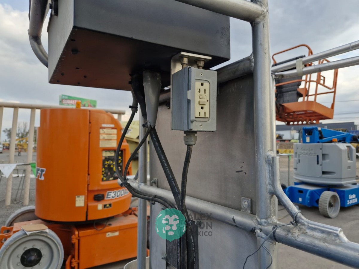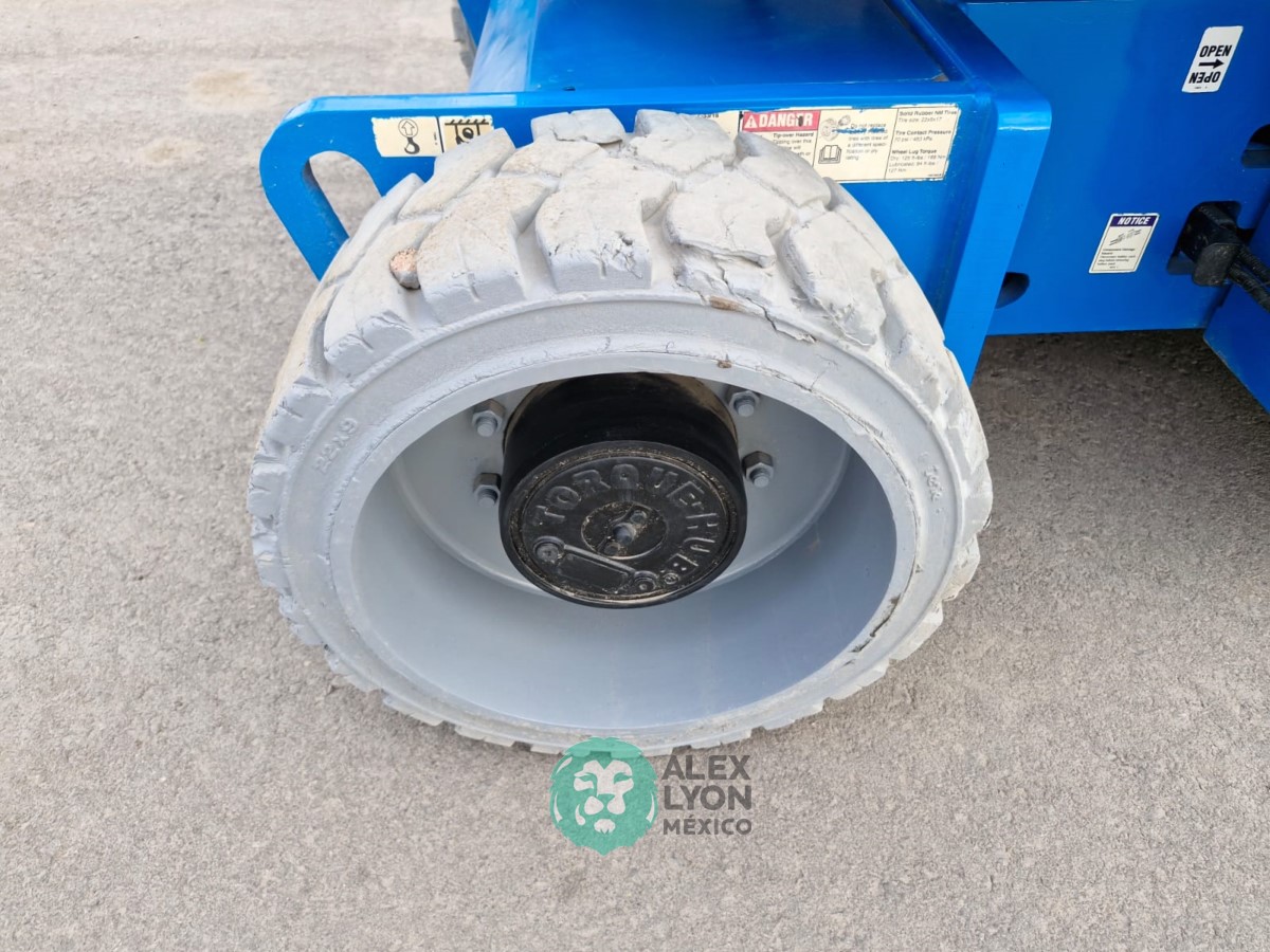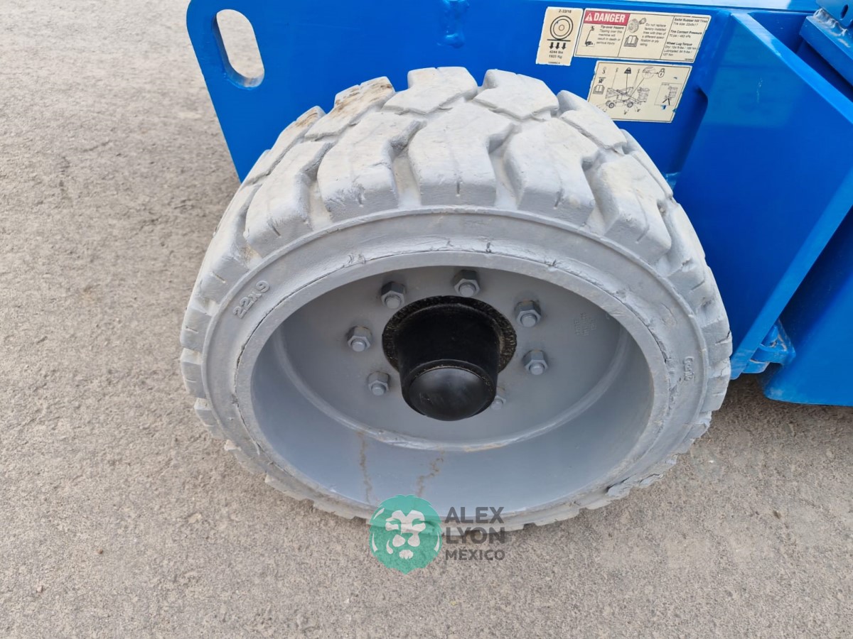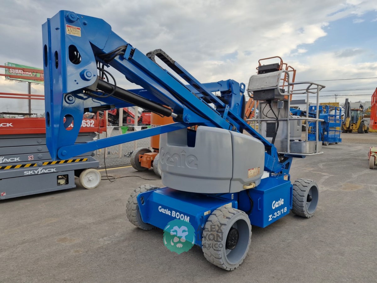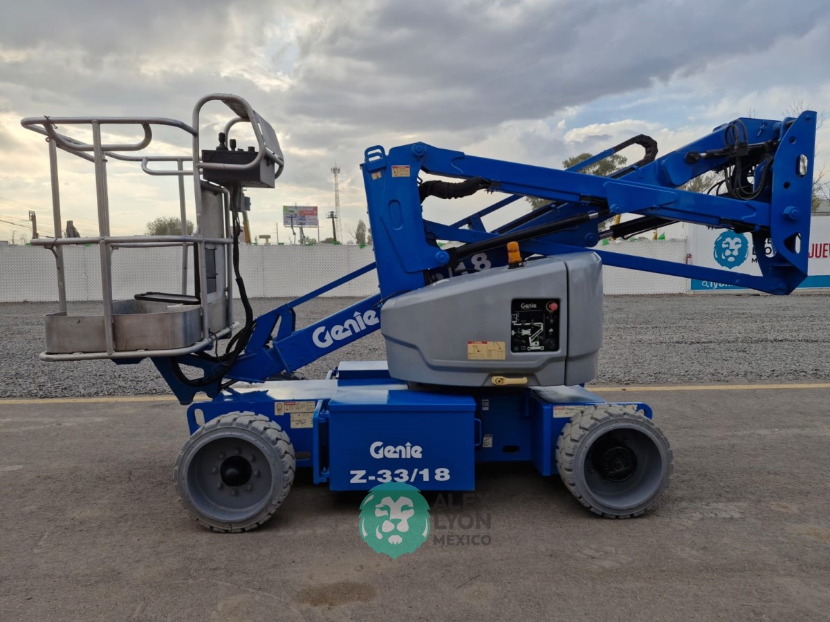 (V) ALTURA MAXIMA 33’/10 MTS. ALCANCE HORIZONTAL 18’/5.4 MTS. CAP. 500 LBS. MOTOR ELECTRICO, LLTS. .22X9. (625 HRS)
