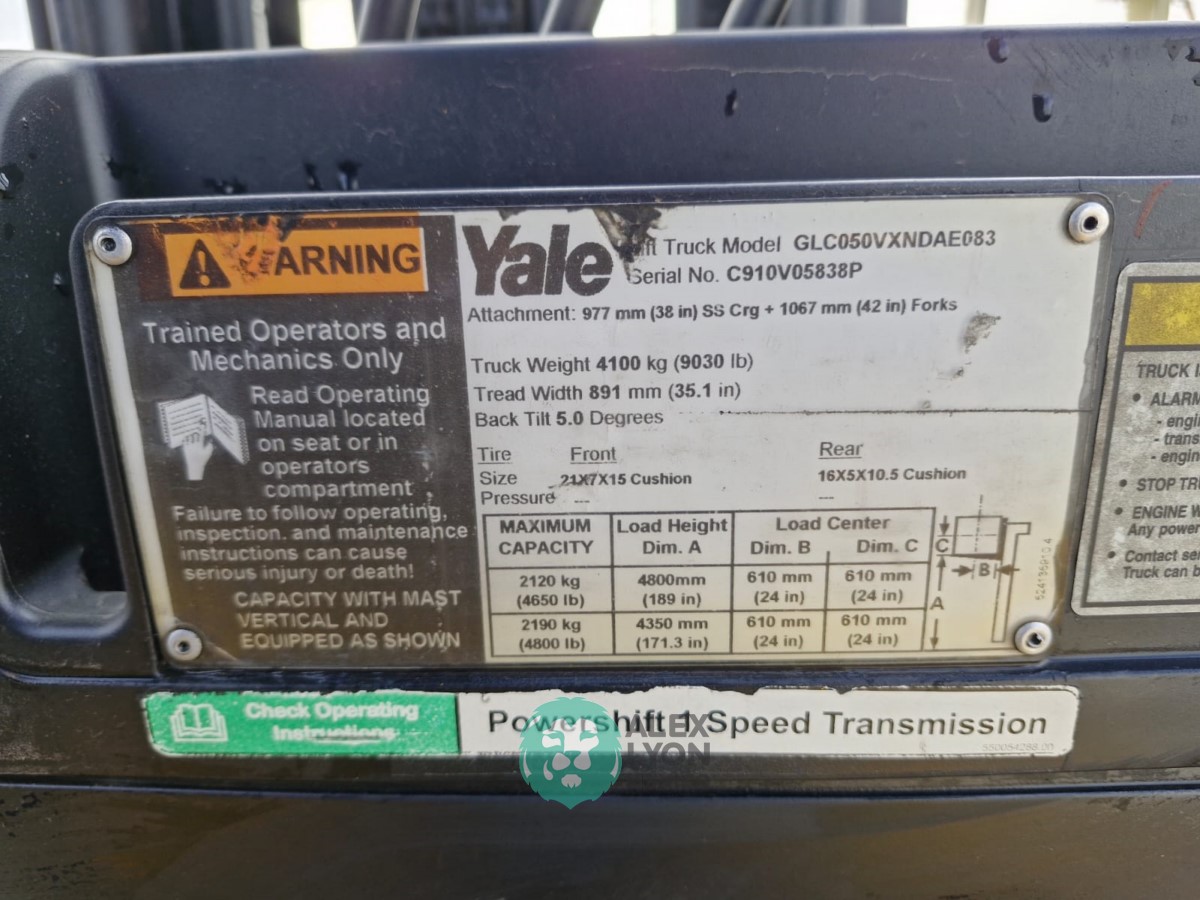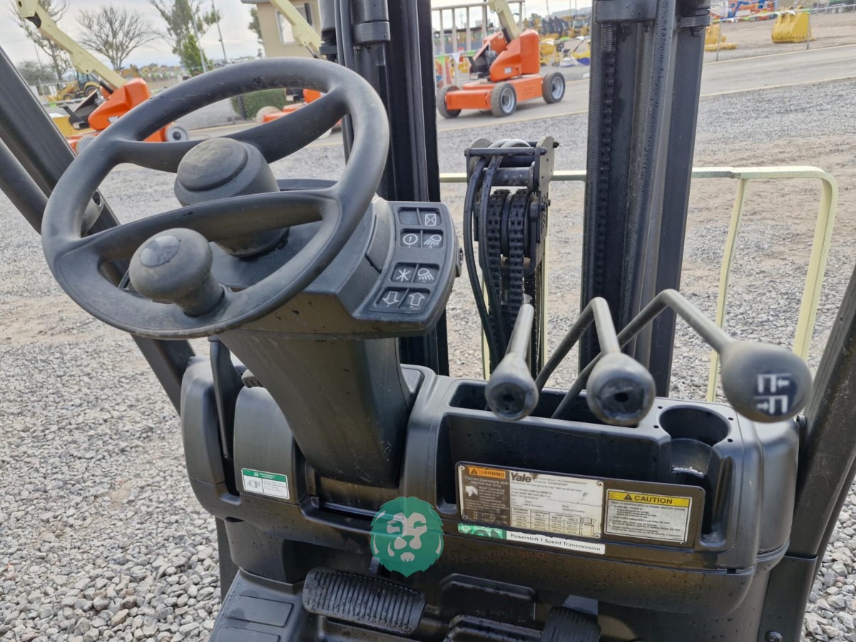 CAP. 4800 LBS. TORRE 3 SECCIONES C/DESPLAZAMIENTO LATERAL, CASETA, MOTOR YALE 4 CIL. GAS LP. (62 HP), LLTS. SOLIDAS 21X7X15 Y 16X6X10. (20202 HRS)