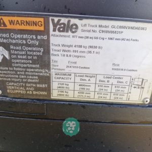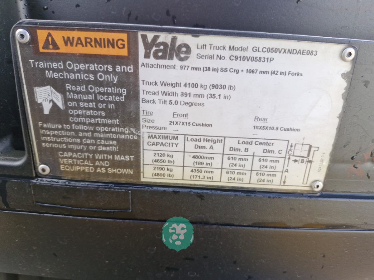 CAP. 4800 LBS. TORRE 3 SECCIONES C/DESPLAZAMIENTO LATERAL, CASETA, MOTOR YALE 4 CIL. GAS LP. (62 HP), LLTS. SOLIDAS 21X7X15 Y 16X6X10. (19444 HRS)