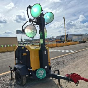 (V) 4 LAMPARAS 1000 WATTS C/U, C/GENERADOR DE 6000 WATTS, 60 HZ. SALIDAS 120 V. MOTOR 3 CIL. DIESEL, MONTADA SOBRE REMOLQUE 1 EJE Y TIRON, LLTS. 175/80D13. (6078 HRS)