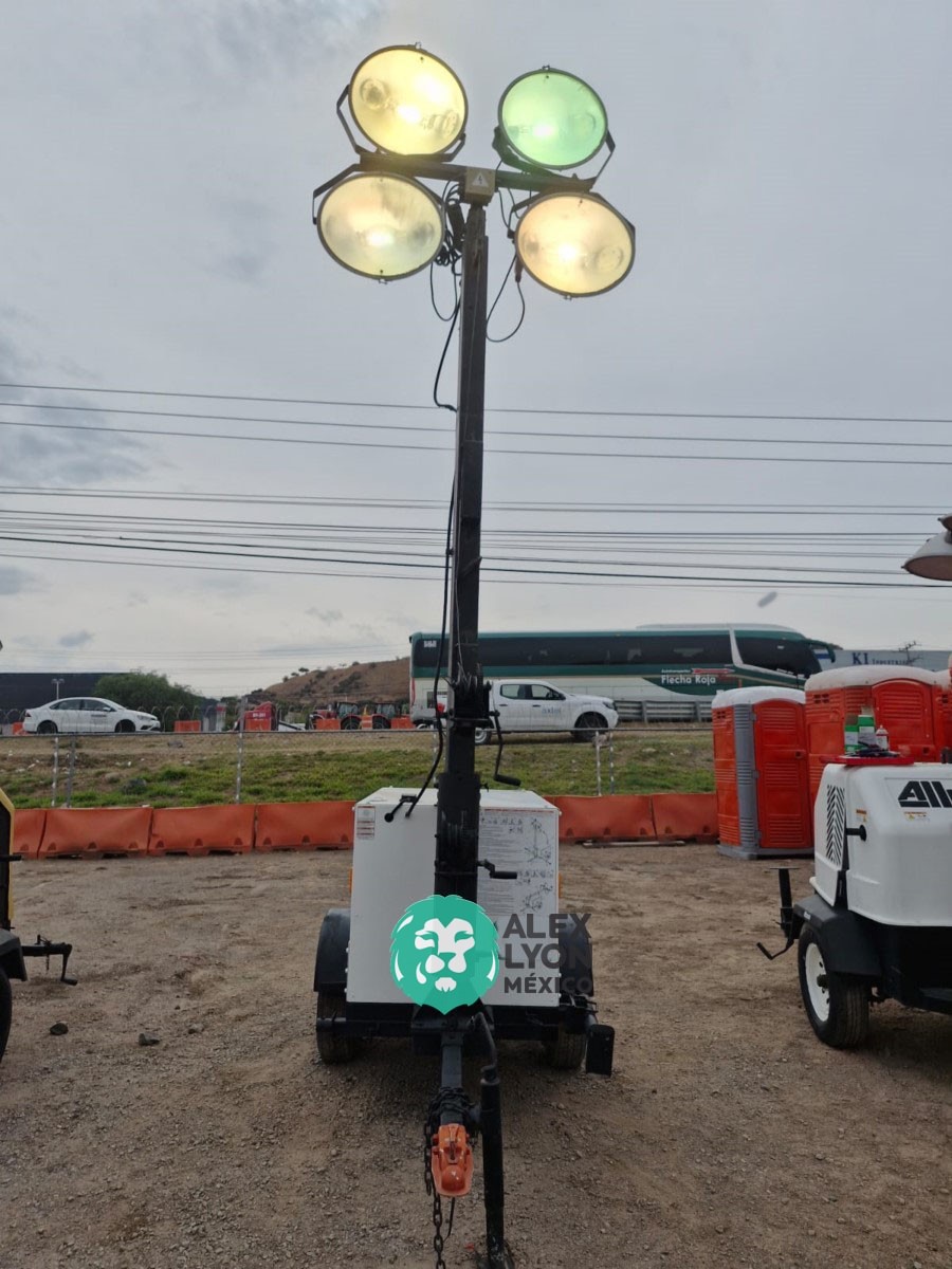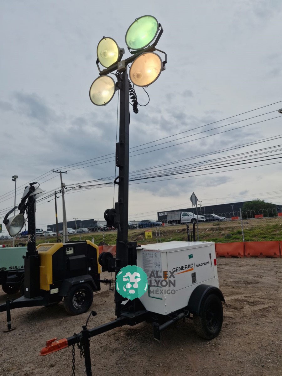 (V) 4 LAMPARAS DE 1000 WATTS C/U, C/GENERADOR DE ELECTRICIDAD DE 6000 WATTS. 60 HZ. SALIDAS 120/240 V. MOTOR’ 3 CIL. DIESEL (10.5 HP), MONTADA SOBRE REMOLQUE 1 EJE Y TIRON, LLTS. 175/80D13. (6751 HRS)