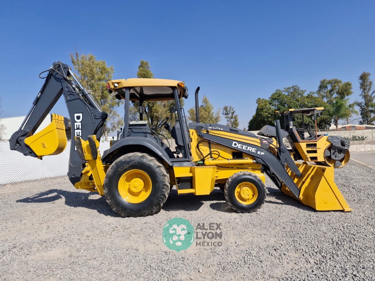 (V) 4X4 (DOBLE TRACCION), KIT HIDRAULICO, CUCHARON DE USO GENERAL, CASETA, CUCHARON TRASERO 18″ DE ACOPLAMIENTO RAPIDO, MOTOR JOHN DEERE 4 CIL. DIESEL C/TURBO (72 HP), LLTS. 19.5L-24 Y 12-16.5. (2606 HRS)