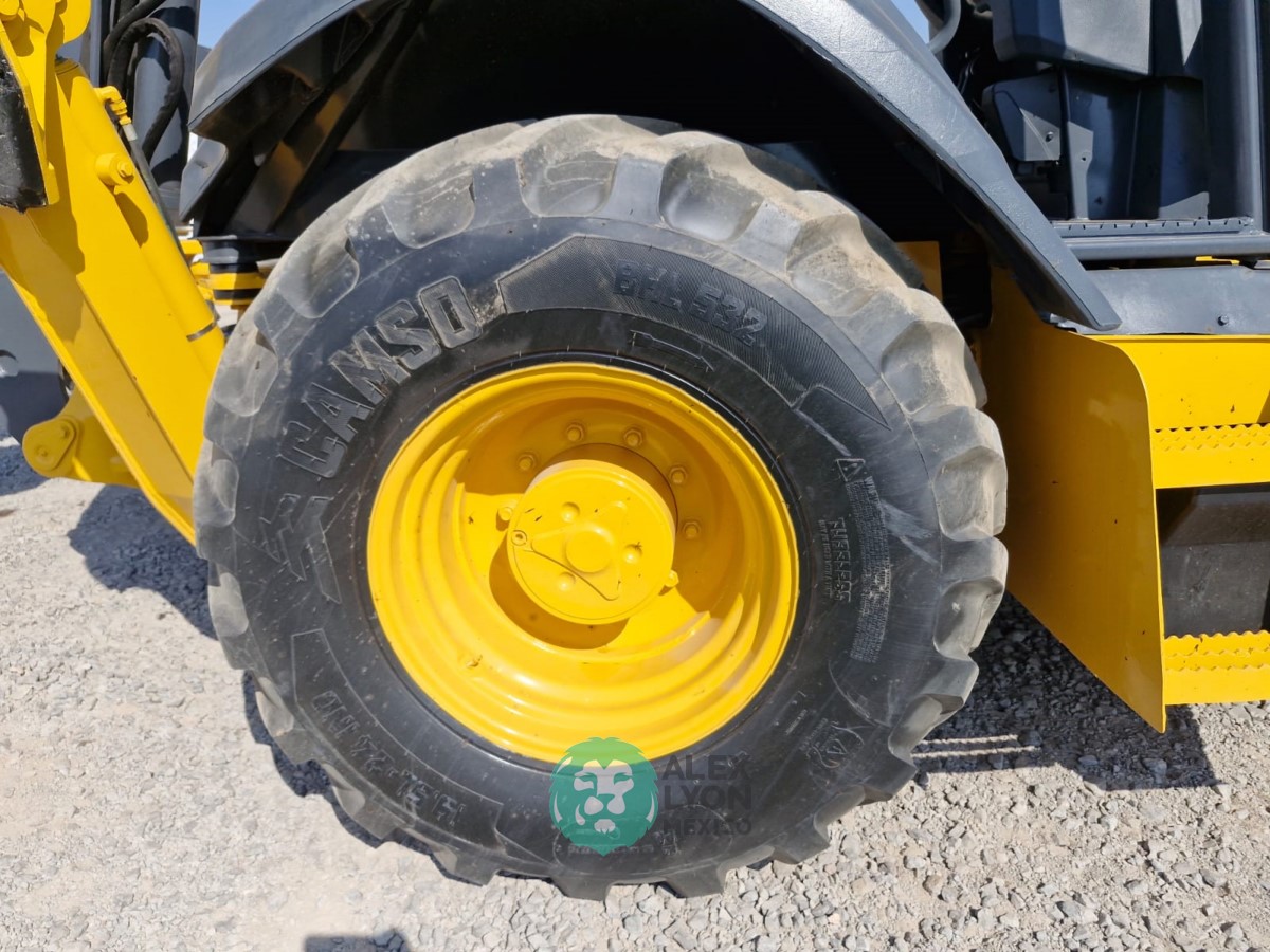 (VIDEO) 4X4 (DOBLE TRACCION), KIT HIDRAULICO, CUCHARON DE USO GENERAL, CASETA, CUCHARON TRASERO 18″ DE ACOPLAMIENTO RAPIDO, MOTOR JOHN DEERE 4 CIL. DIESEL C/TURBO (72 HP), LLTS. 19.5L-24 Y 12-16.5. (2599 HRS)