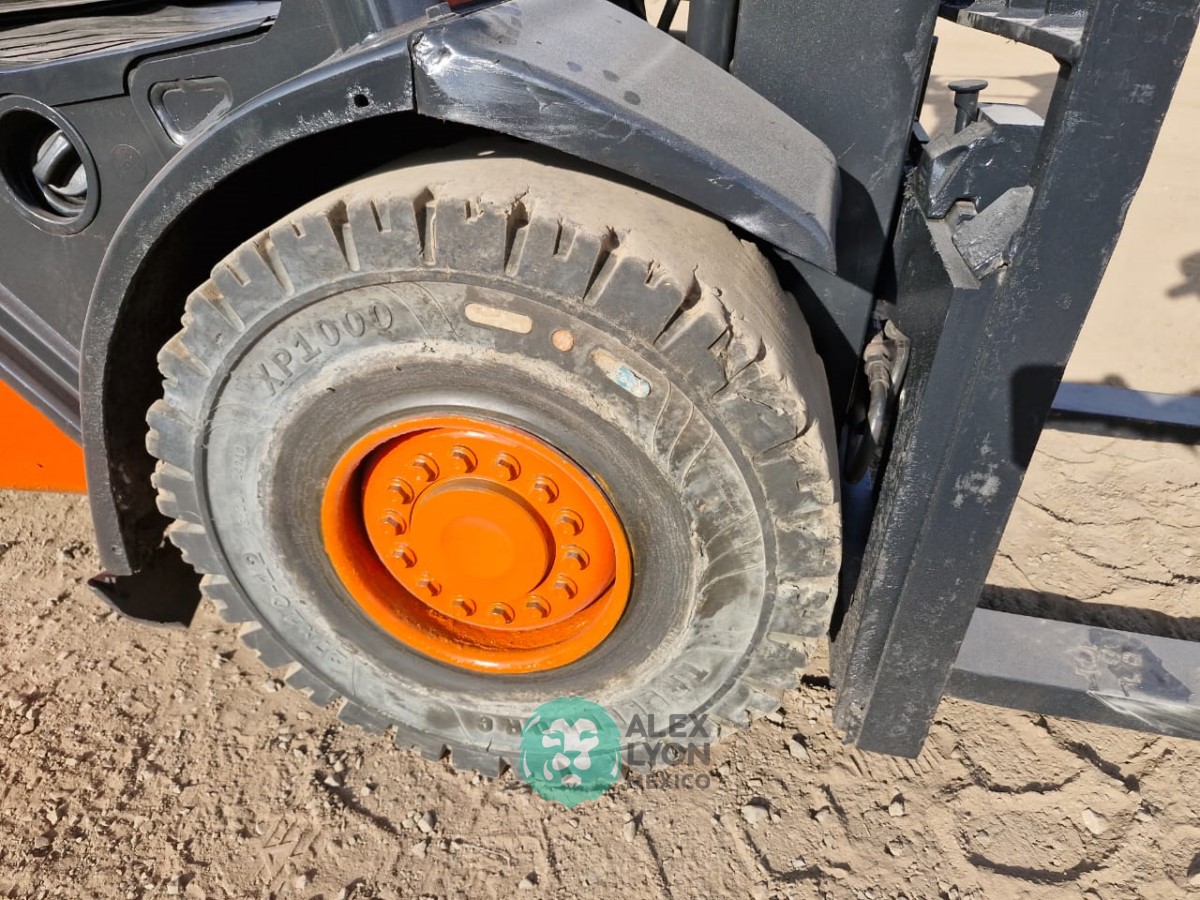 (V) CAP. 7000 LBS. TORRE 2 SECCIONES, CASETA, MOTOR VOLKSWAGEN 4 CIL. DIESEL (59 HP), LLTS. SOLIDAS 27X10-12 Y 23X9-10. (5781 HRS)