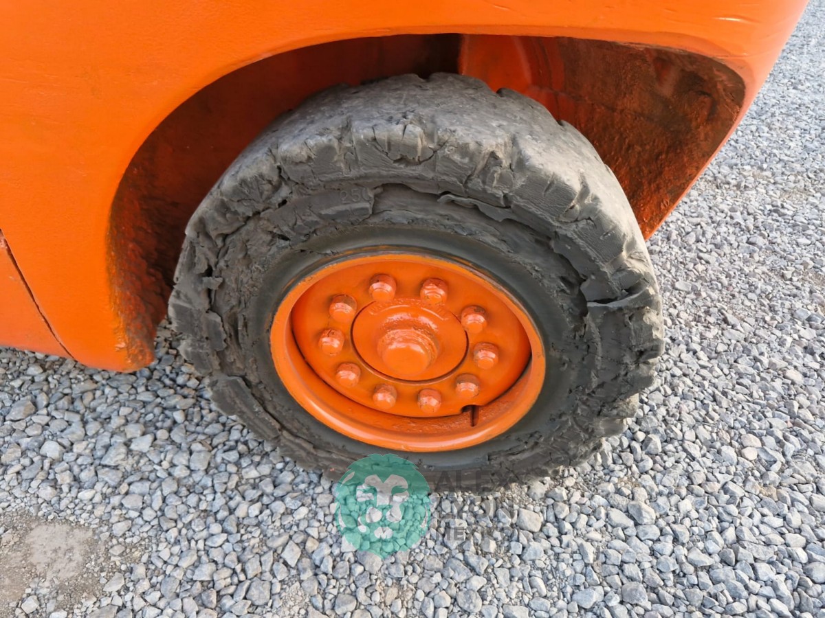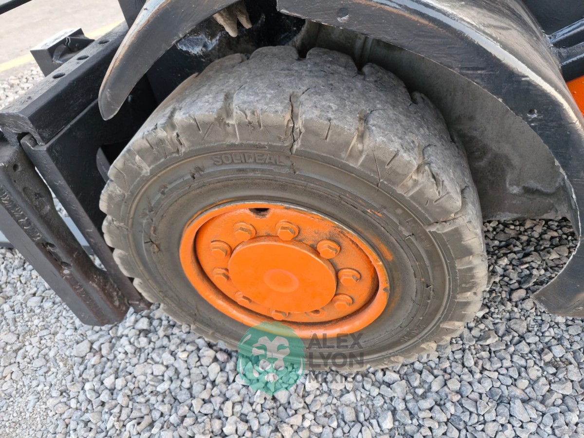 (V) CAP. 8000 LBS. TORRE 2 SECCIONES C/DESPLAZAMIENTO LATERAL, CASETA, MOTOR VOLKSWAGEN 4 CIL. DIESEL (73.7 HP), LLTS. SOLIDAS 250-15. (15982 HRS)