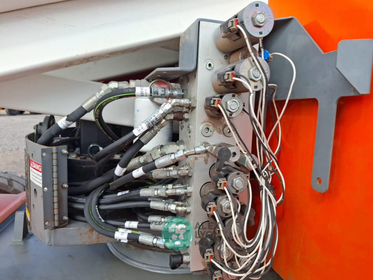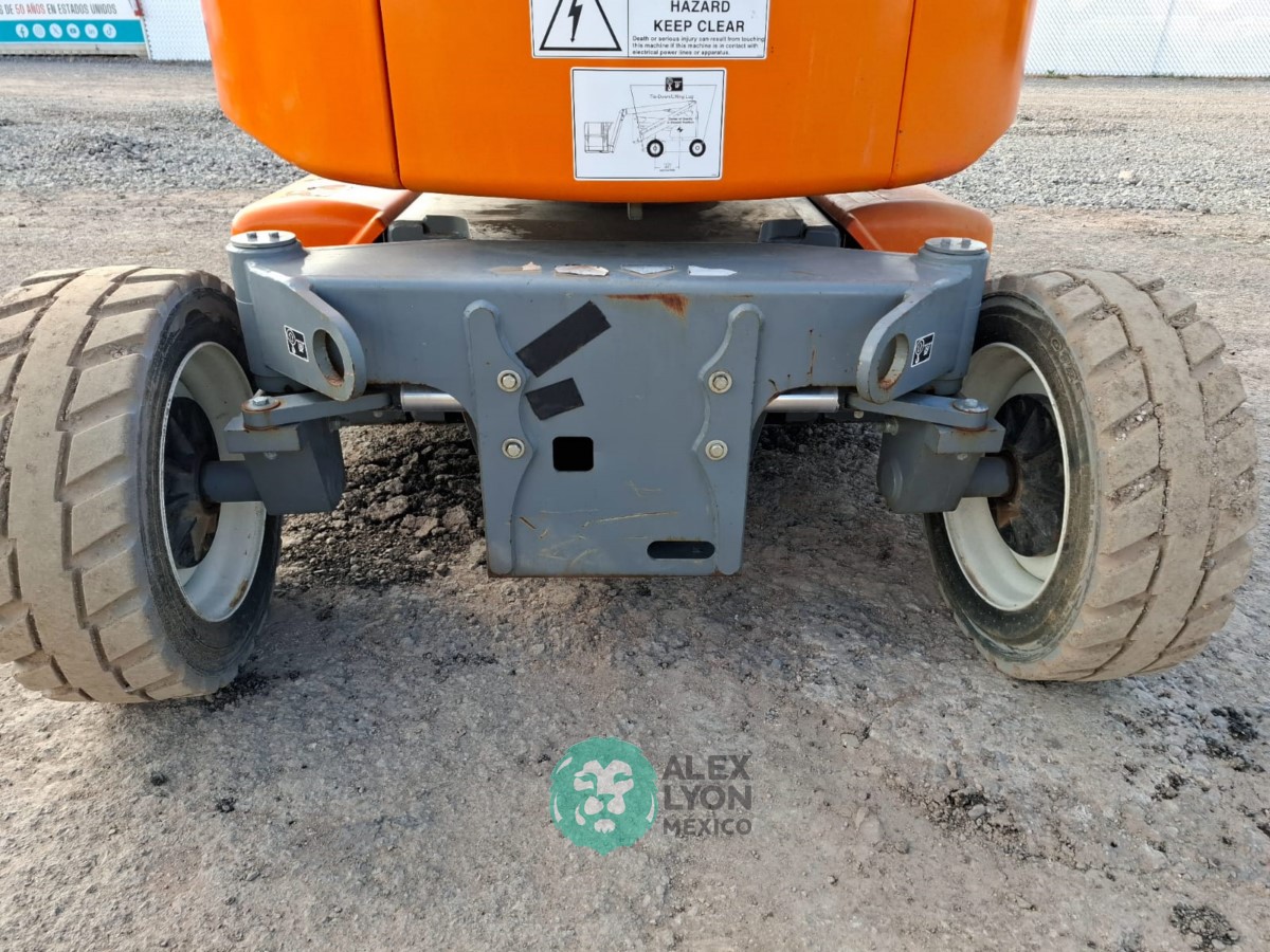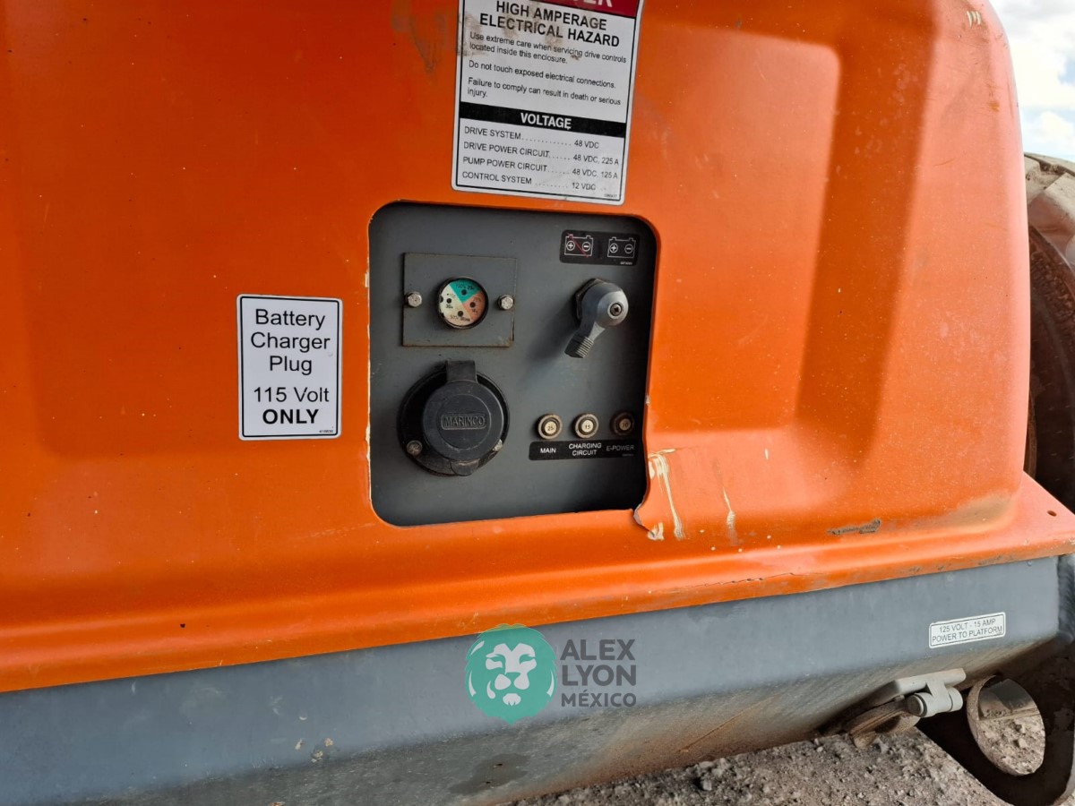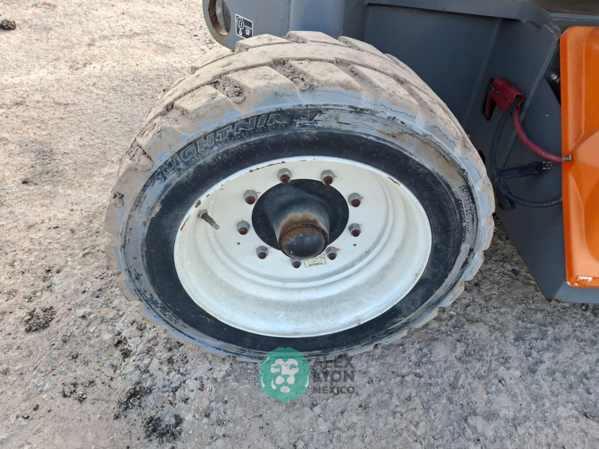 (V) ALTURA MAXIMA 46’/14.02 MTS. ALCANCE HORIZONTAL 24.5’/7.46 MTS. CAP. 500 LBS. MOTOR ELECTRICO, LLTS. 240/55D17.5. (NO TIENE HOROMETRO)