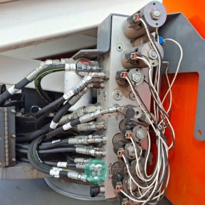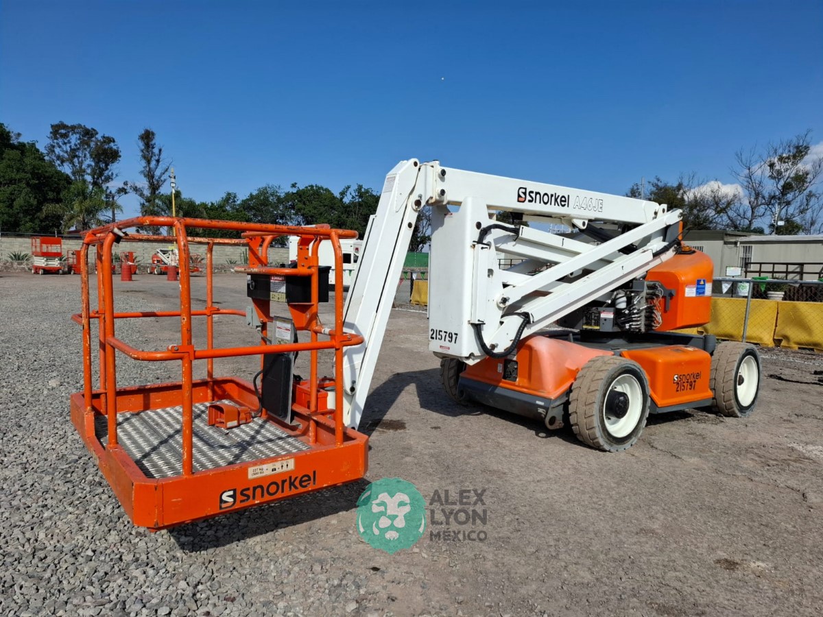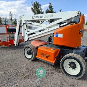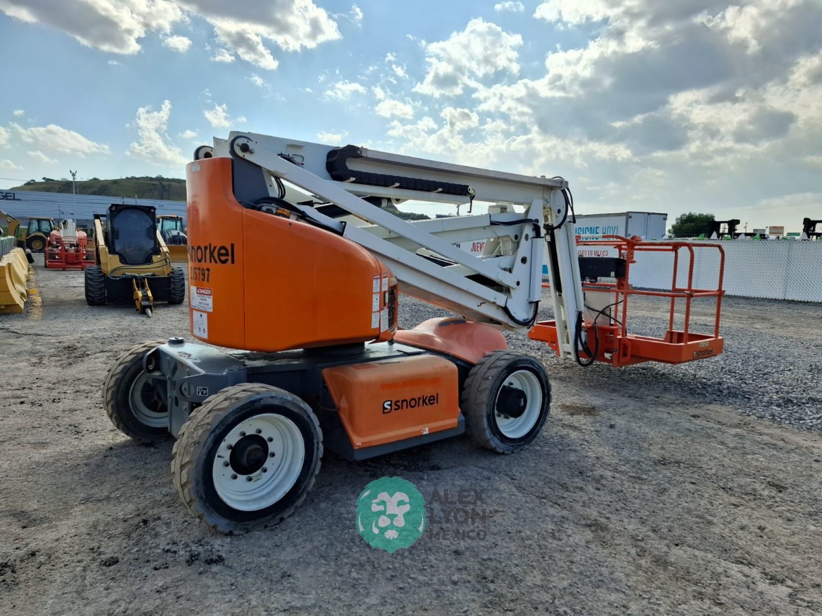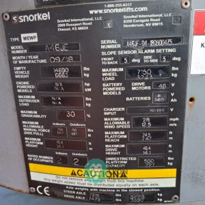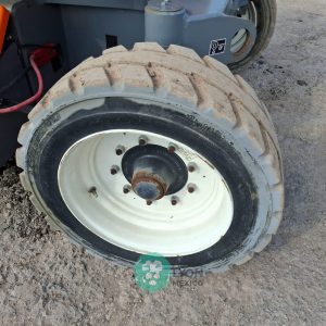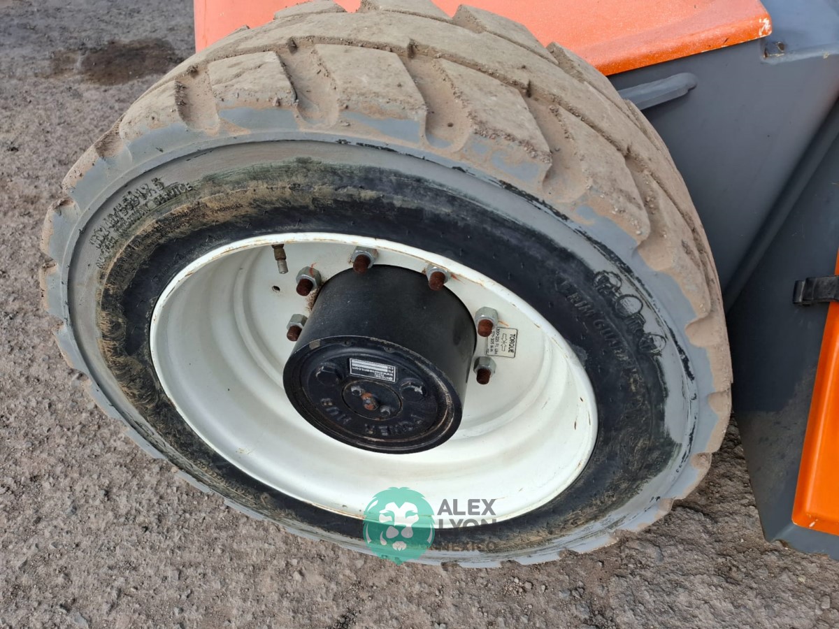 (V) ALTURA MAXIMA 46’/14.02 MTS. ALCANCE HORIZONTAL 24.5’/7.46 MTS. CAP. 500 LBS. MOTOR ELECTRICO, LLTS. 240/55D17.5. (NO TIENE HOROMETRO)