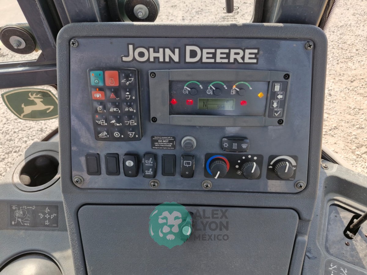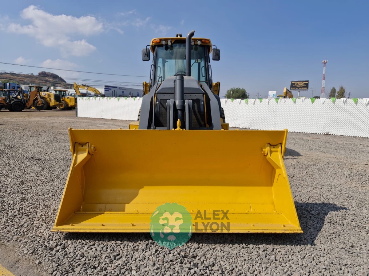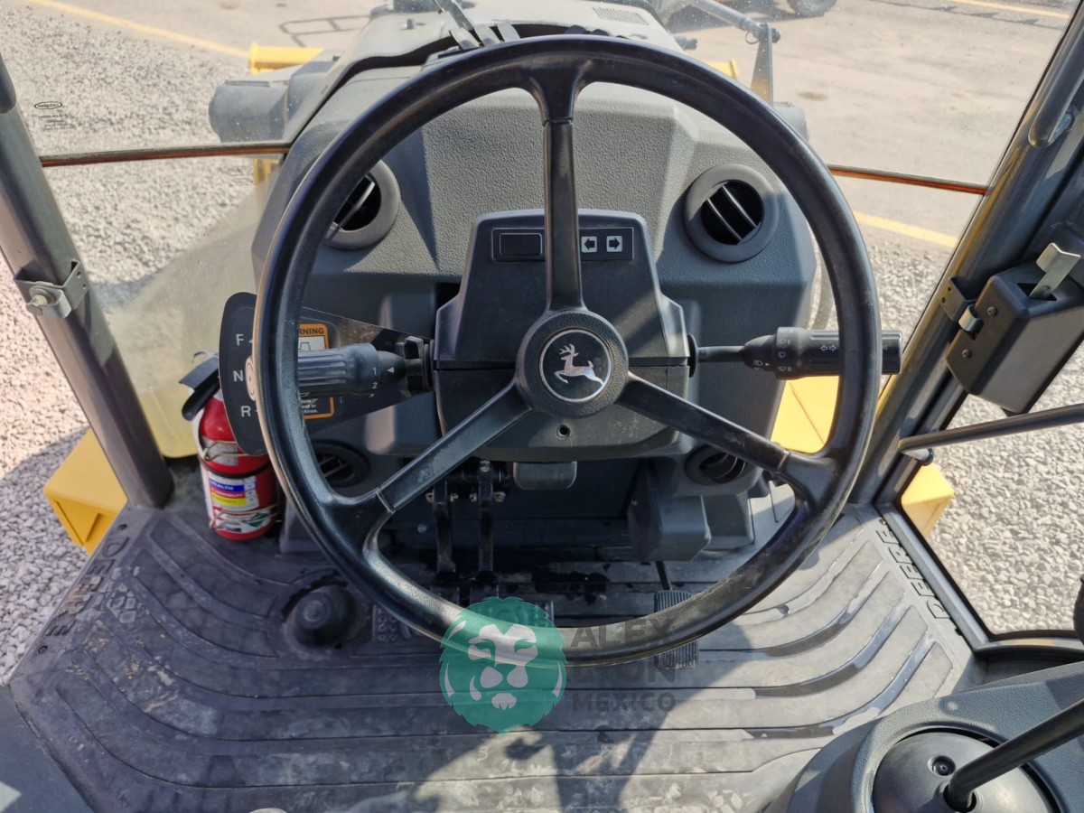 CUCHARON 4 EN 1 (TIPO ALMEJA), CABINA C/CLIMA, ENCENDIDO ELECTRONICO, ESTEREO AM/FM, CUCHARON TRASERO 16″, MOTOR JOHN DEERE 4 CIL. DIESEL C/TURBO (150 HP), LLTS. 20.5-25 Y 14.5/75-16.1. (5945 HRS)