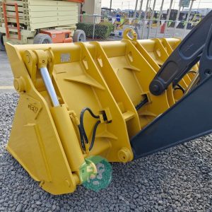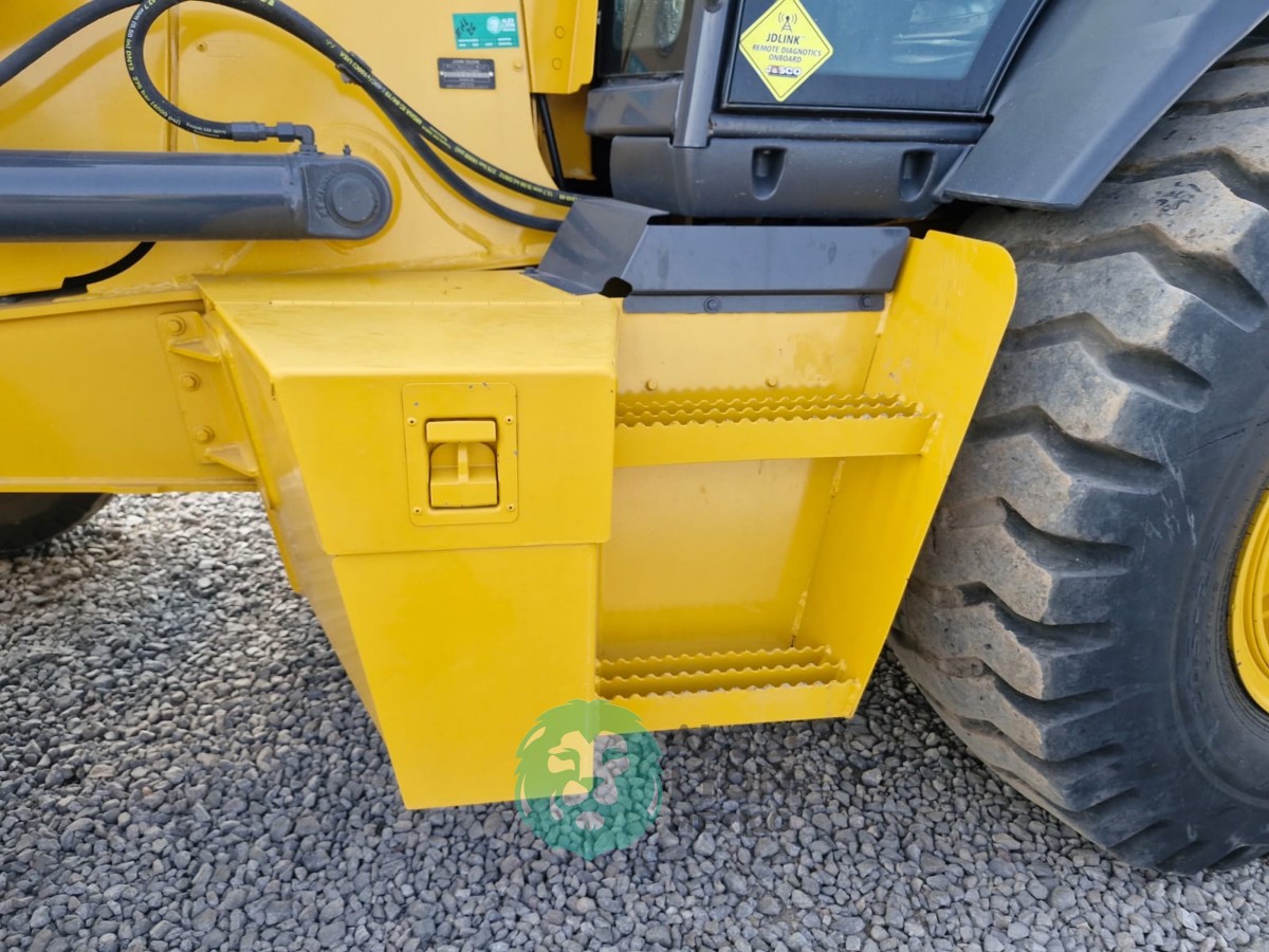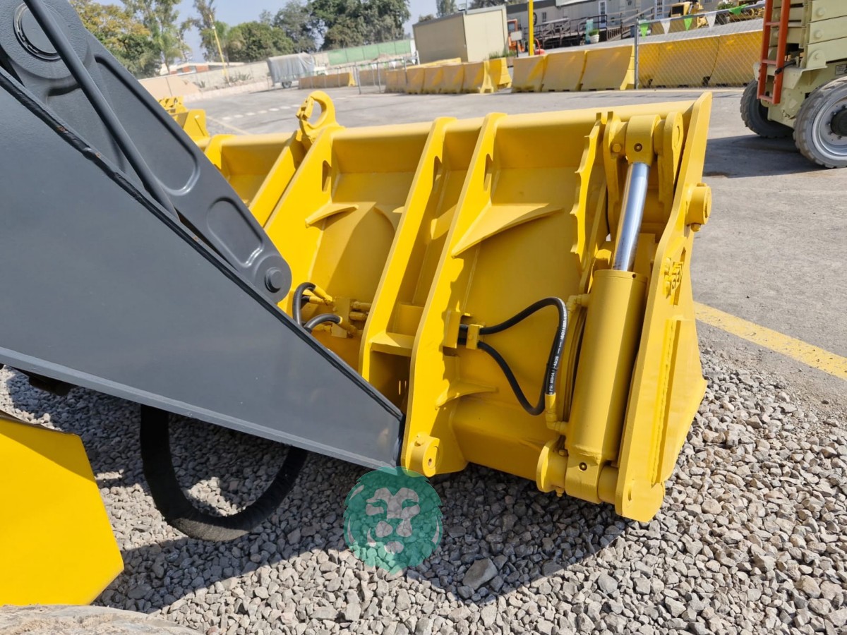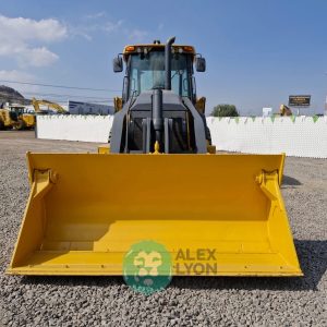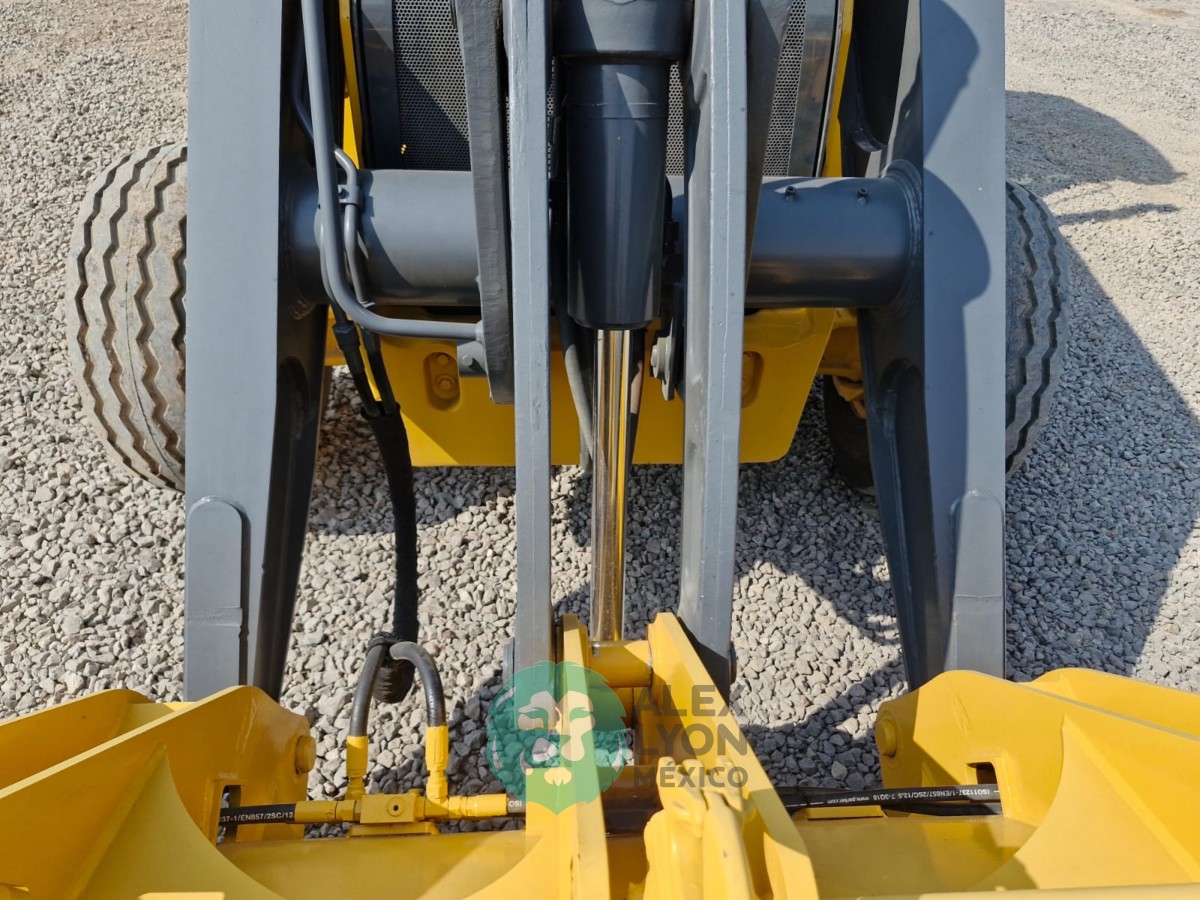 CUCHARON 4 EN 1 (TIPO ALMEJA), CABINA C/CLIMA, ENCENDIDO ELECTRONICO, ESTEREO AM/FM, CUCHARON TRASERO 16″, MOTOR JOHN DEERE 4 CIL. DIESEL C/TURBO (150 HP), LLTS. 20.5-25 Y 14.5/75-16.1. (5945 HRS)