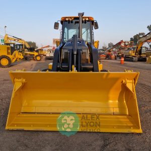 CUCHARON 4 EN 1 (TIPO ALMEJA), CABINA C/CLIMA, CONTROLES TIPO PILOTO, ENCENDIDO ELECTRONICO, CUCHARON TRASERO 16″, MOTOR JOHN DEERE 4 CIL. DIESEL C/TURBO (150 HP), LLTS. 20.5-25 Y 14.5/75-16. (6154 HRS)