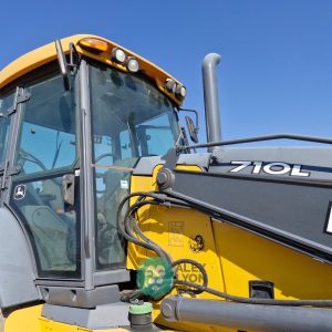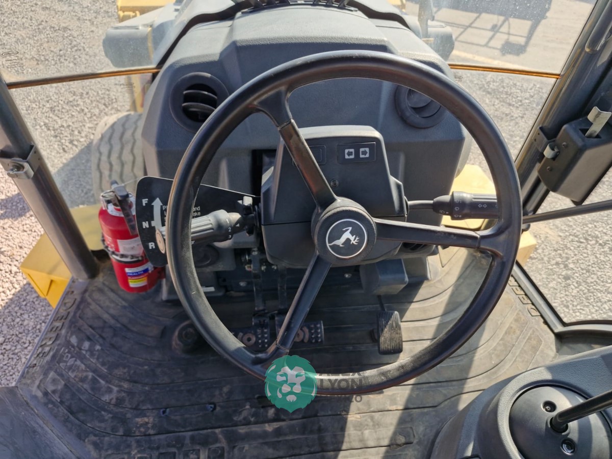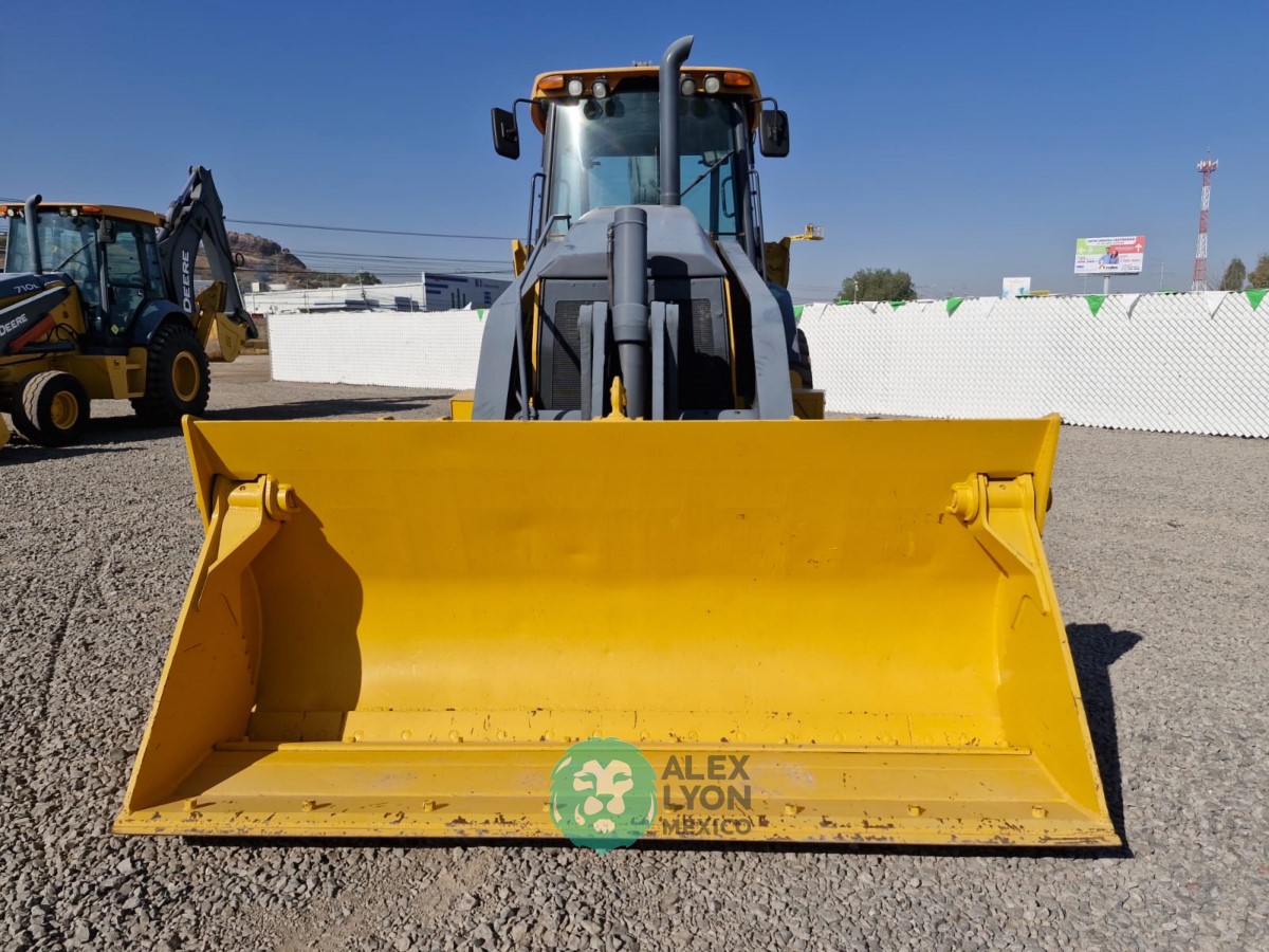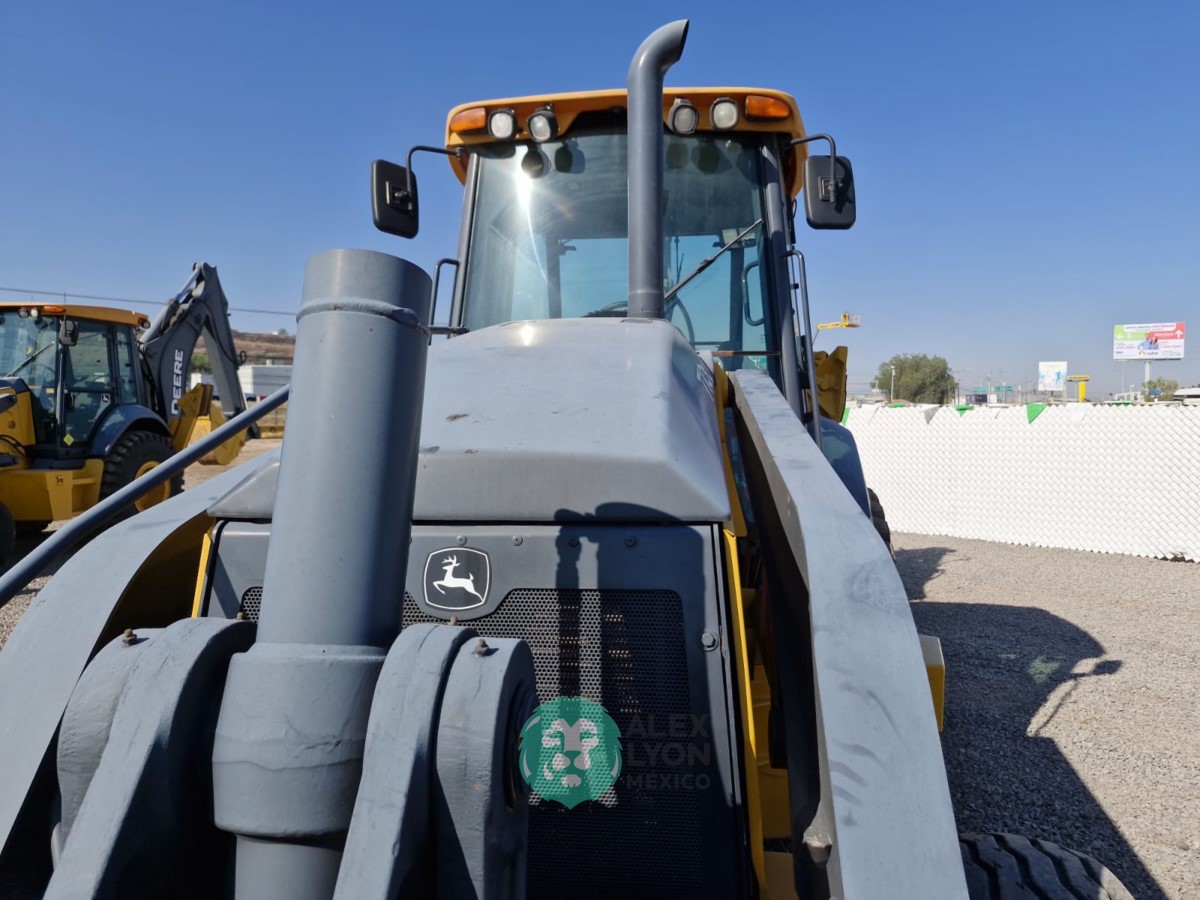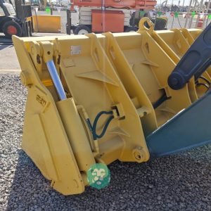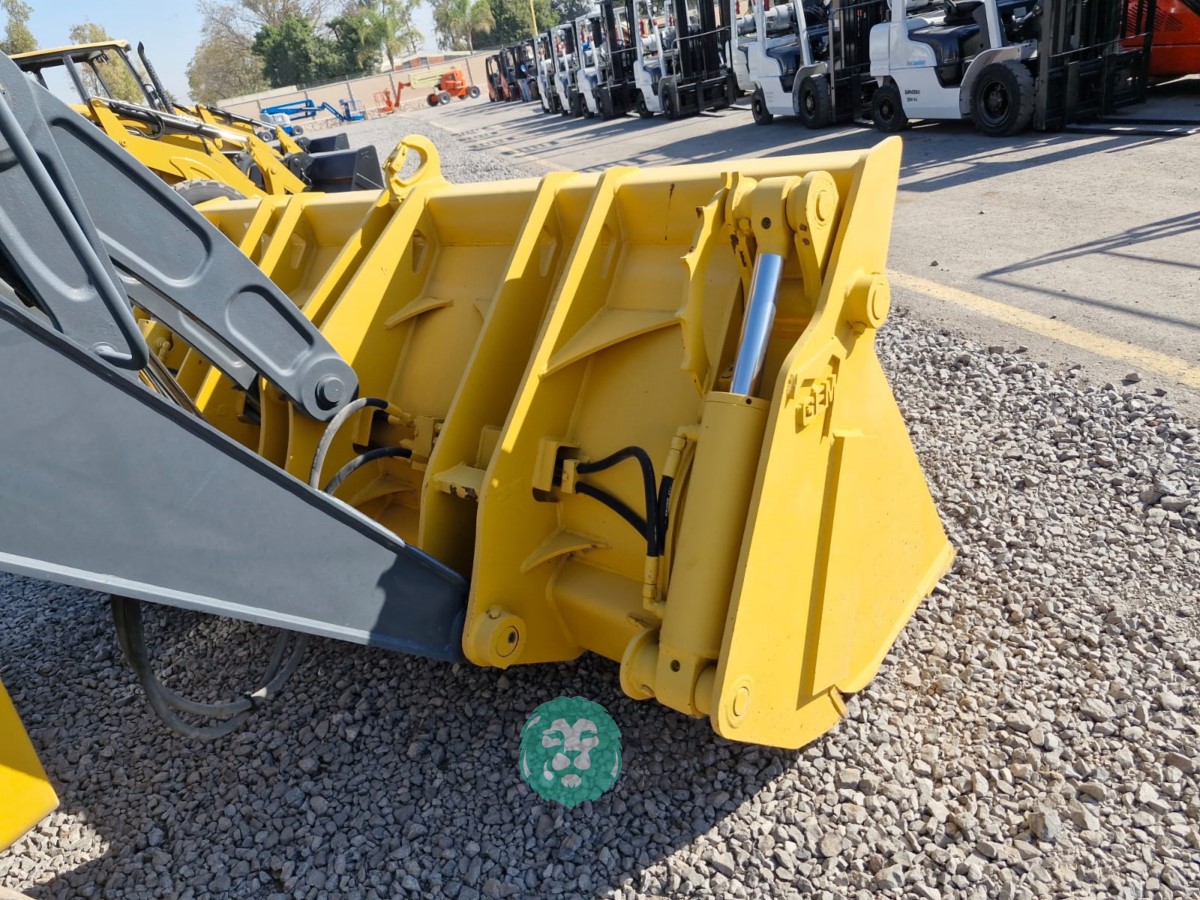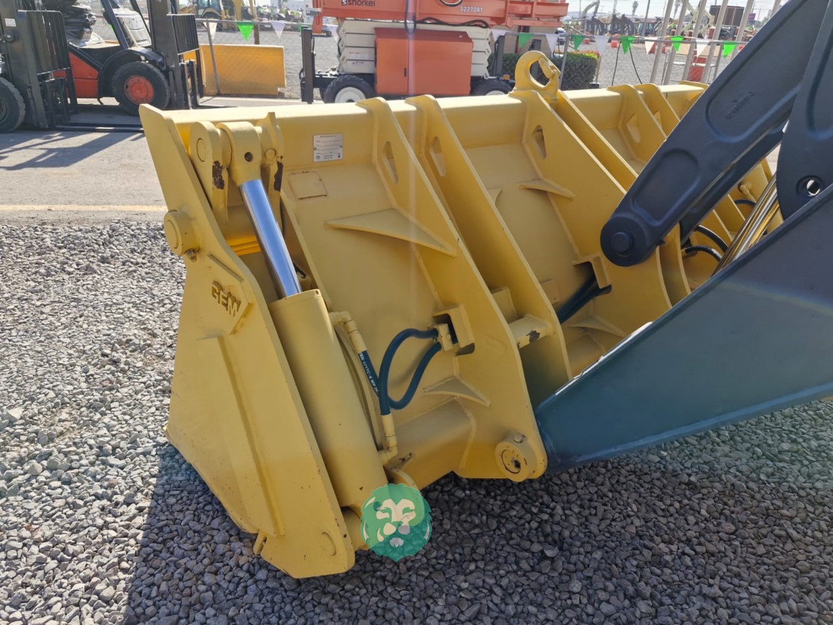 (V) CUCHARON 4 EN 1 (TIPO ALMEJA), CABINA C/CLIMA, ENCENDIDO ELECTRONICO, CUCHARON TRASERO 18″, MOTOR JOHN DEERE 4 CIL. DIESEL C/TURBO (150 HP), LLTS. 20.5-25 Y 14.5/75-16. (6582 HRS)