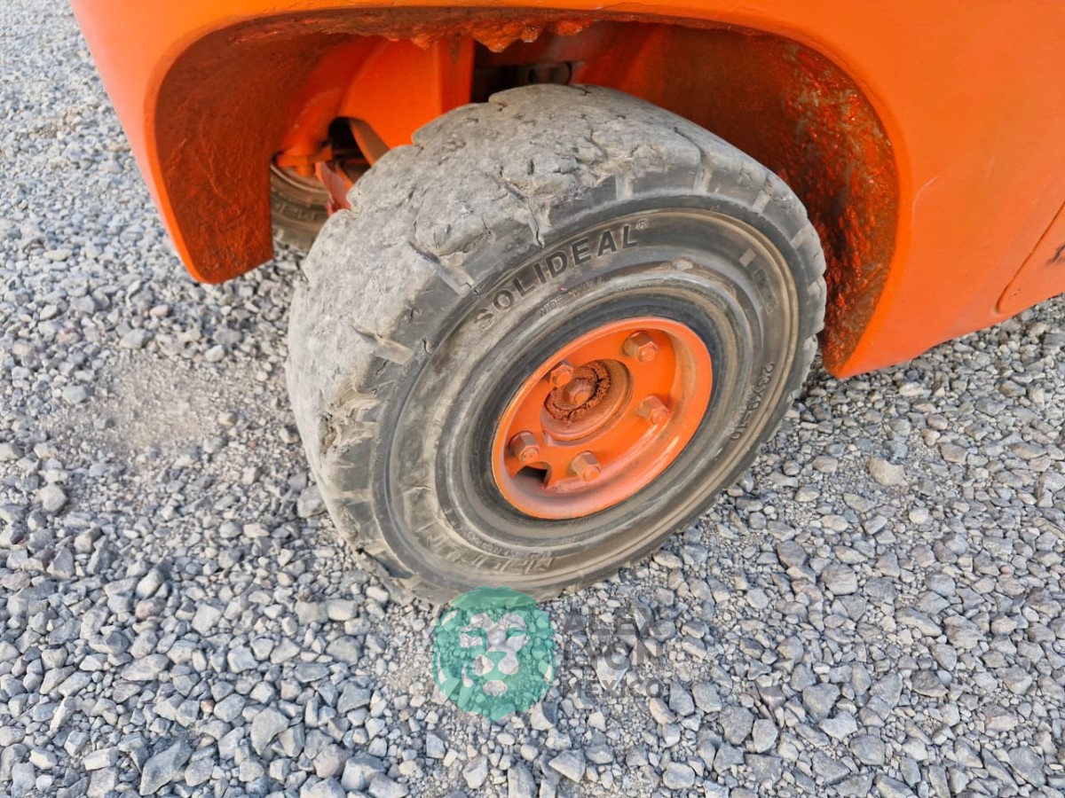 (V) CAP. 7000 LBS. TORRE 2 SECCIONES, CASETA, MOTOR VOLKSWAGEN 4 CIL. DIESEL (59 HP), LLTS. SOLIDAS 27X10-12 Y 23X9-10. (23230 HRS)