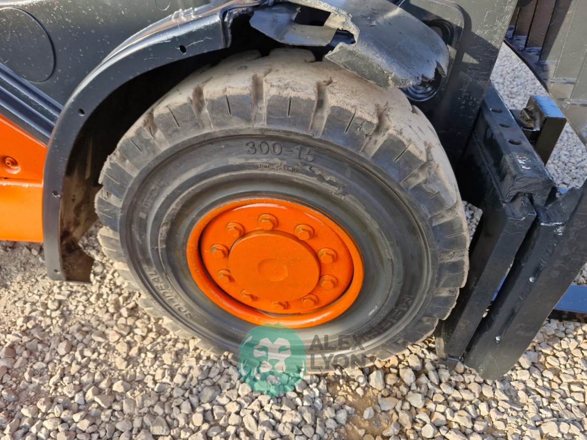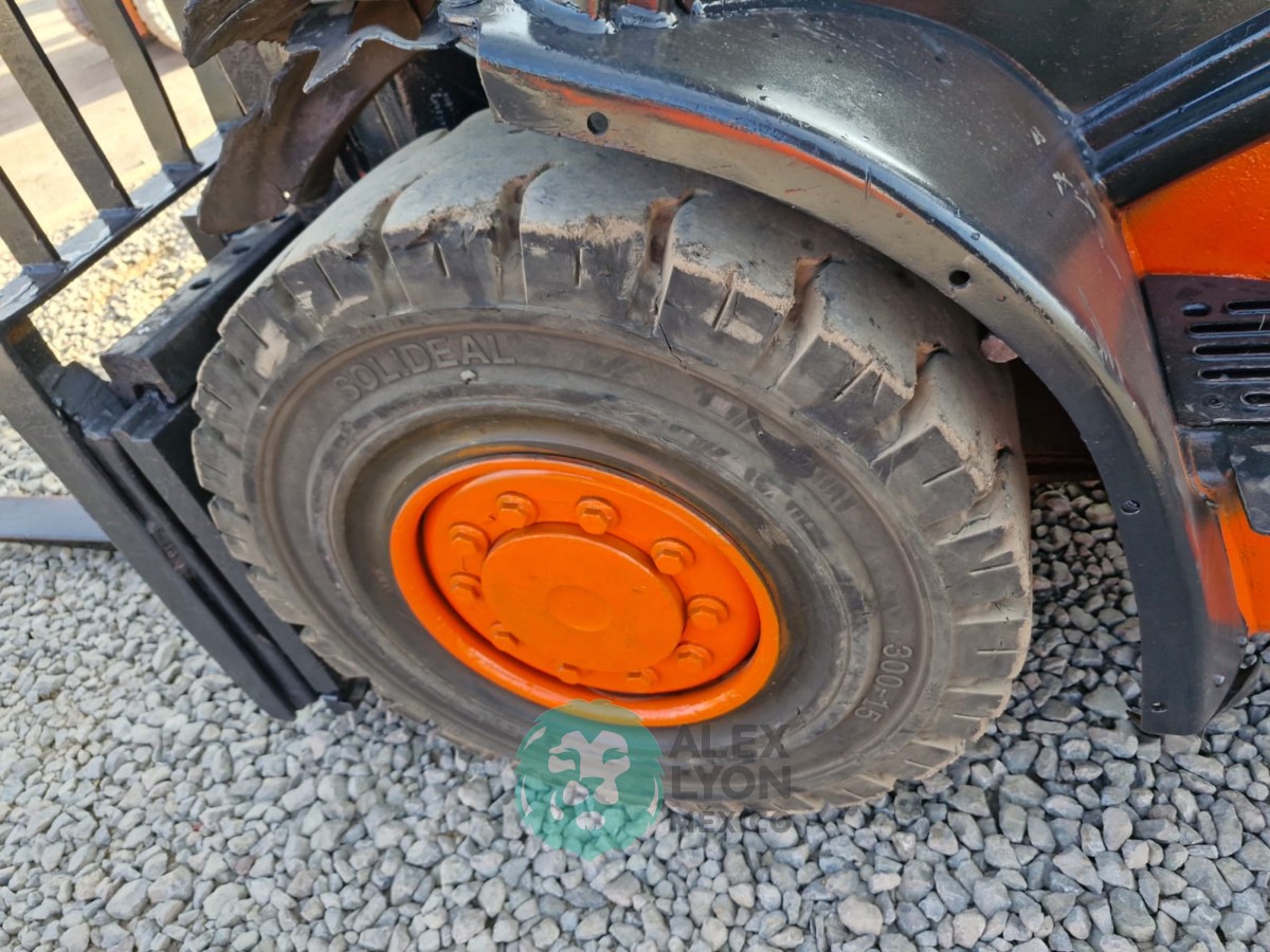(V) CAP. 10000 LBS. TORRE 2 SECCIONES, CASETA, MOTOR VOLKSWAGEN 4 CIL. DIESEL, LLTS. SOLIDAS 300-15 Y 250X15-7.5. (13334 HRS)