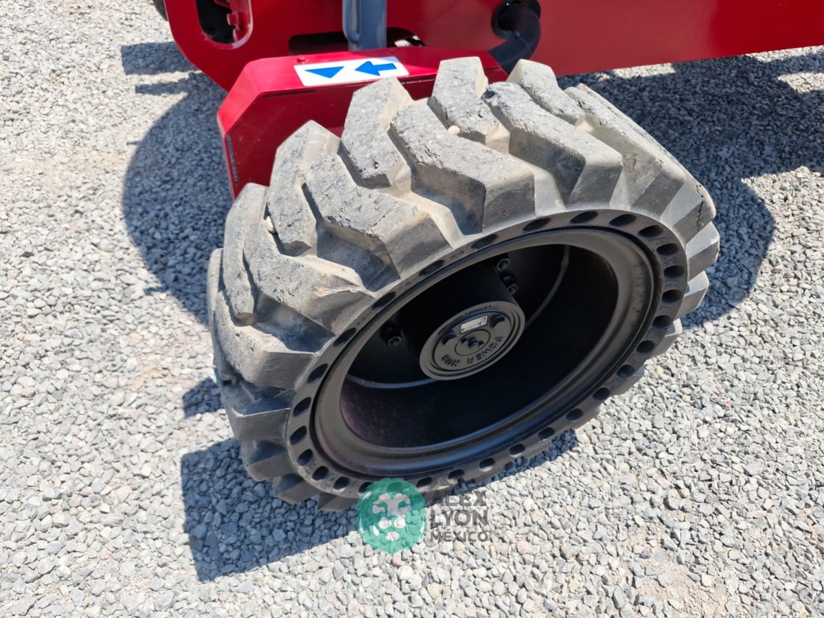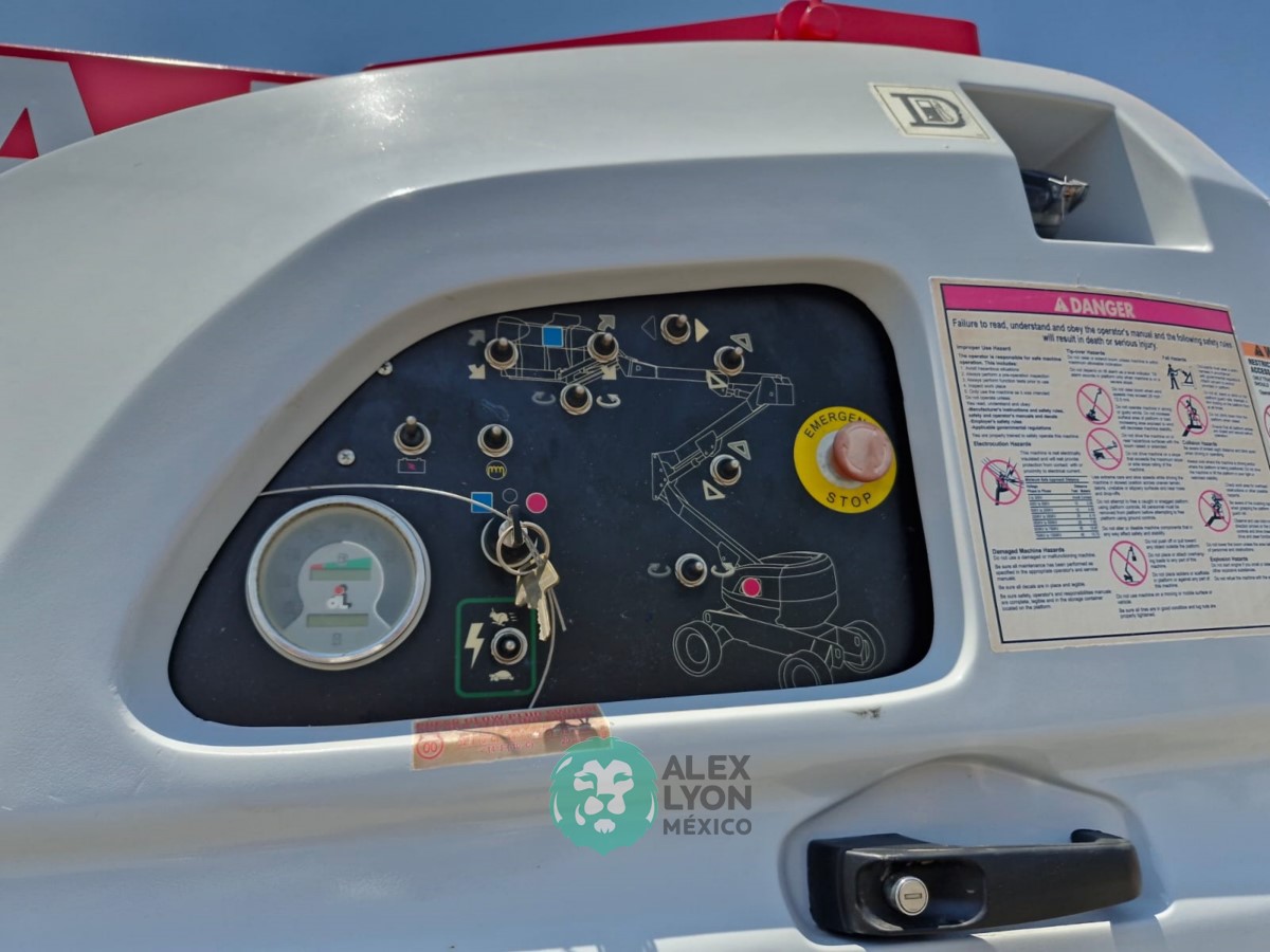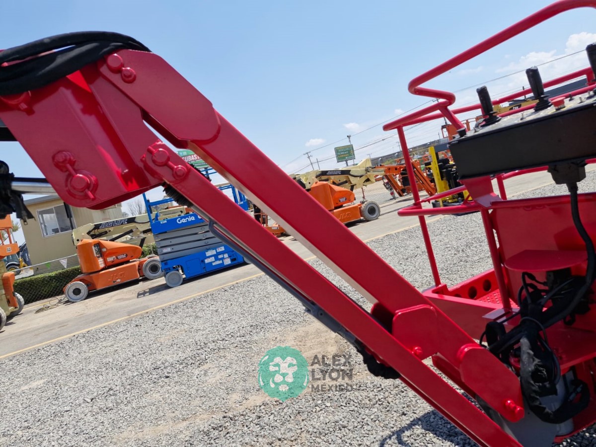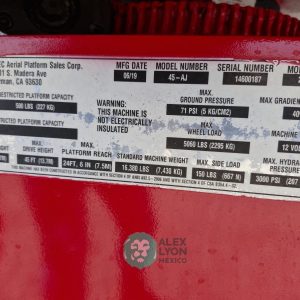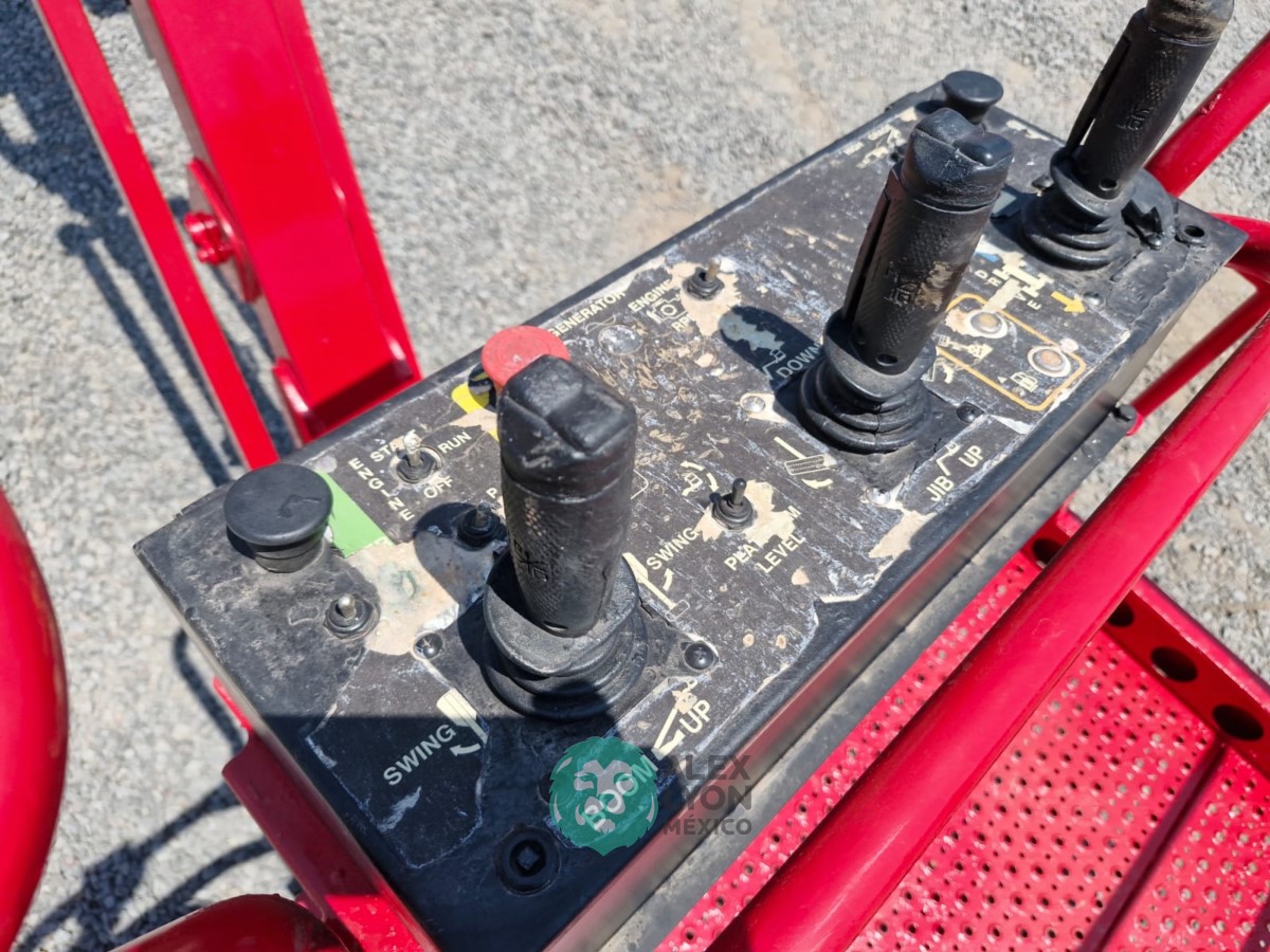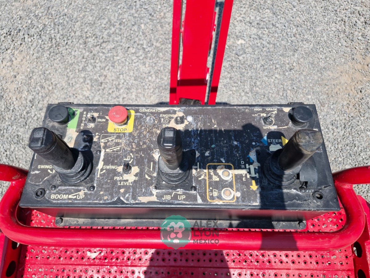 (V) 4X4 (DOBLE TRACCION), ALTURA MAXIMA 45’/13.7 MTS. ALCANCE HORIZONTAL 24’/7.5 MTS. CAP. 500 LBS. MOTOR KUBOTA 4 CIL. DIESEL (49 HP), LLTS. SEMINEUMATICAS 33X12-20. (1880 HRS)