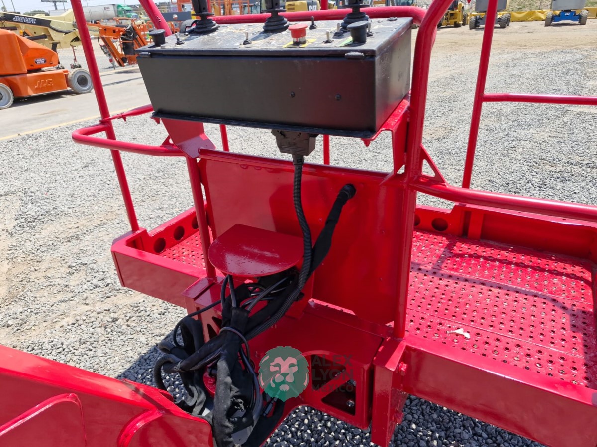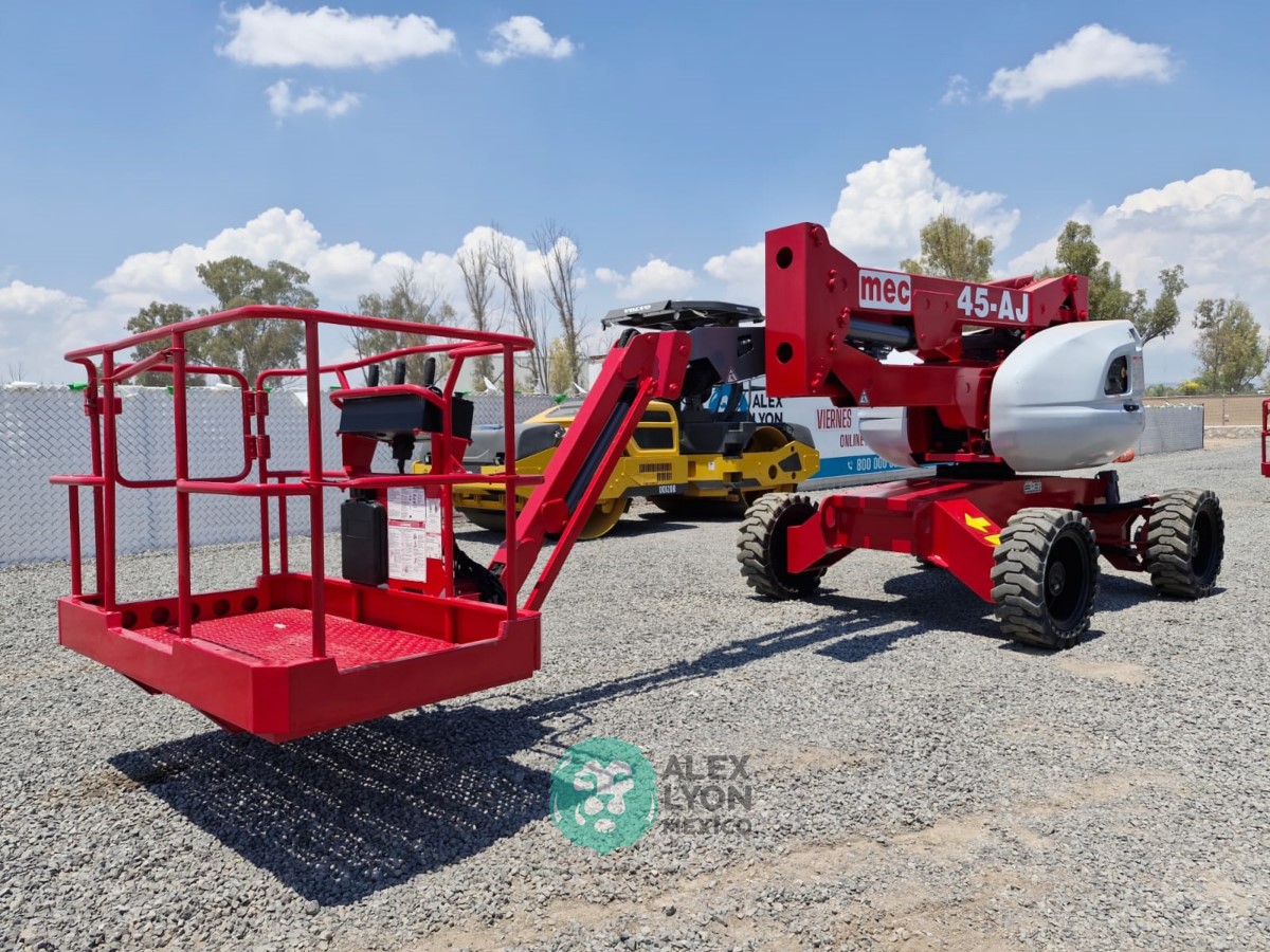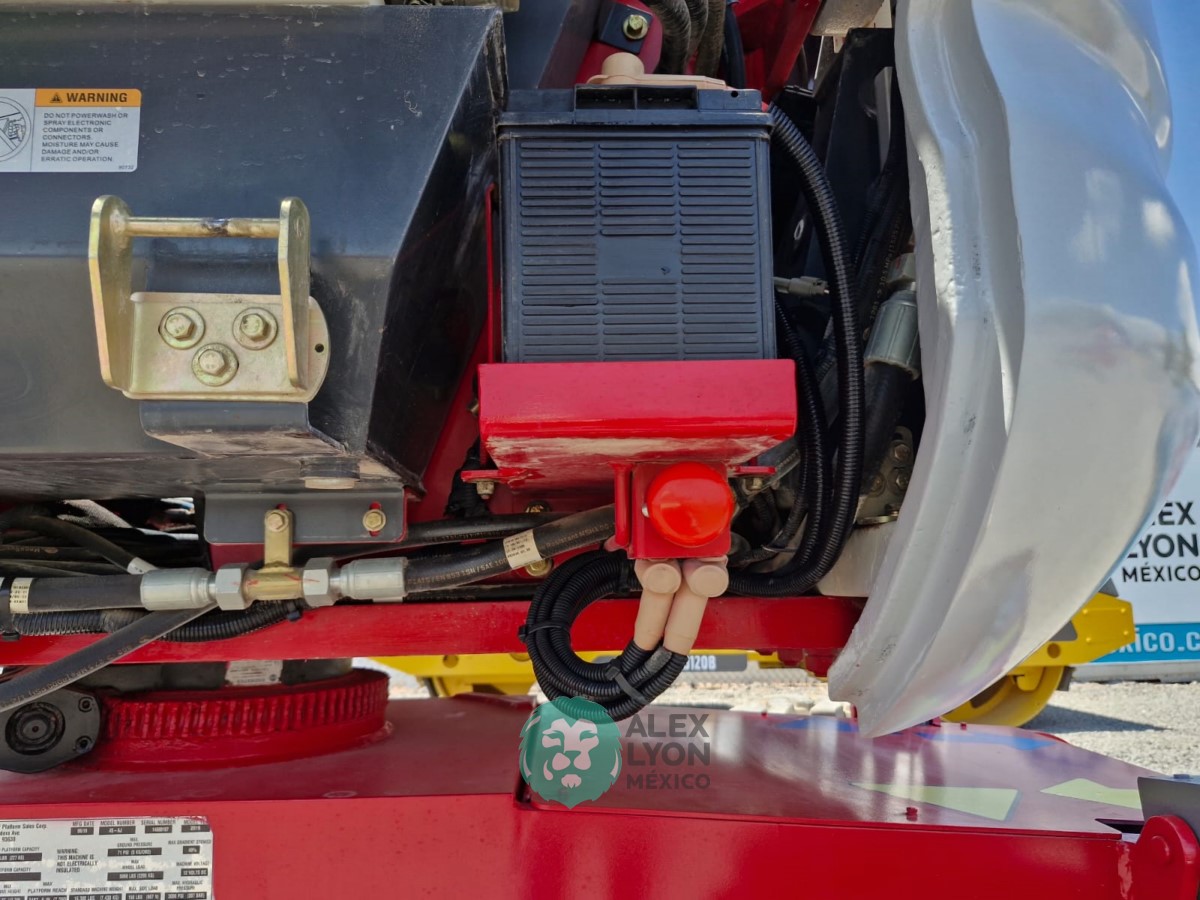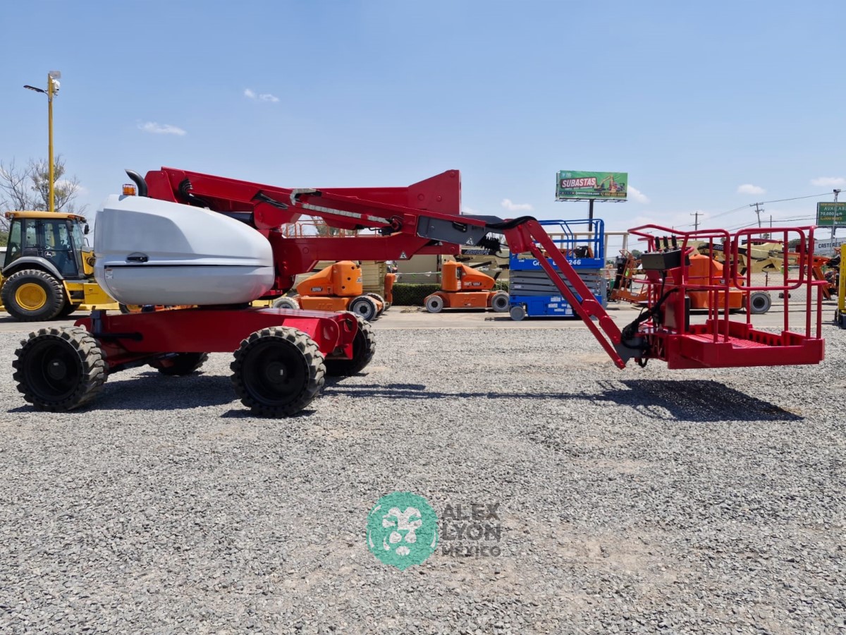 (V) 4X4 (DOBLE TRACCION), ALTURA MAXIMA 45’/13.7 MTS. ALCANCE HORIZONTAL 24’/7.5 MTS. CAP. 500 LBS. MOTOR KUBOTA 4 CIL. DIESEL (49 HP), LLTS. SEMINEUMATICAS 33X12-20. (1880 HRS)