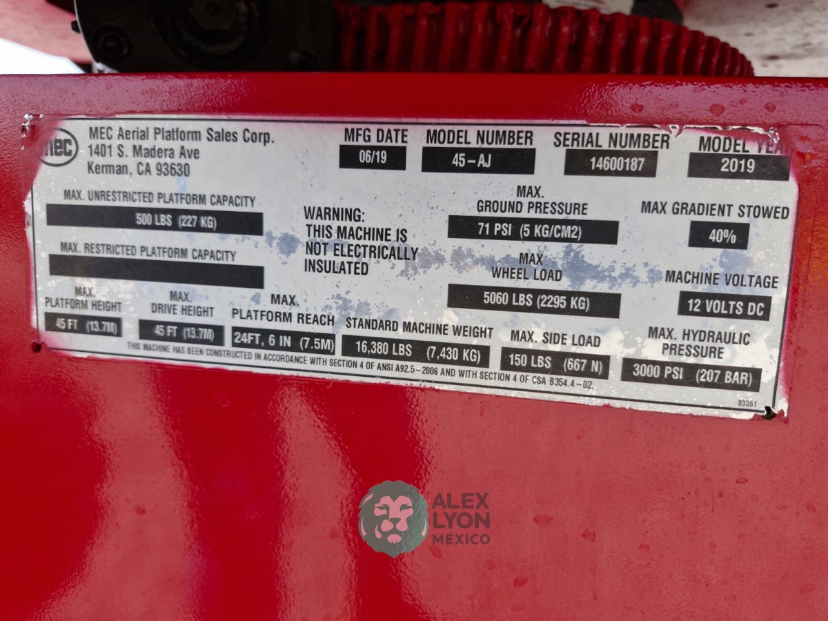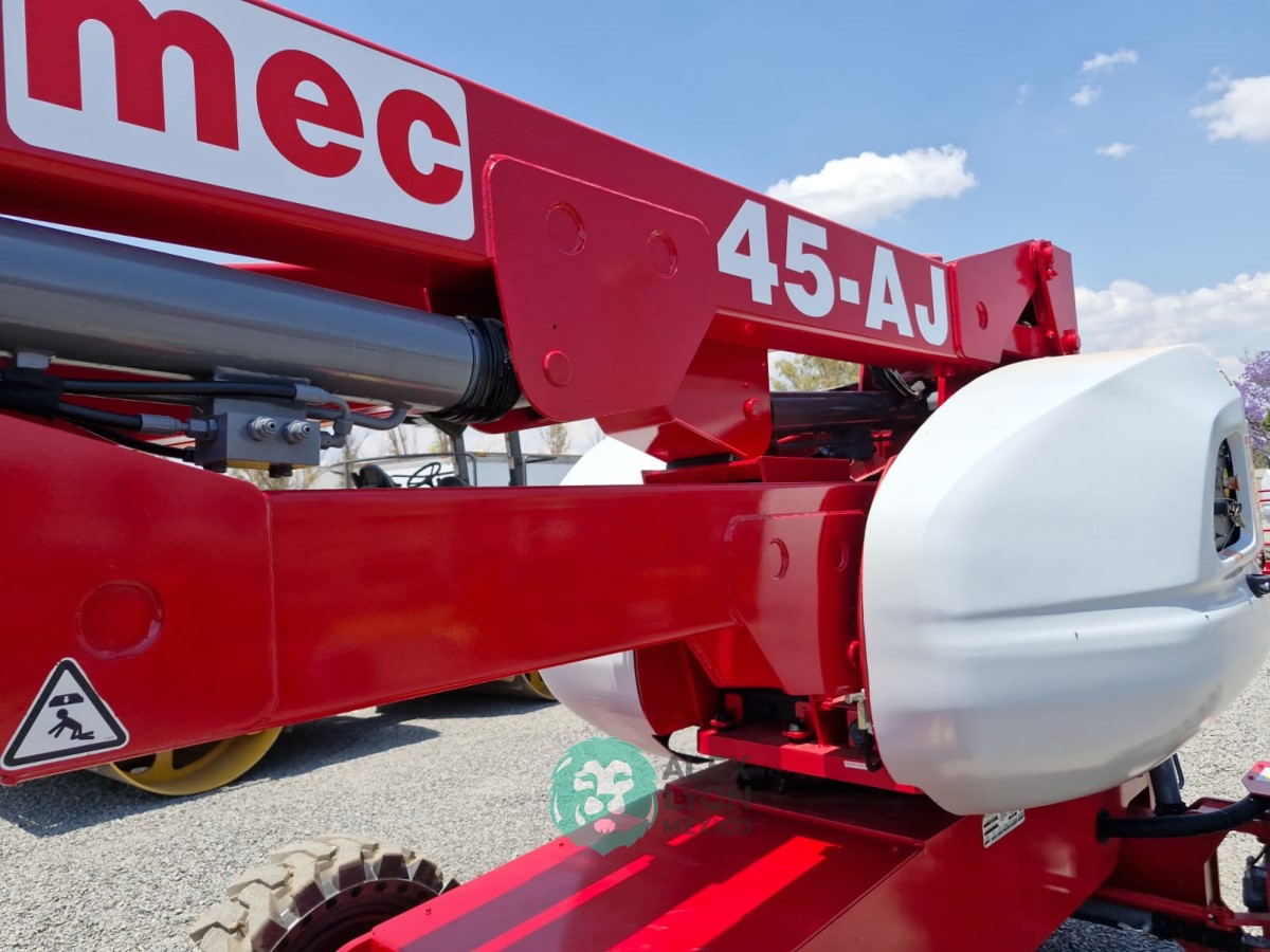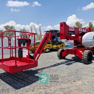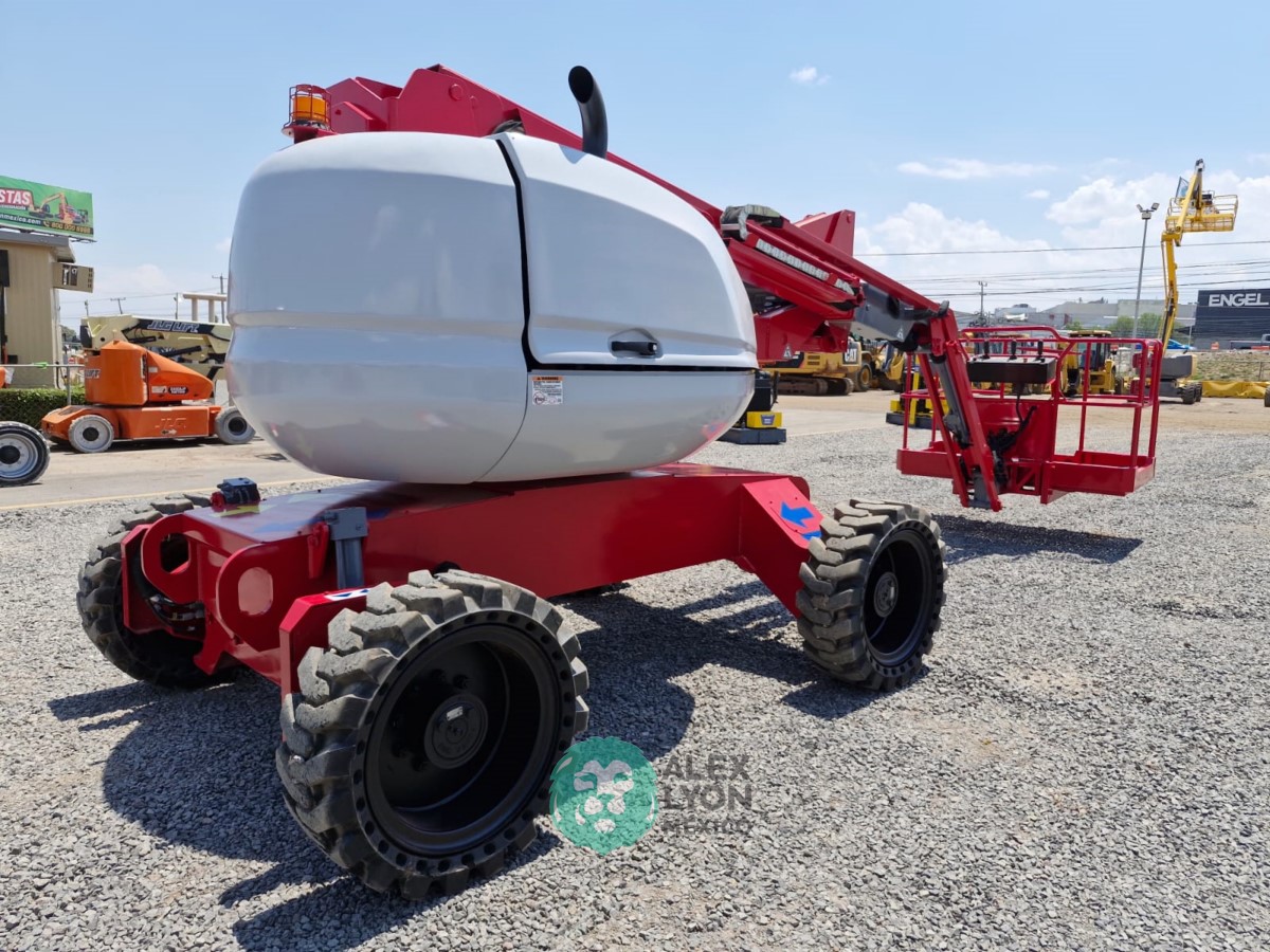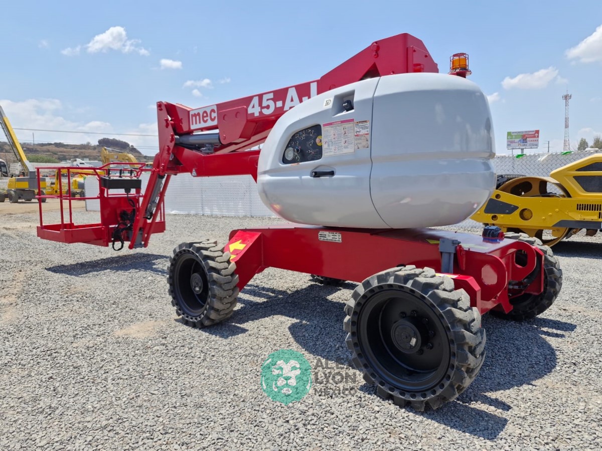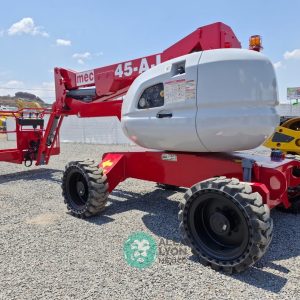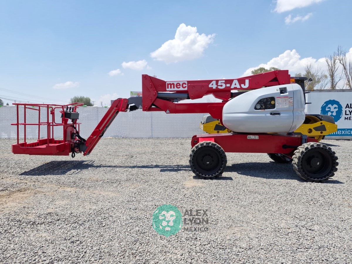 (V) 4X4 (DOBLE TRACCION), ALTURA MAXIMA 45’/13.7 MTS. ALCANCE HORIZONTAL 24’/7.5 MTS. CAP. 500 LBS. MOTOR KUBOTA 4 CIL. DIESEL (49 HP), LLTS. SEMINEUMATICAS 33X12-20. (1880 HRS)