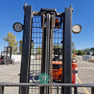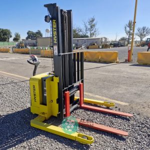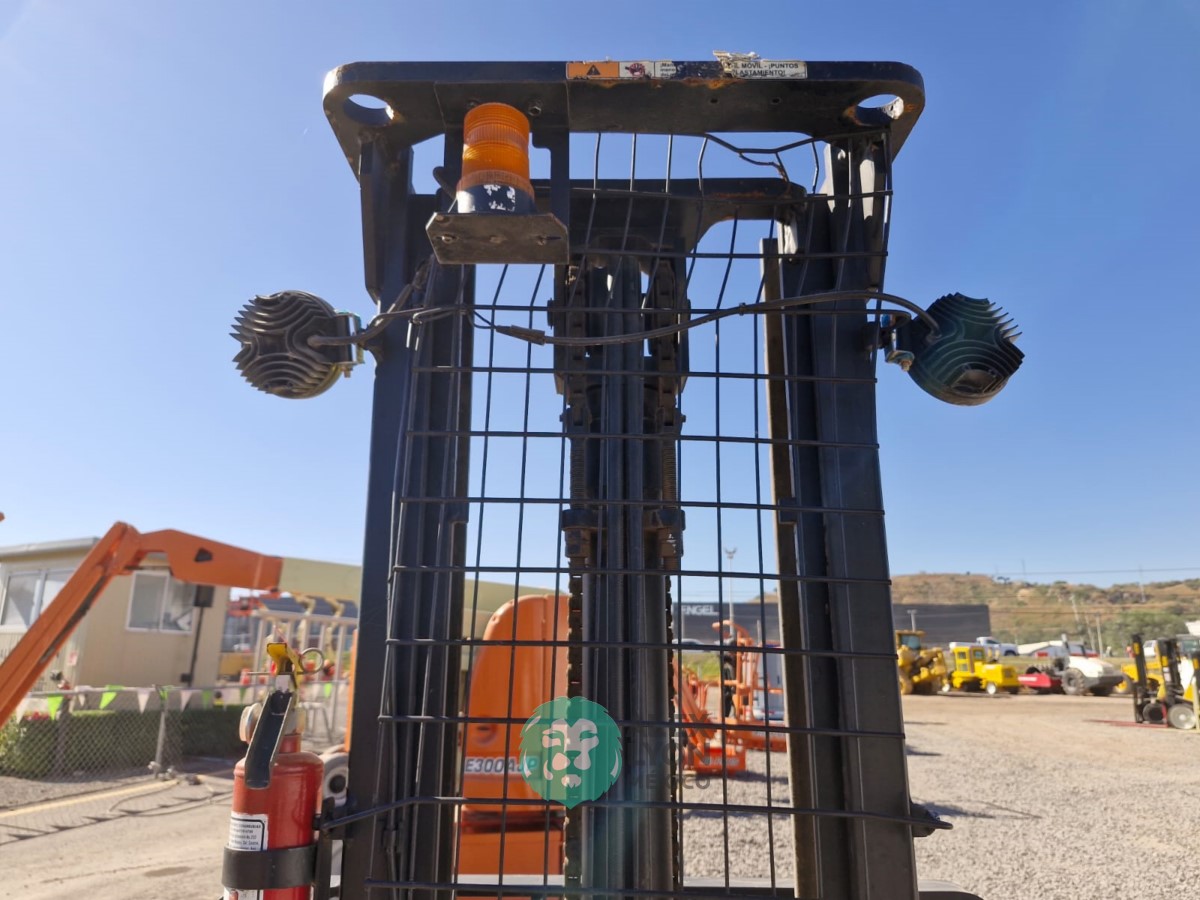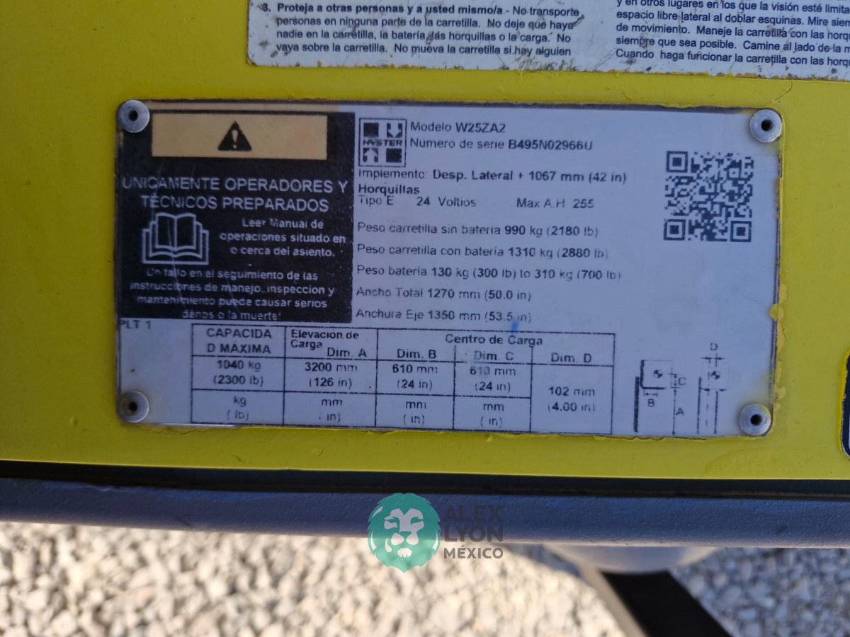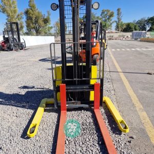 CAP. 2500 LBS. TORRE DE 2 SECCIONES C/DESPLAZAMIENTO LATERAL, OPERADOR A PIE, MOTOR ELECTRICO, LLTS. SOLIDAS. (INCLUYE BATERIA DAÑADA)