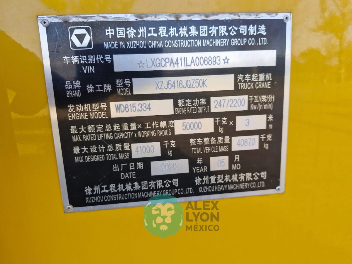 2020 XCMG XZJ5416JQZ50KLXGCPA411LA006893 – Alex Lyon México