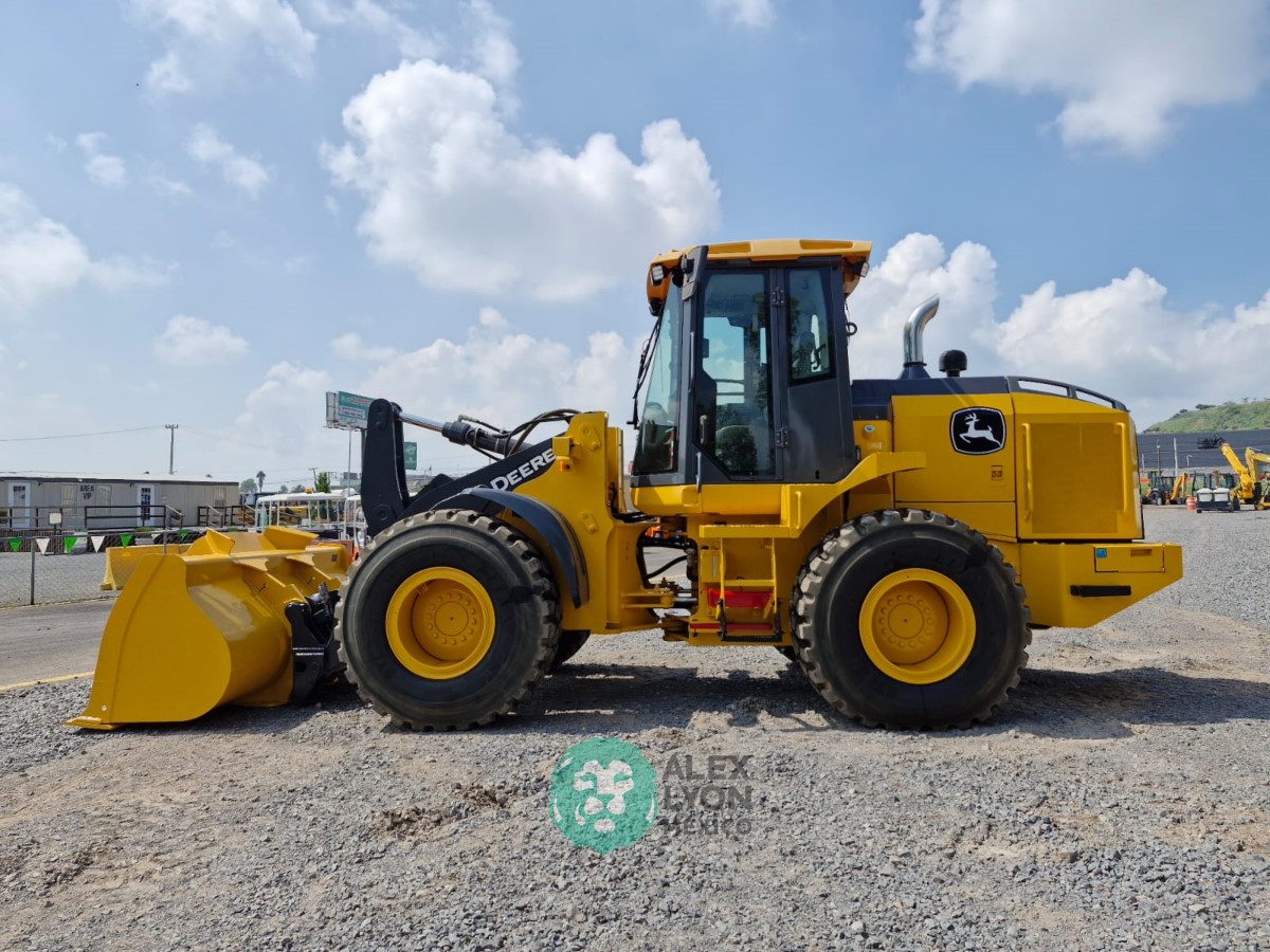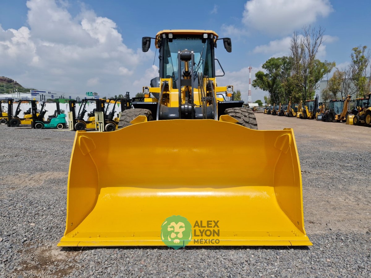 KIT HIDRAULICO, CUCHARON DE USO GENERAL DE ACOPLAMIENTO RAPIDO, CABINA C/CLIMA, ENCENDIDO ELECTRONICO, CAMARA DE VISION TRASERA, ESTEREO AM/FM, MOTOR JOHN DEERE 6 CIL. DIESEL C/TURBO (152 HP), LLTS. 20.5R25. (9694 HRS)