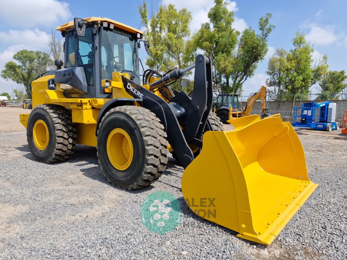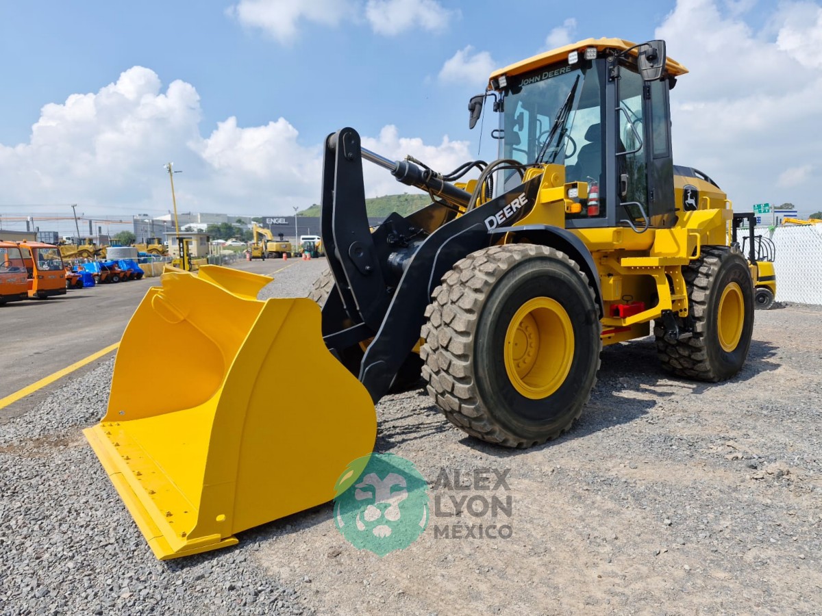 KIT HIDRAULICO, CUCHARON DE USO GENERAL DE ACOPLAMIENTO RAPIDO, CABINA C/CLIMA, ENCENDIDO ELECTRONICO, CAMARA DE VISION TRASERA, ESTEREO AM/FM, MOTOR JOHN DEERE 6 CIL. DIESEL C/TURBO (152 HP), LLTS. 20.5R25. (9694 HRS)