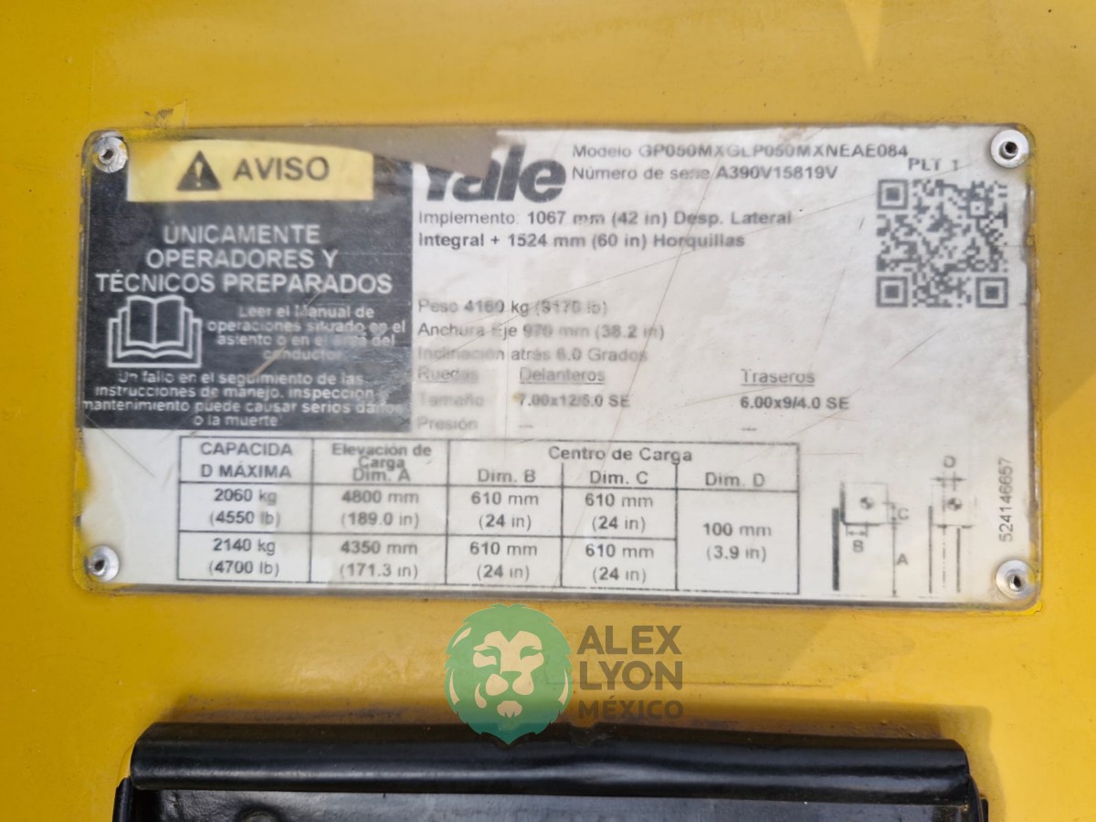 (VIDEO) CAP. 4700 LBS. TORRE 3 SECCIONES C/DESPLAZAMIENTO LATERAL, CASETA, MOTOR YALE 4 CIL. GAS L.P. (62 HP), LLTS. SOLIDAS 7.00-12 Y 6.00-9. (16852 HRS)