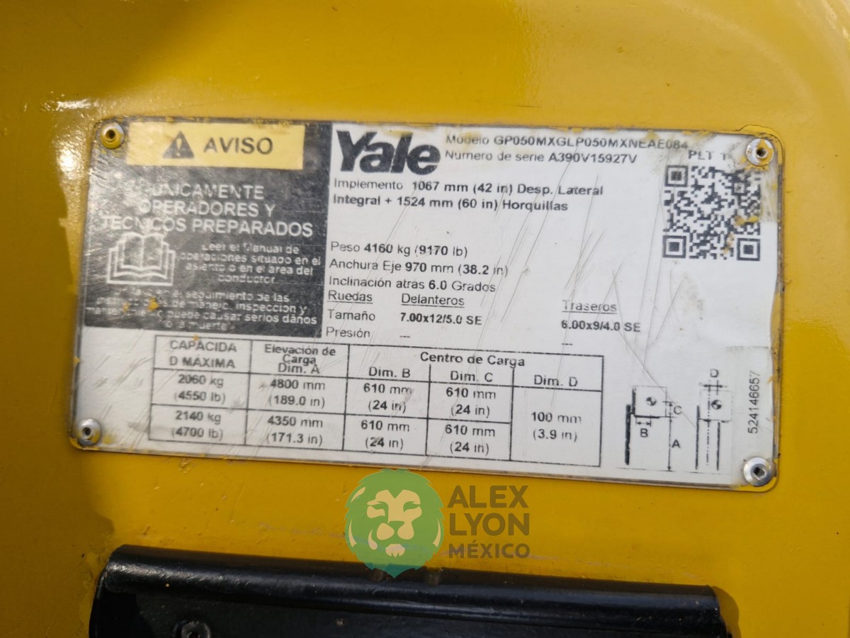 (VIDEO) CAP. 4700 LBS. TORRE 3 SECCIONES C/DESPLAZAMIENTO LATERAL, CASETA, MOTOR YALE 4 CIL. GAS L.P. (62 HP), LLTS. SOLIDAS 7.00-12 Y 6.00-9. ( (18067 HRS)