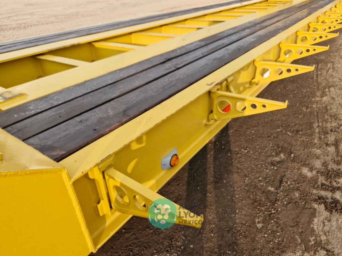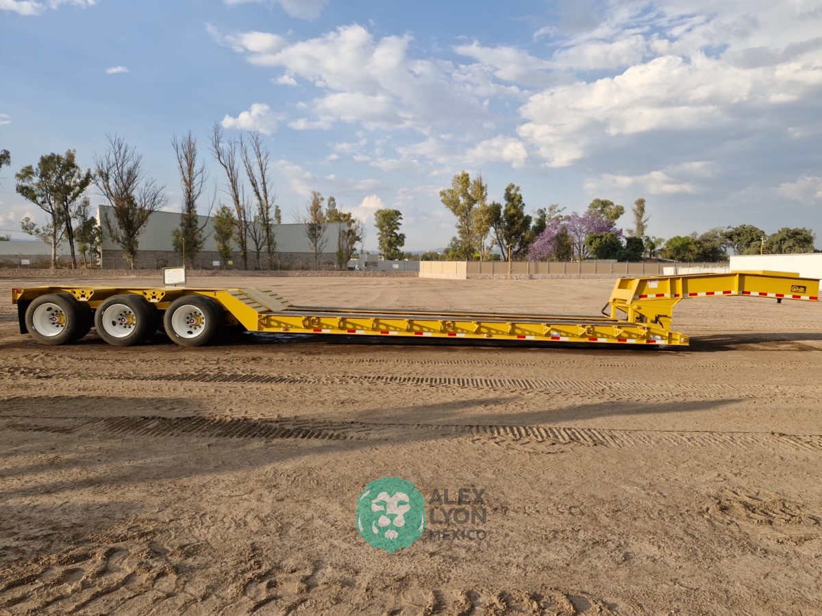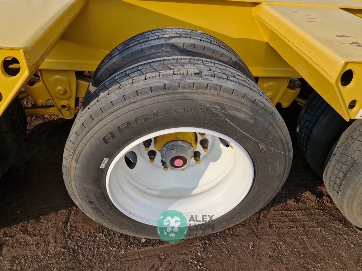 (V) CAP. 52 TON. CUELLO DE GANSO DESMONTABLE, 3 EJES (DOBLE RODADO), 48.6′ DE LARGO X 8.6′ DE ANCHO, EXTENSIONES LATERALES, PREPARACION PARA SISTEMA DE FRENOS ABS, SUSPENSION DE MUELLES, EQUIPO DE LEVANTE HIDRAULICO ACCIONADO C/MOTOR HONDA GX390, CON ENCENDIDO ELECTRONICO, 4 TIEMPOS GASOLINA, LLTS. RADIALES 255/70R22.5.
