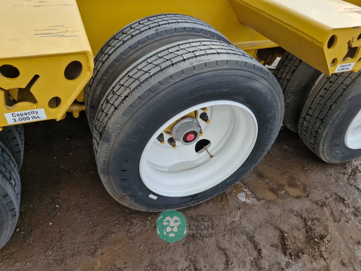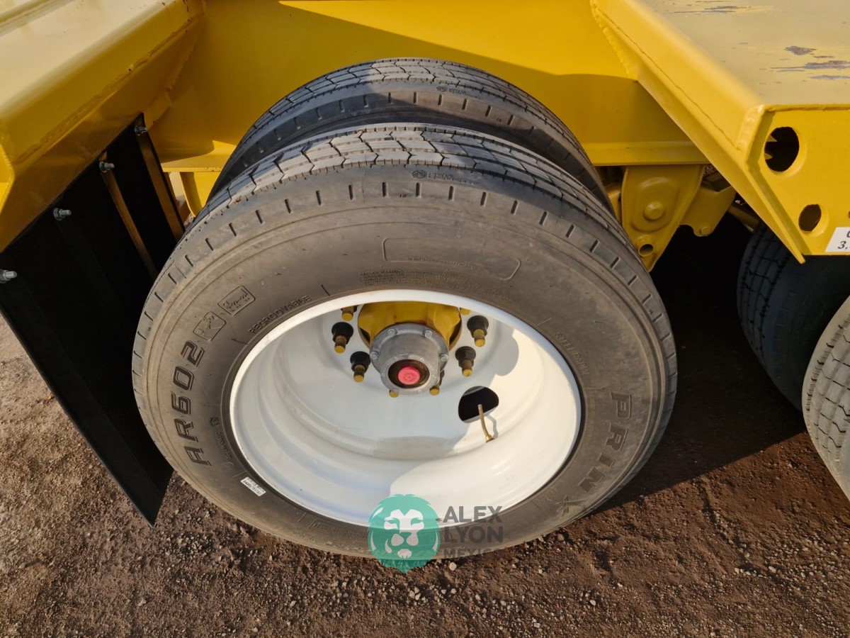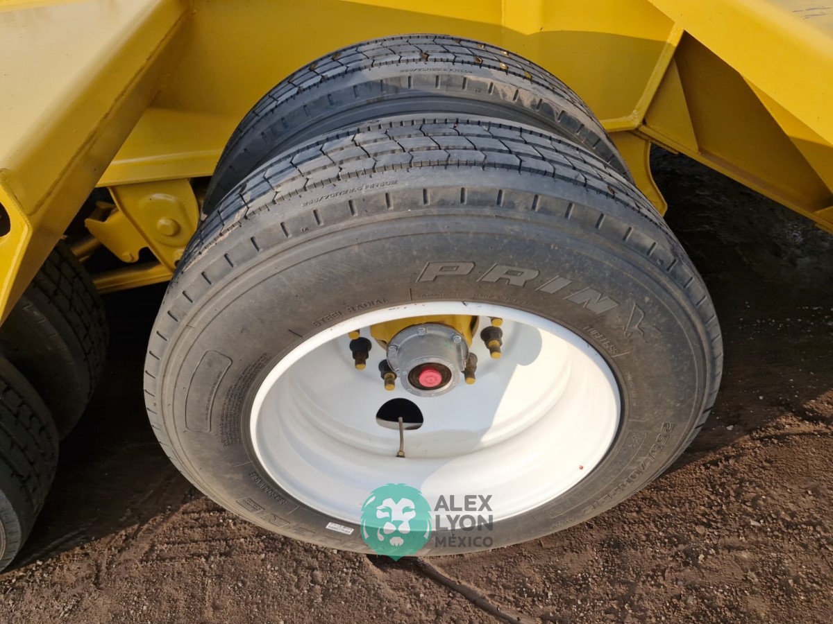 (V) CAP. 52 TON. CUELLO DE GANSO DESMONTABLE, 3 EJES (DOBLE RODADO), 48.6′ DE LARGO X 8.6′ DE ANCHO, EXTENSIONES LATERALES, PREPARACION PARA SISTEMA DE FRENOS ABS, SUSPENSION DE MUELLES, EQUIPO DE LEVANTE HIDRAULICO ACCIONADO C/MOTOR HONDA GX390, CON ENCENDIDO ELECTRONICO, 4 TIEMPOS GASOLINA, LLTS. RADIALES 255/70R22.5.