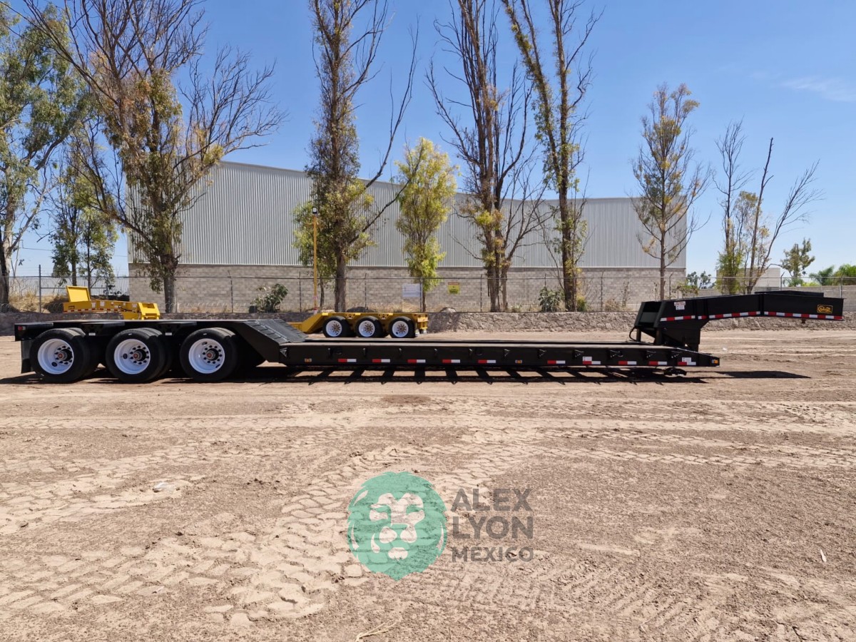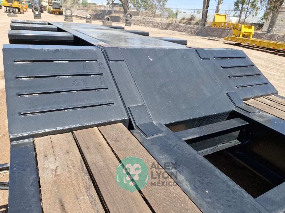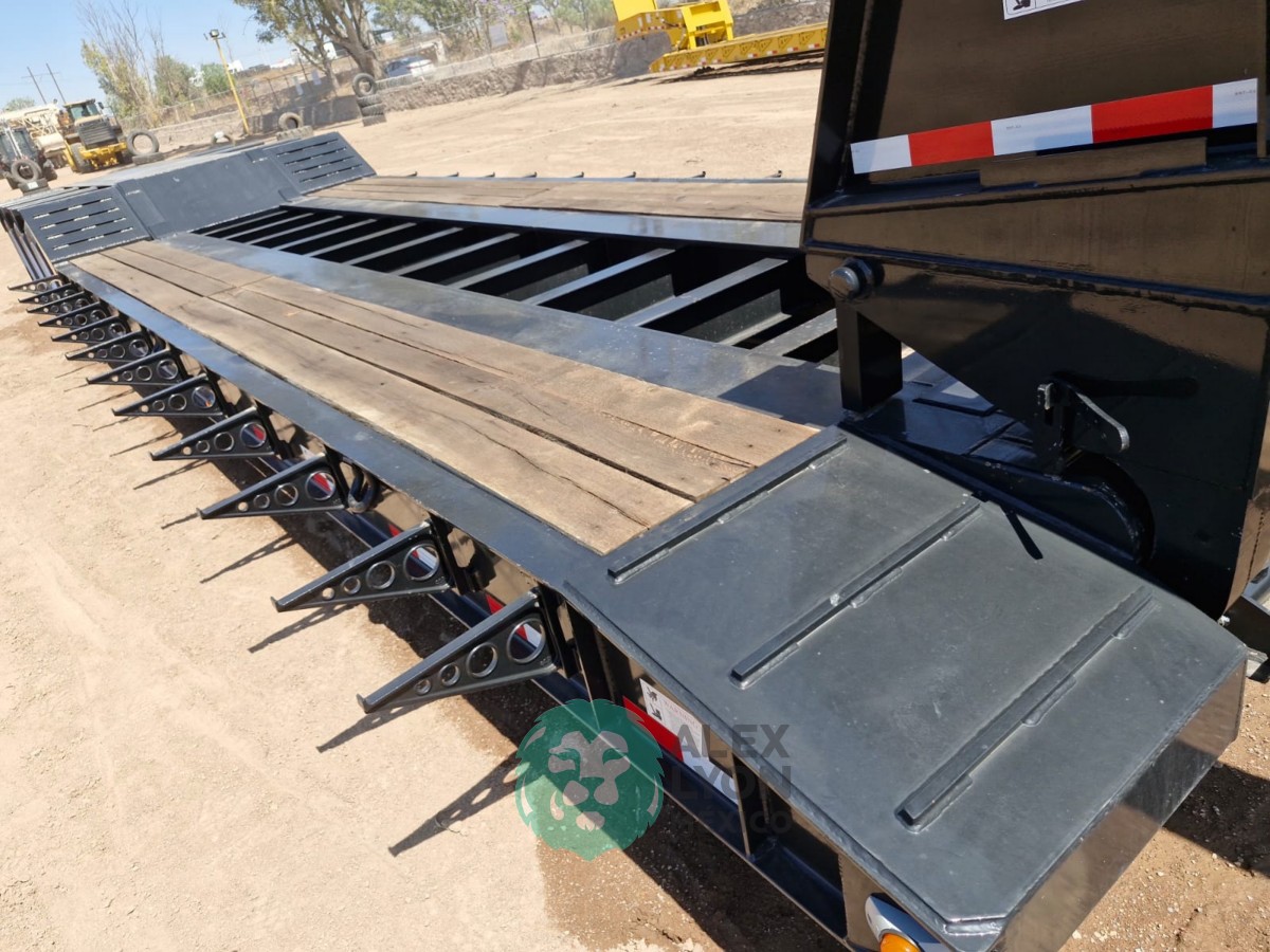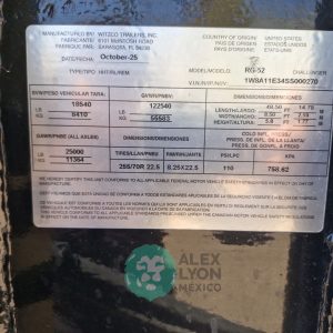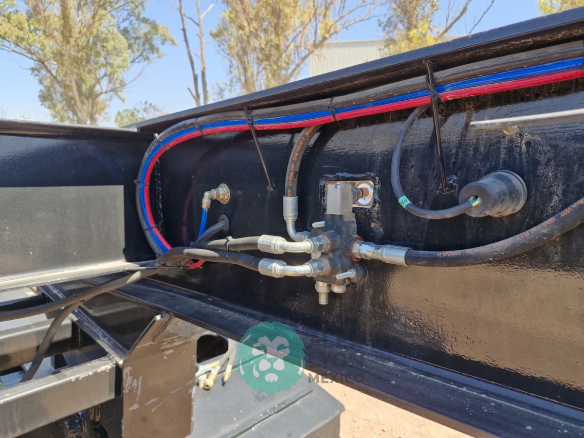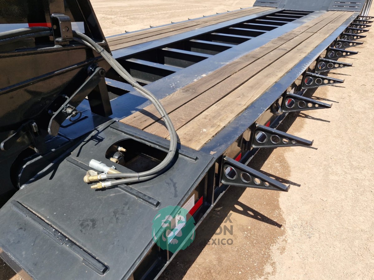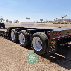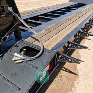 CAP. 52 TON. CUELLO DE GANSO DESMONTABLE, 3 EJES (DOBLE RODADO), 48.6′ DE LARGO X 8.6′ DE ANCHO, EXTENSIONES LATERALES, PREPARACION PARA SISTEMA DE FRENOS ABS, SUSPENSION DE MUELLES, EQUIPO DE LEVANTE HIDRAULICO ACCIONADO C/MOTOR HONDA GX390, CON ENCENDIDO ELECTRONICO, 4 TIEMPOS GASOLINA, LLTS. RADIALES 255/70R22.5.