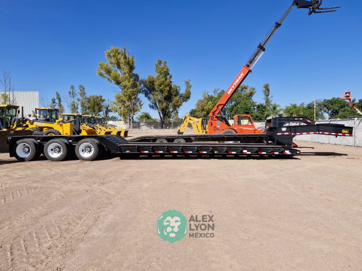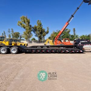 (VIDEO) CAP. 52 TON. CUELLO DE GANSO DESMONTABLE, 3 EJES (DOBLE RODADO), 48.6′ DE LARGO X 8.6′ DE ANCHO, EXTENSIONES LATERALES, PREPARACION PARA SISTEMA DE FRENOS ABS, SUSPENSION DE MUELLES, EQUIPO DE LEVANTE HIDRAULICO ACCIONADO C/MOTOR HONDA GX390, CON ENCENDIDO ELECTRONICO, 4 TIEMPOS GASOLINA, LLTS. RADIALES 255/70R22.5. (COLOR NEGRO)