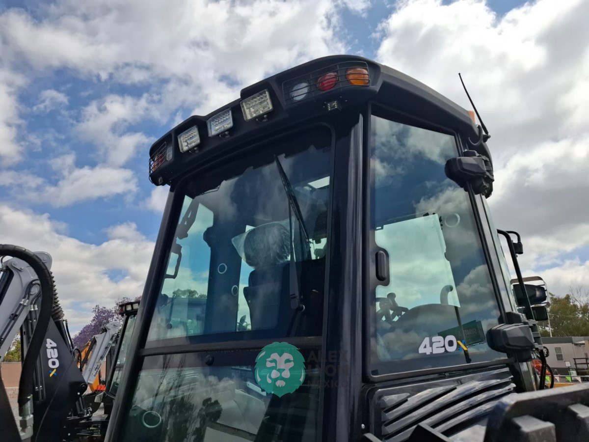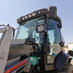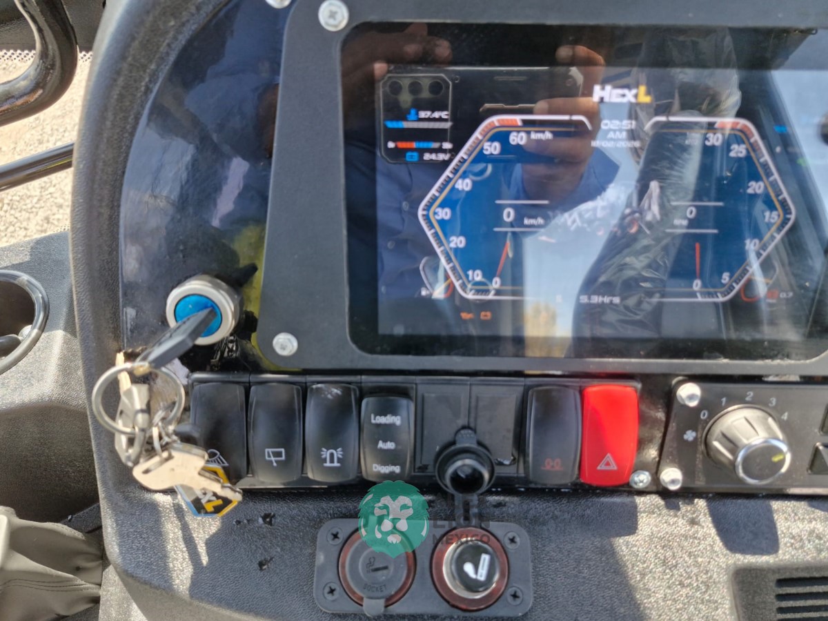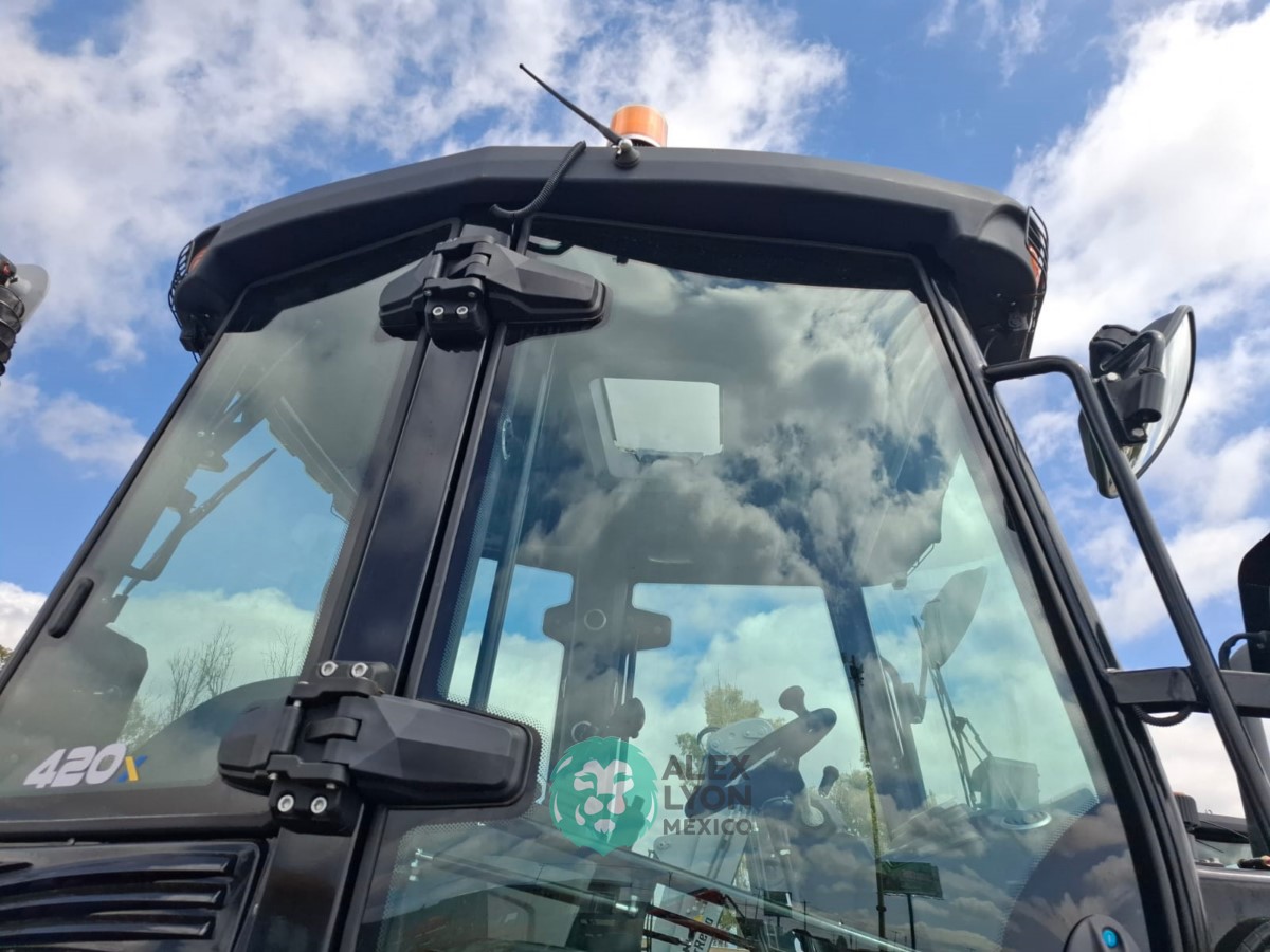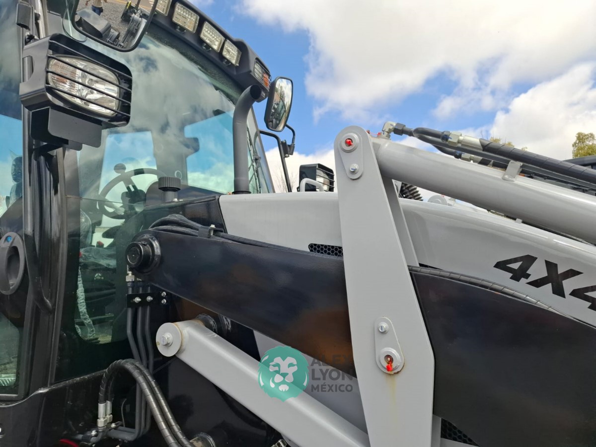 (V) 4X4 (DOBLE TRACCION), KIT HIDRAULICO FRONTAL Y TRASERO, EXTENSION, CUCHARON 4 EN 1 (TIPO ALMEJA) C/DIENTES, HORQUILLAS TIPO MONTACARGAS, CABINA C/CLIMA, PANTALLA MULTIMEDIA, ESTEREO AM/FM, CAMARAS DE VISION TRASERA Y FRONTAL, CONTROLES TIPO PILOTO, CUCHARON TRASERO 24″, MOTOR CUMMINS 4 CIL. DIESEL C/TURBO (102 HP), LLTS. 19.5L-24 Y 14-17.5. (5.3 HRS) (NUEVA)
