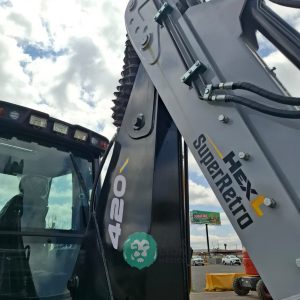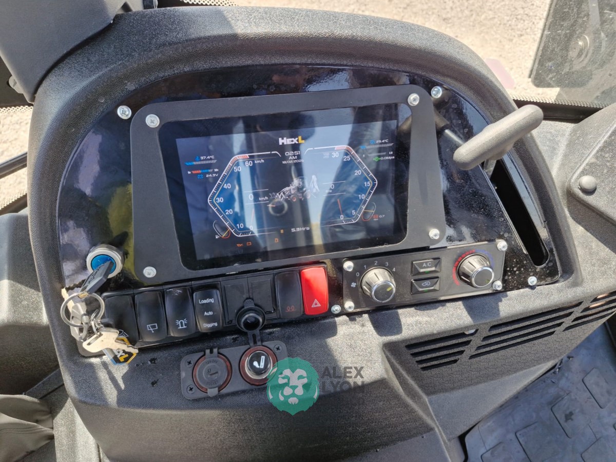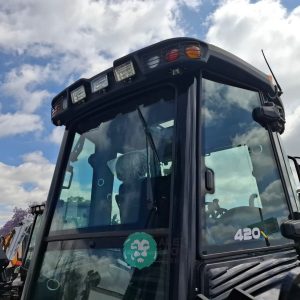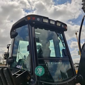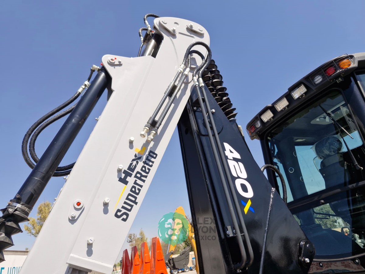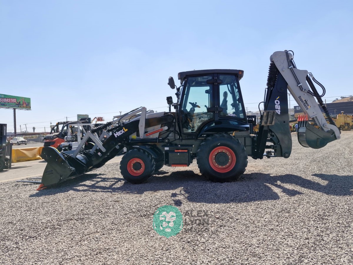(V) 4X4 (DOBLE TRACCION), KIT HIDRAULICO FRONTAL Y TRASERO, EXTENSION, CUCHARON 4 EN 1 (TIPO ALMEJA) C/DIENTES, HORQUILLAS TIPO MONTACARGAS, CABINA C/CLIMA, PANTALLA MULTIMEDIA, ESTEREO AM/FM, CAMARAS DE VISION TRASERA Y FRONTAL, CONTROLES TIPO PILOTO, CUCHARON TRASERO 24″, MOTOR CUMMINS 4 CIL. DIESEL C/TURBO (102 HP), LLTS. 19.5L-24 Y 14-17.5. (5.3 HRS) (NUEVA)