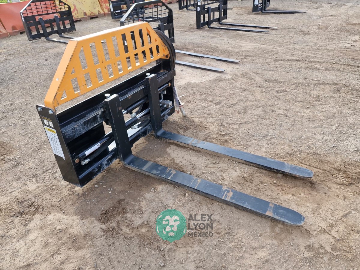 TIPO HORQUILLAS DE 48″ DE LARGO, CAP. 3500 LBS. APERTURA HIDRAULICA DE HORQUILLAS, PARA INSTALAR EN MINICARGADORES DE TODAS LAS MARCAS. (INCLUYE MANGUERAS) (NUEVO)