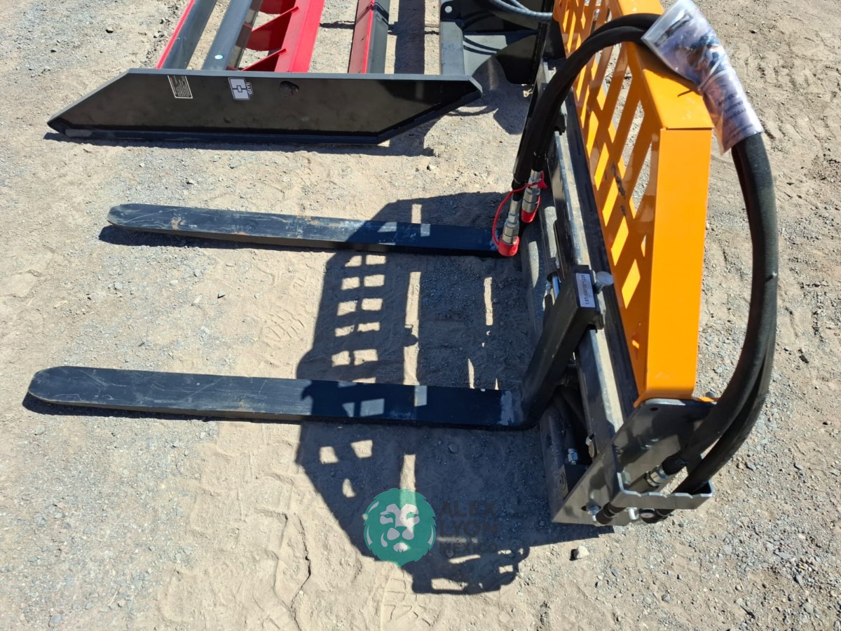 (VIDEO) TIPO HORQUILLAS, APERTURA HIDRAULICA DE HORQUILLAS, HORQUILLAS DE 48″, PARA INSTALAR EN MINICARGADORES DE TODAS LAS MARCAS. (INCLUYE MANGUERAS) (NUEVO)