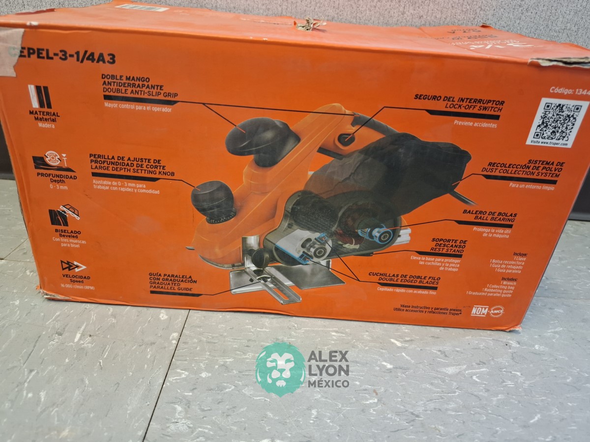ANCHO DE CEPILLADO DE 3 1/4″, MOTOR DE 6.7 AMPS. POTENCIA DE MOTOR 850 WATTS. ELECTRICO, PERILLA DE AJUSTE DE PROFUNDIDAD DE CORTE, DOBLE MANGO ANTIDERRAPANTE, GUIA PARALELA CON GRADUACION, CUCHILLAS DE DOBLE FILO, SEGURO DEL INTERRUPTOR, SISTEMA DE RECOLECCION DE POLVO, SOPORTE DE DESCANSO. (NUEVO)