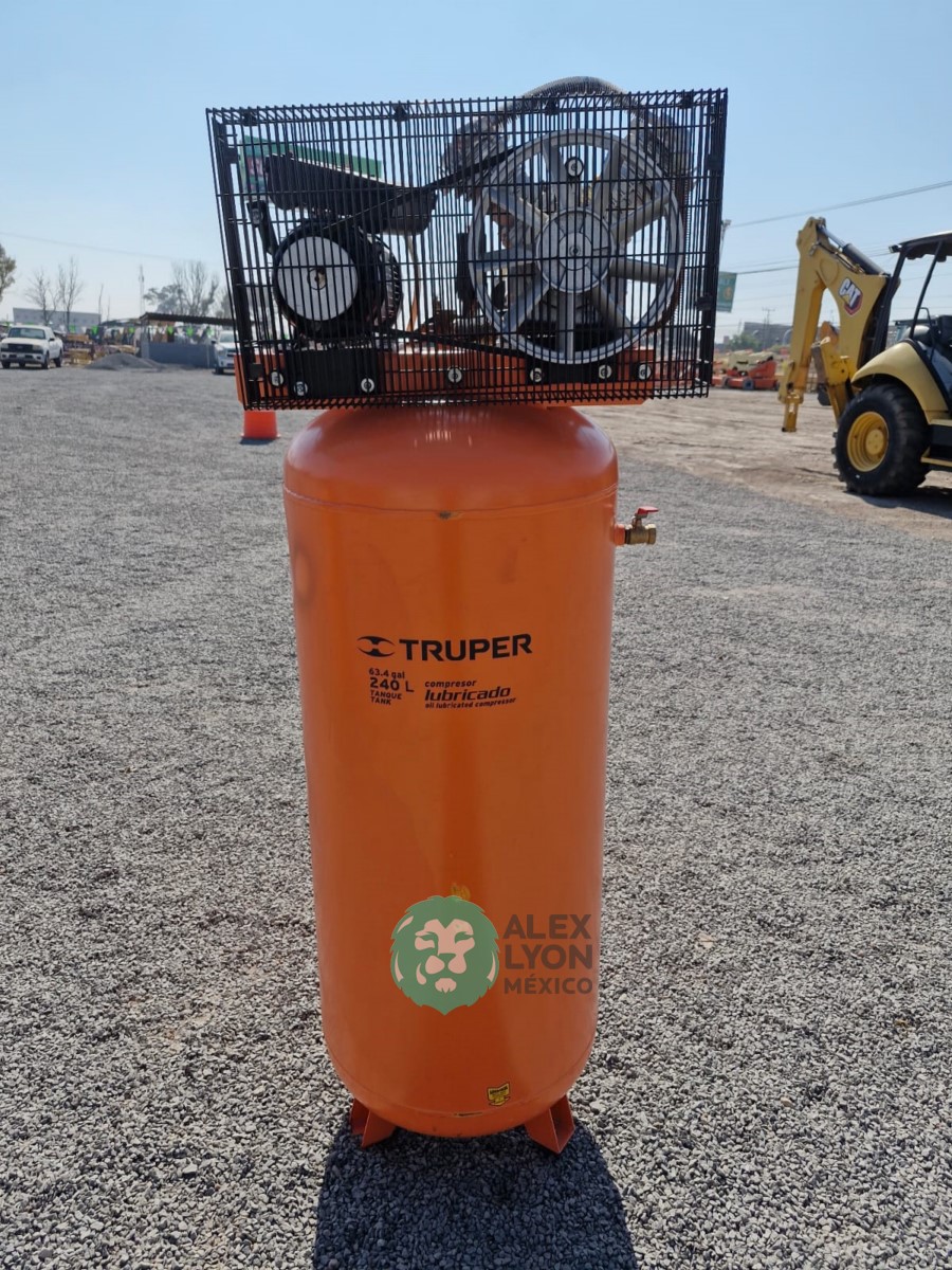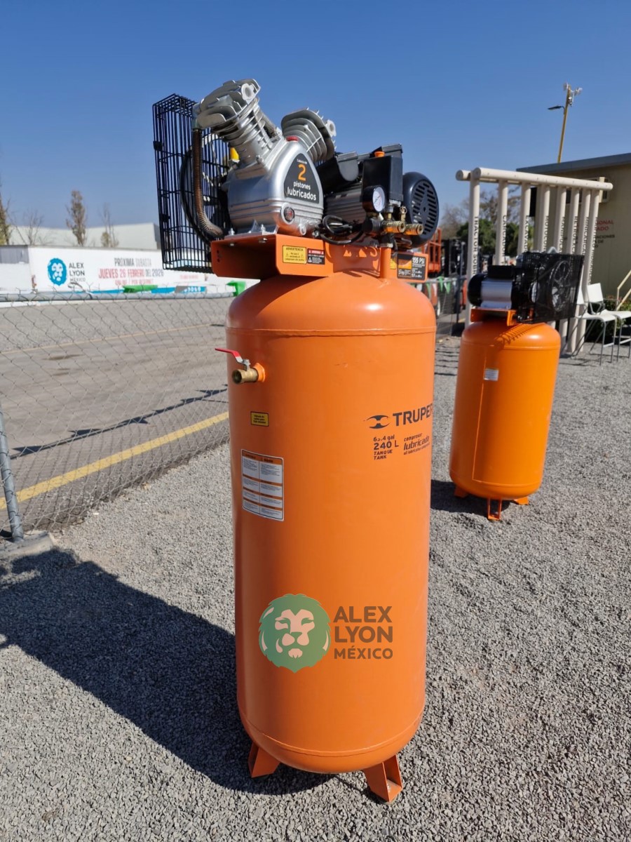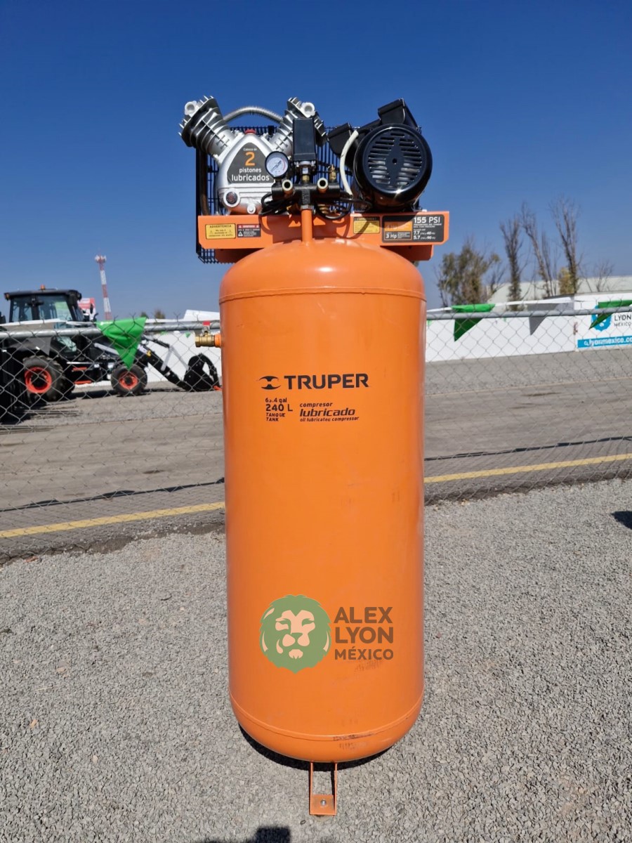 PRESION MAXIMA 155 PSI. TANQUE DE 240 LTS. / 63.4 GAL. 220 V. DE BANDA, MOTOR ELECTRICO CON BOBINAS DE COBRE, VALVULA DE DRENADO, 2 SALIDAS DE 1/4″ PARA MANGUERAS DE 1/4″, 3/8″ Y 1/2″, UNA SALIDA ROSCADA DE 3/4″ PARA MANGUERAS DE 3/4″, PROTECTOR DE SOBRECORRIENTE. (NUEVO)